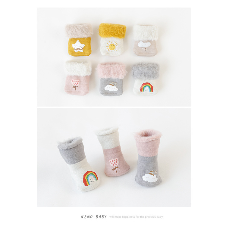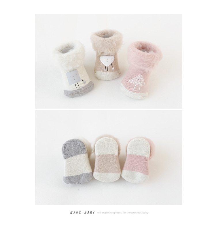 18冬季新款加绒加厚保暖宝宝袜子卡通高筒婴儿袜0-1-3-5岁儿童袜