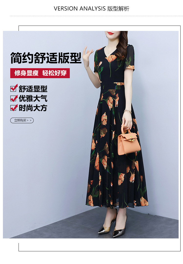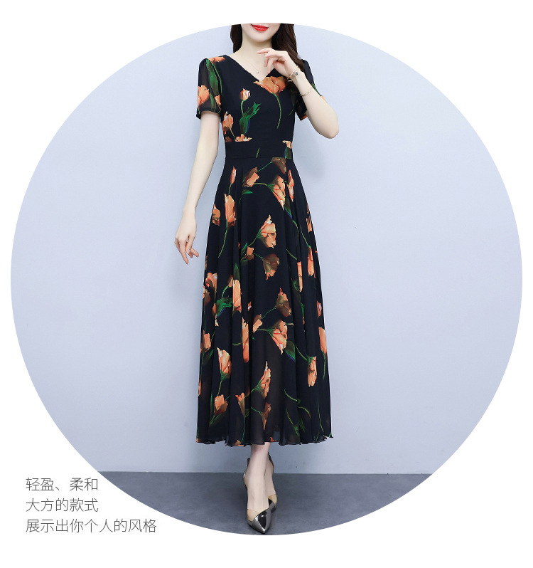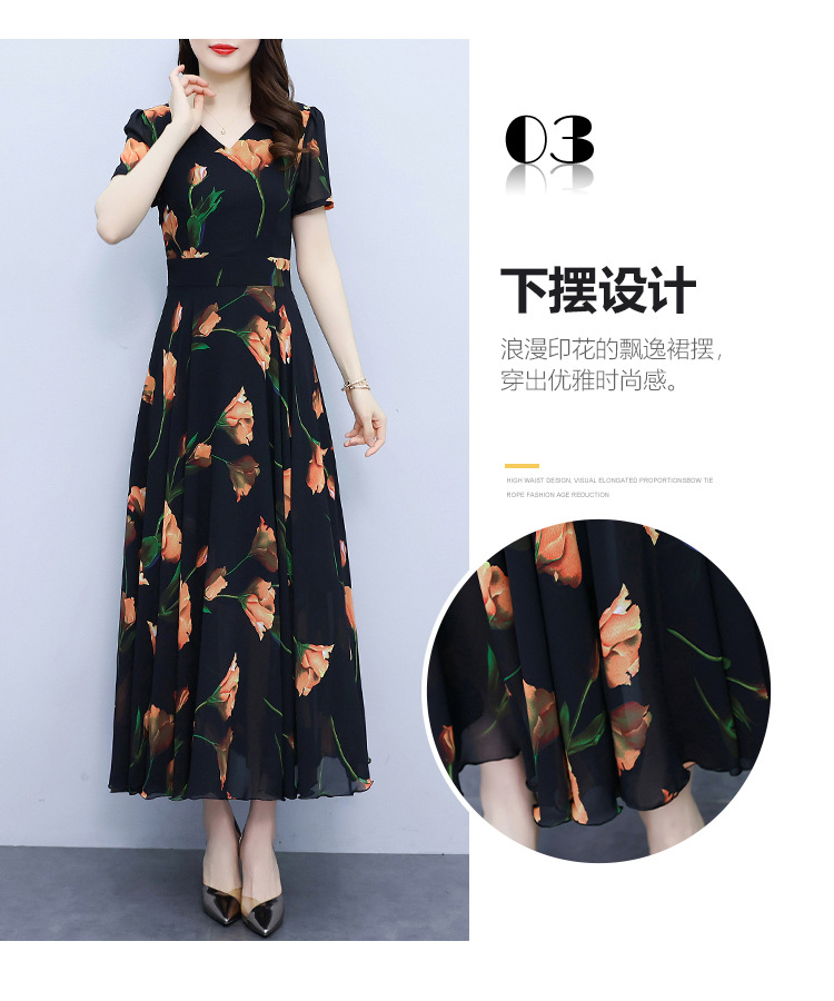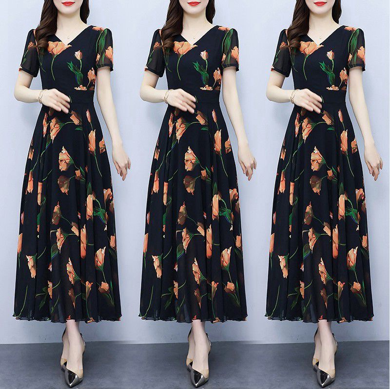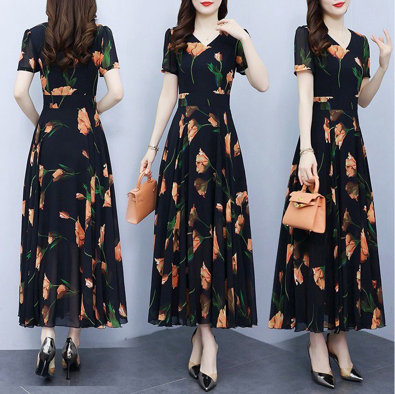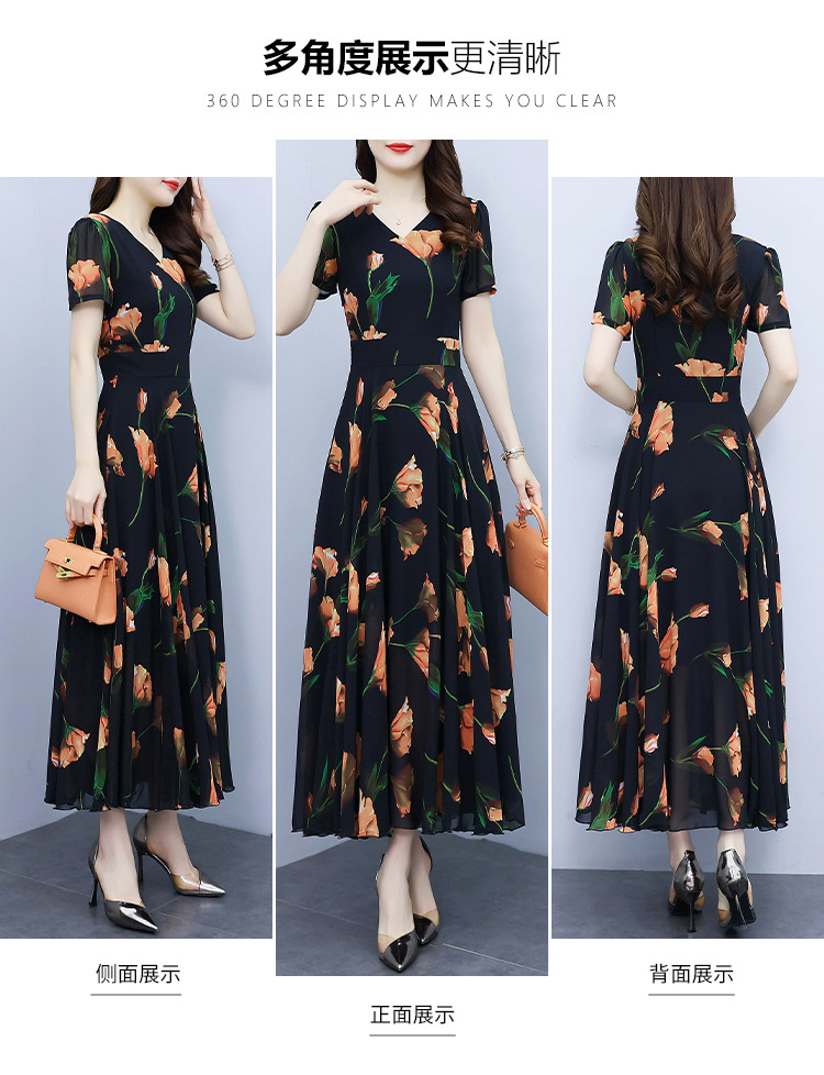 阔太太碎花雪纺连衣裙女显瘦减龄遮肉大码女装2023年新款夏天长裙