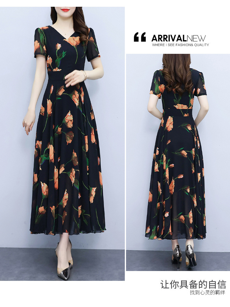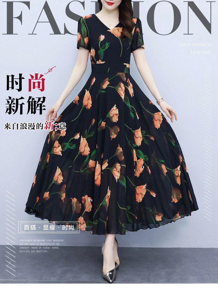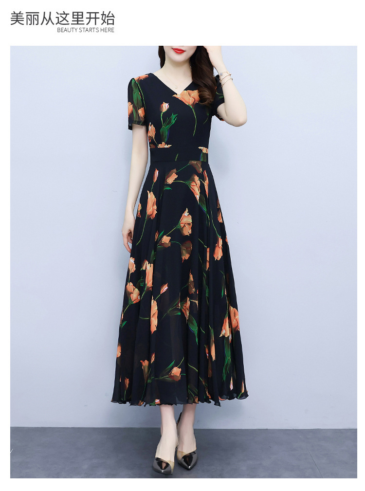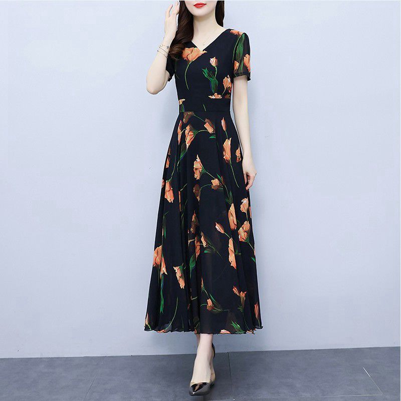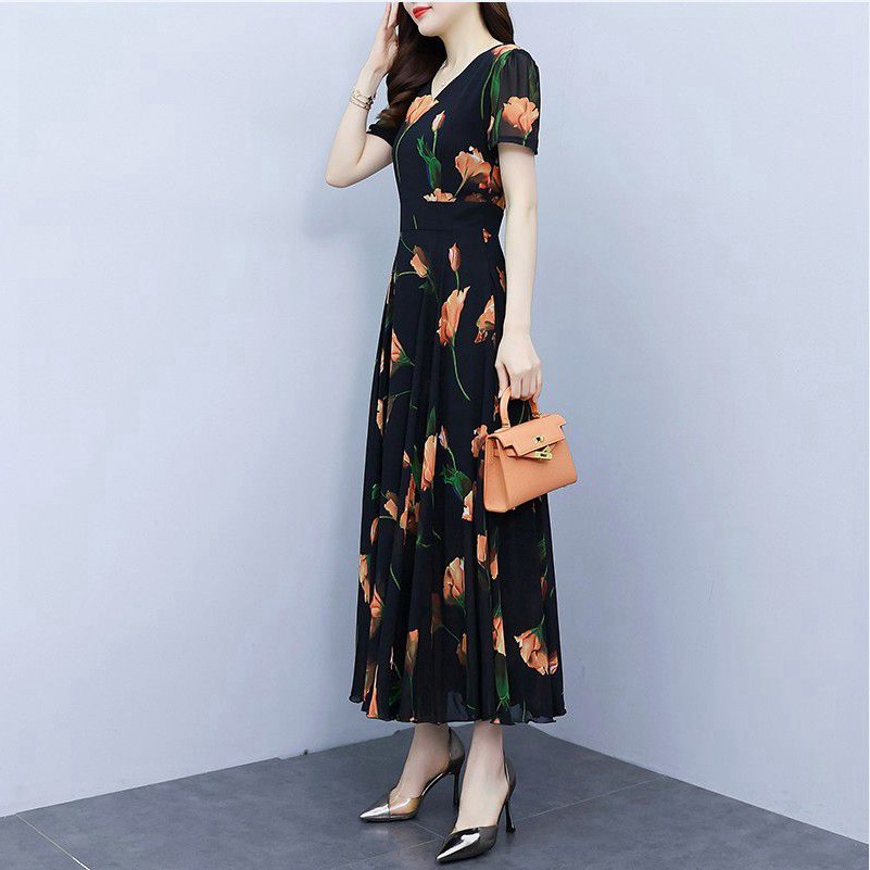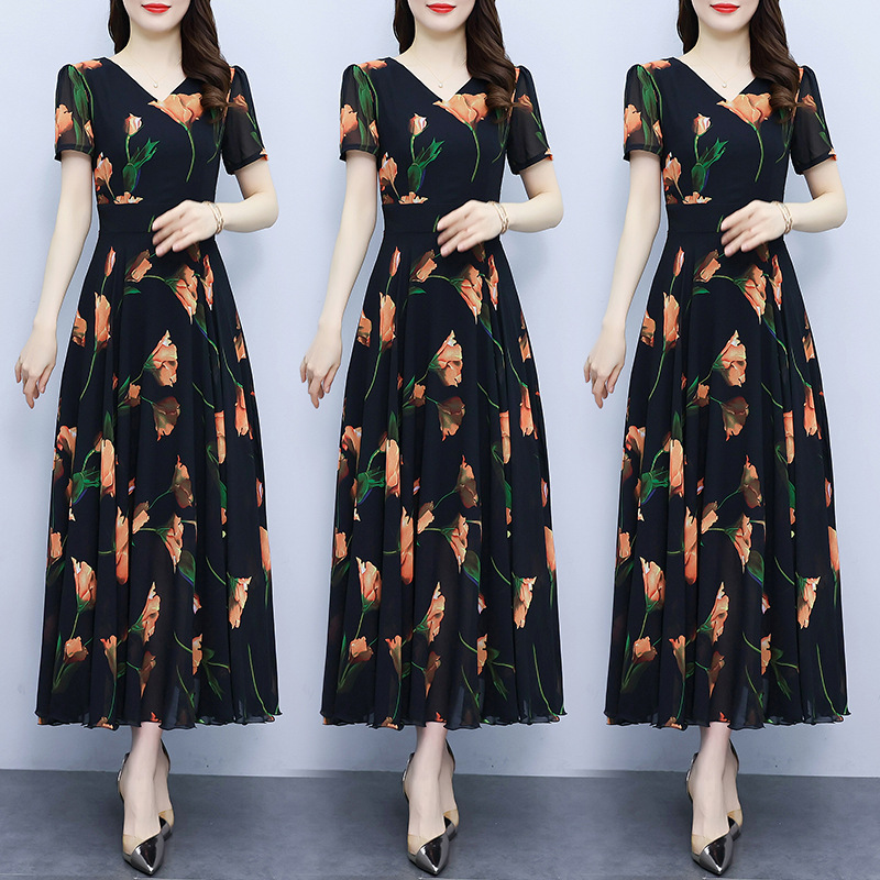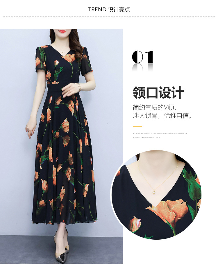阔太太碎花雪纺连衣裙女显瘦减龄遮肉大码女装2023年新款夏天长裙