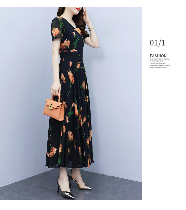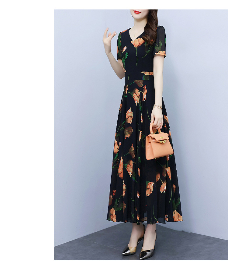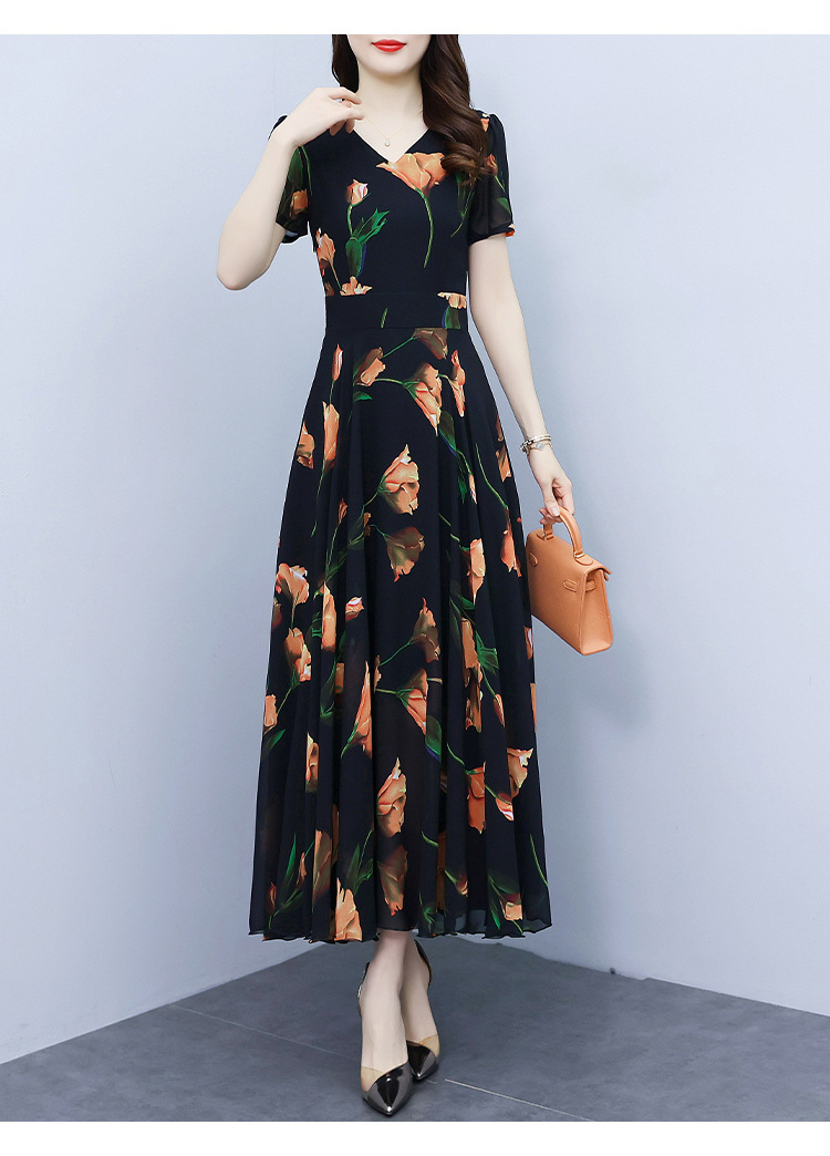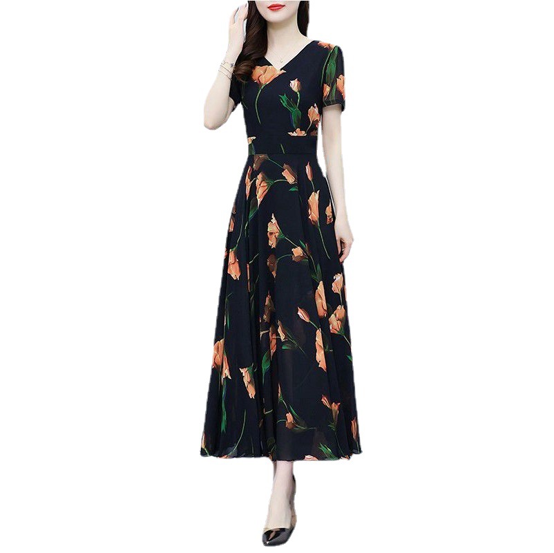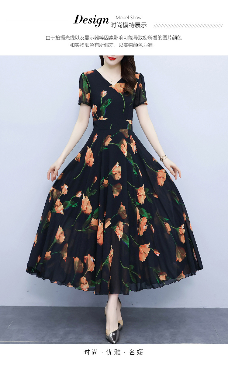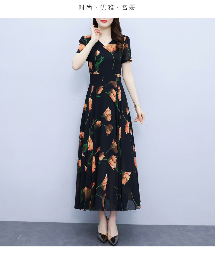 阔太太碎花雪纺连衣裙女显瘦减龄遮肉大码女装2023年新款夏天长裙