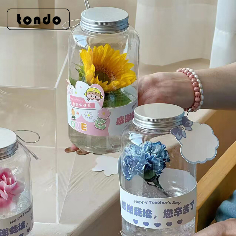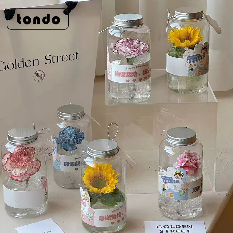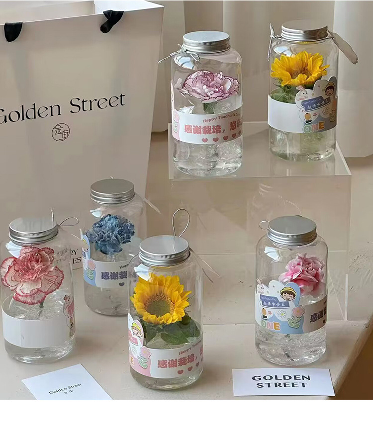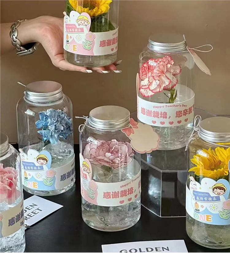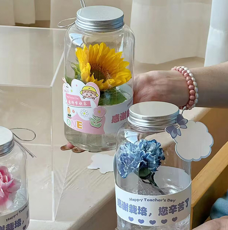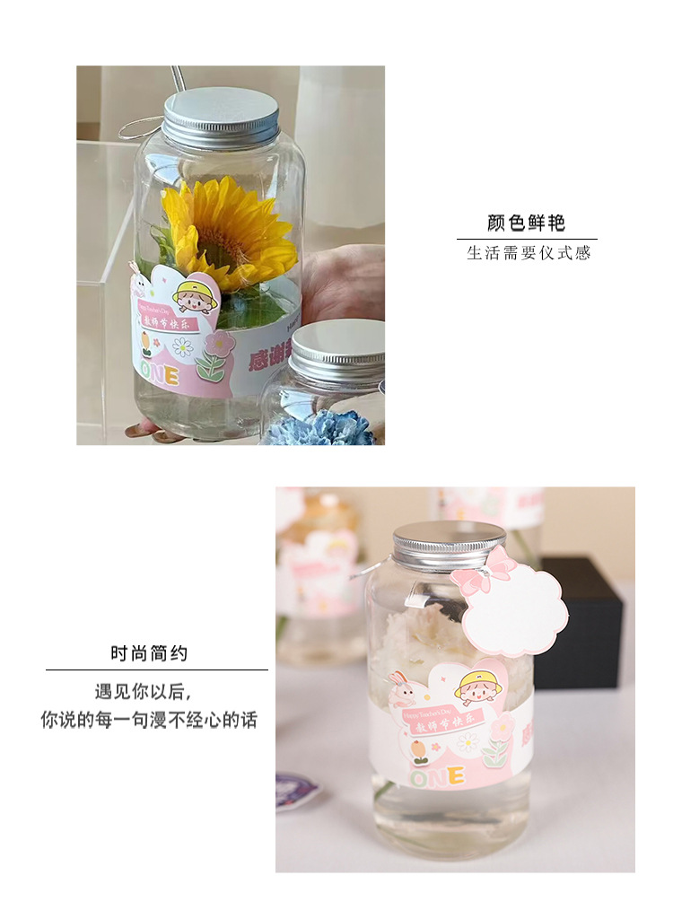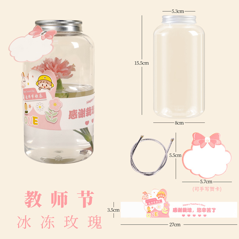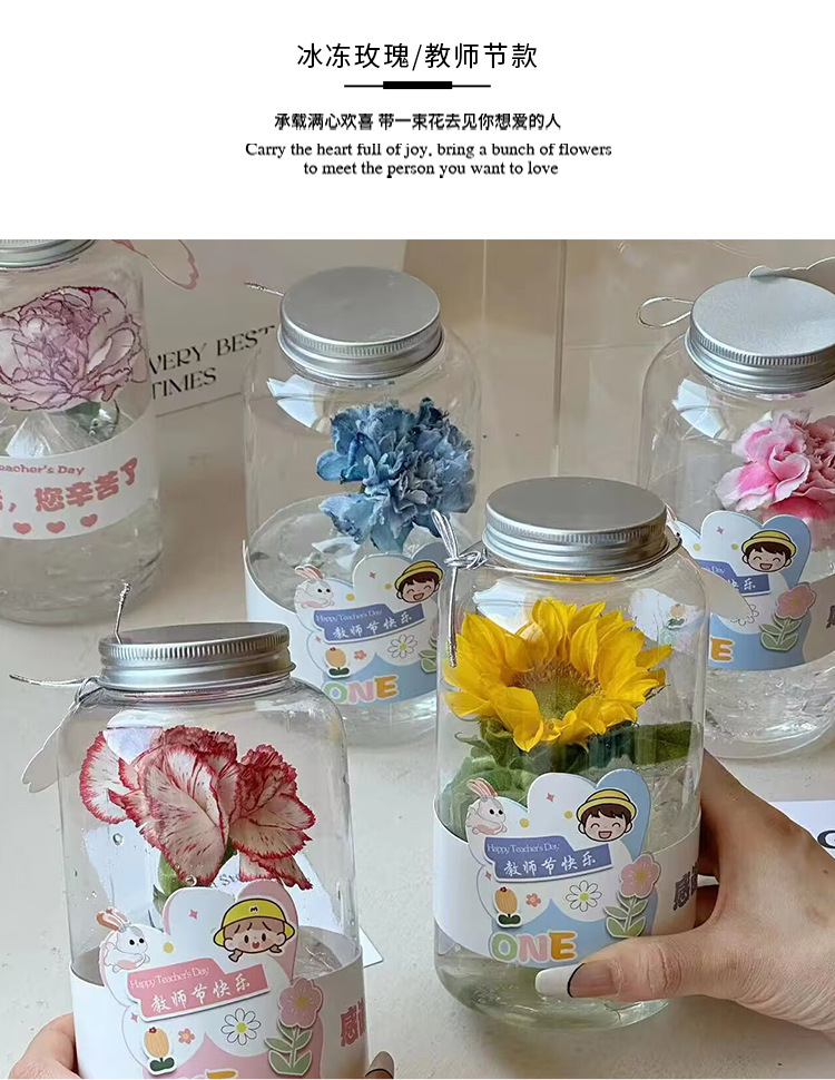 教师节新款网红冰冻玫瑰高颜值单支向日葵鲜花束包装盒塑料花瓶