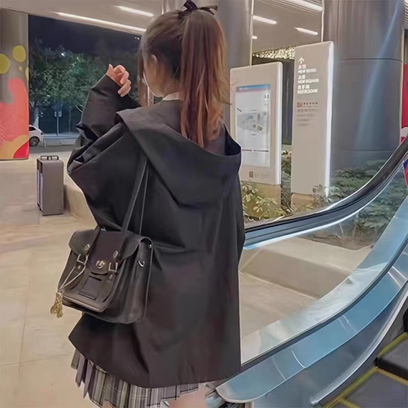 外套女春夏季2023新款學生氣質寬鬆薄款情侶夾克開衫連帽風衣ins