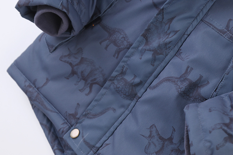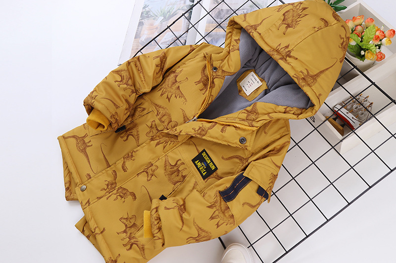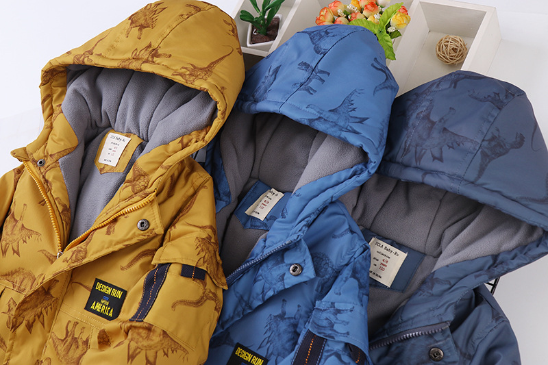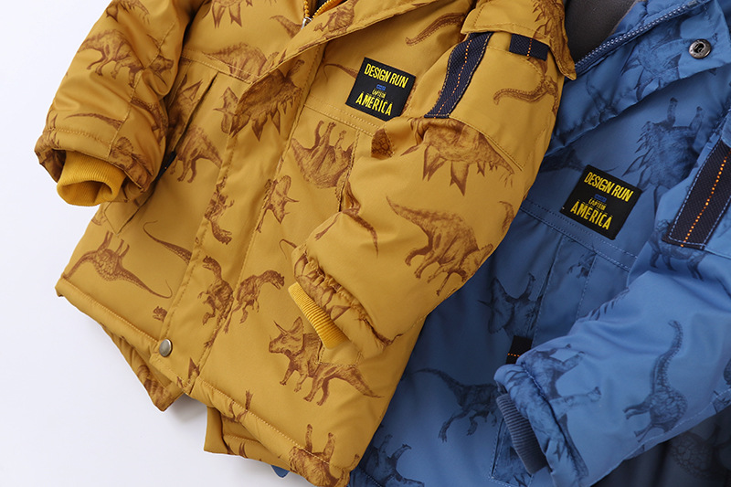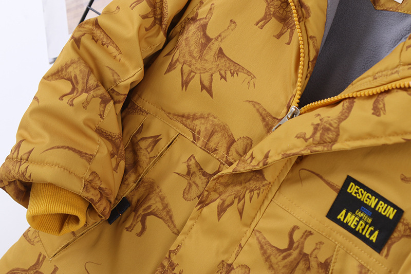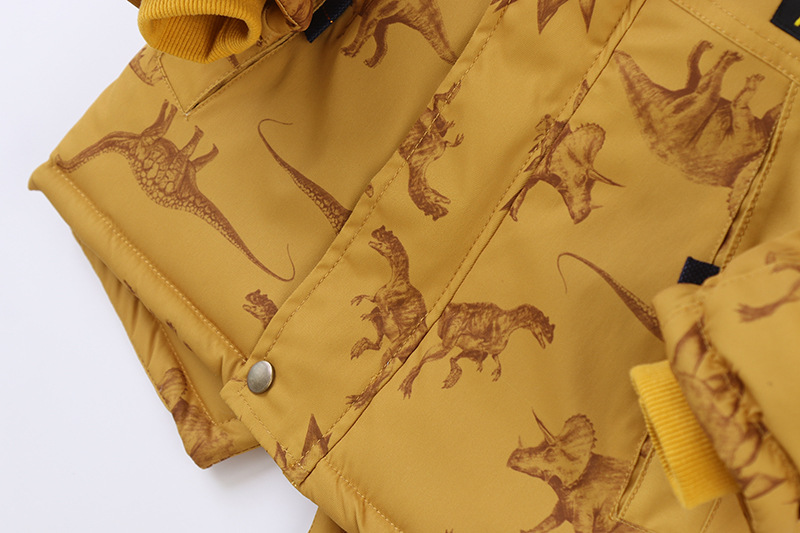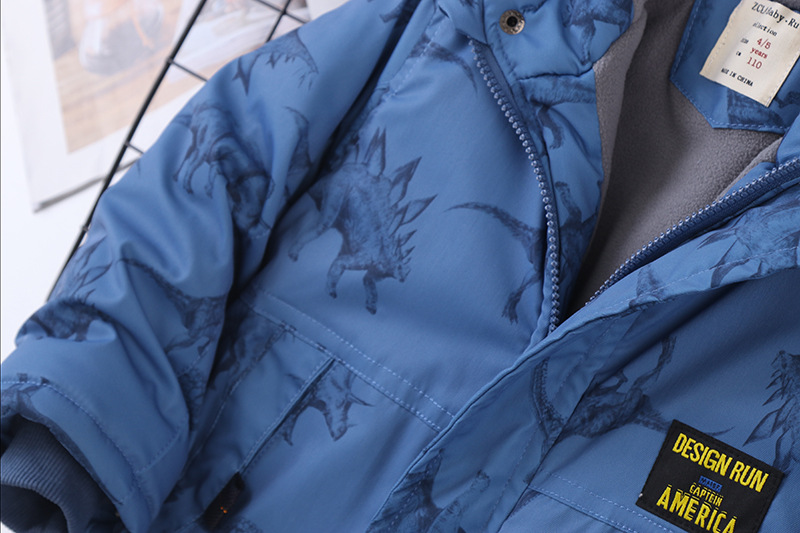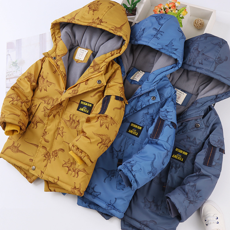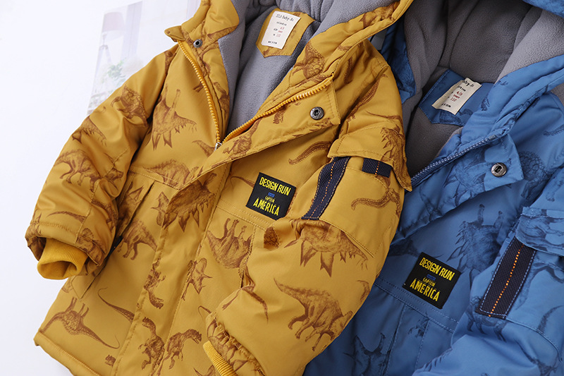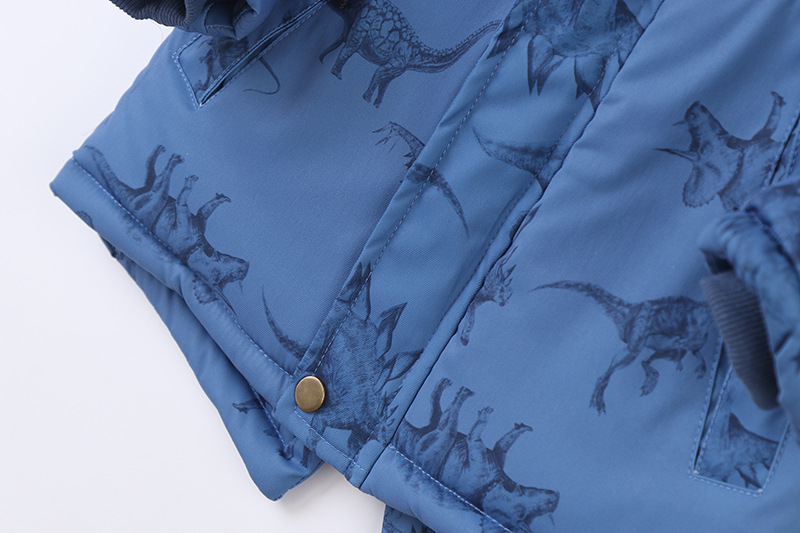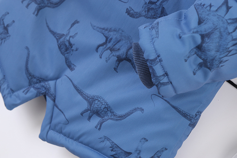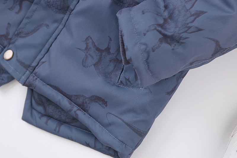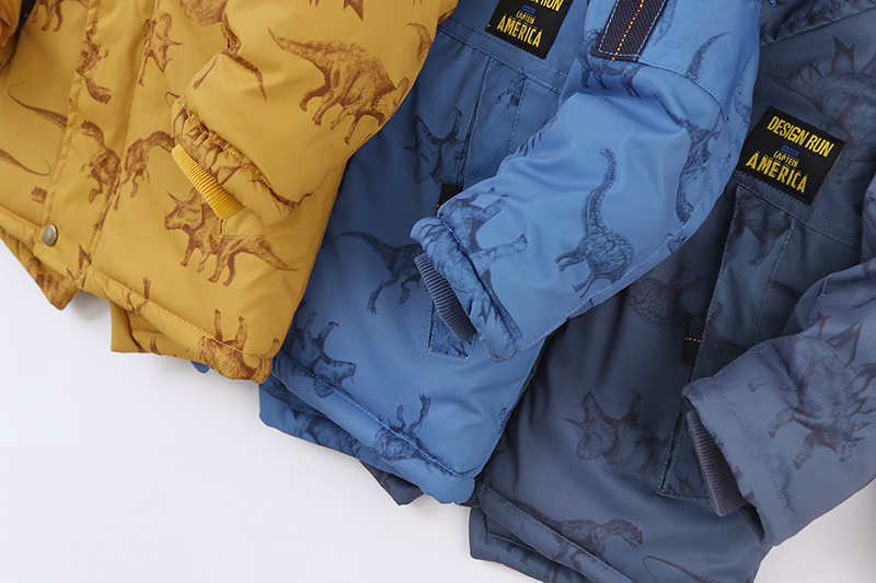 跨境专供恐龙印花加绒加厚2023棉衣冬季新款连帽男童棉服儿童棉袄