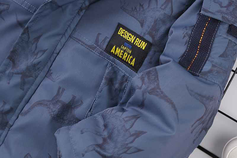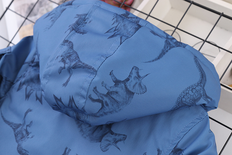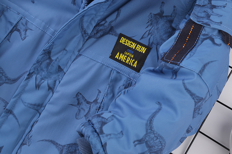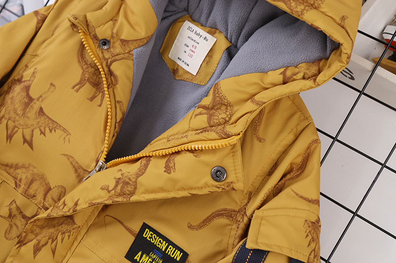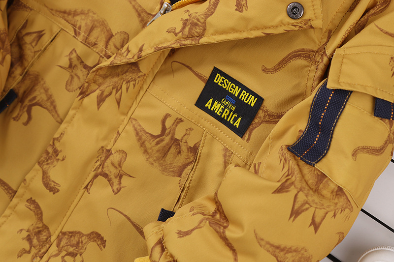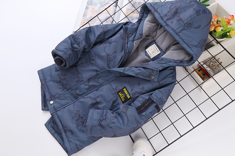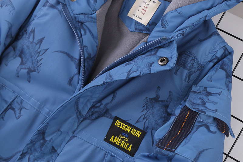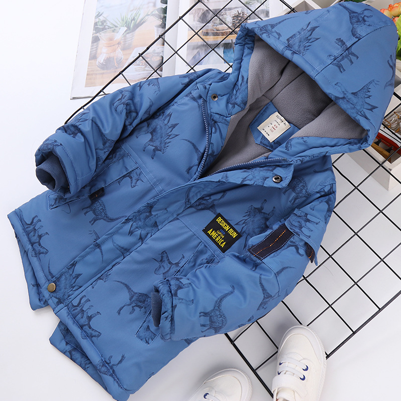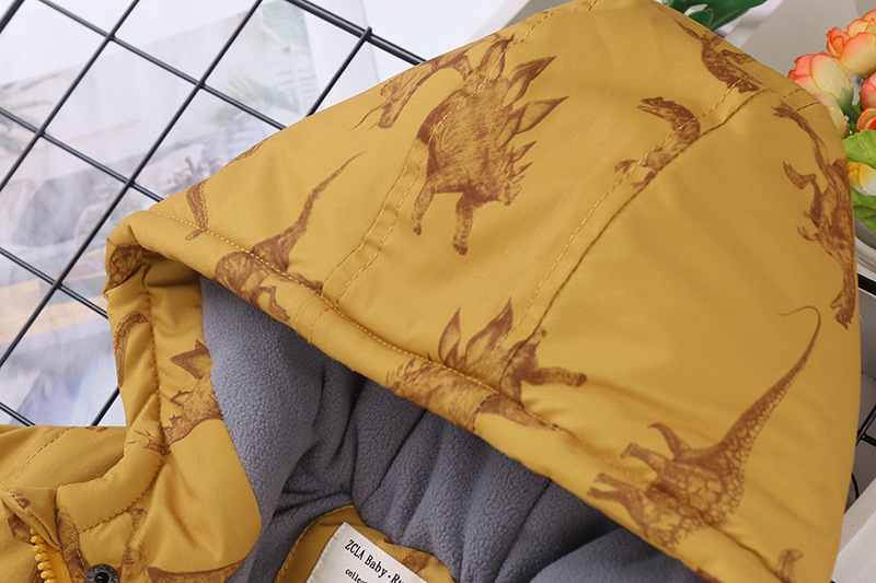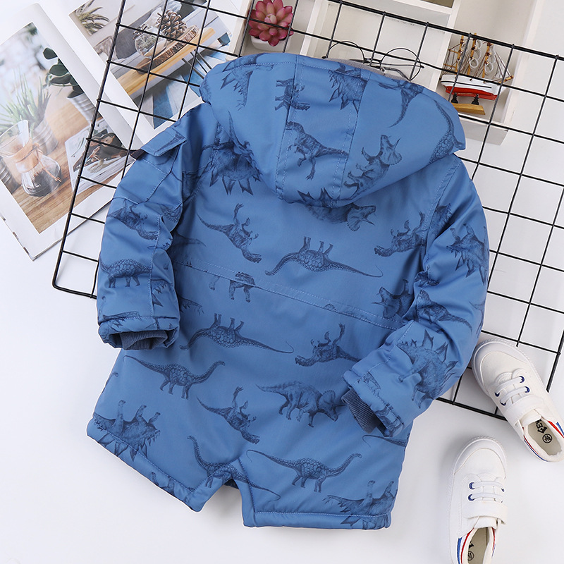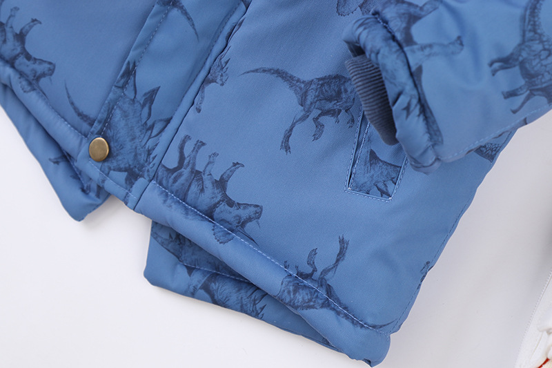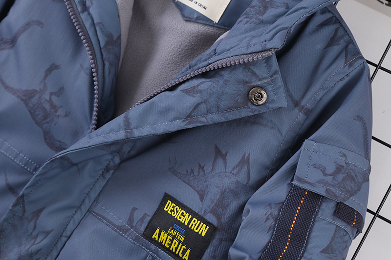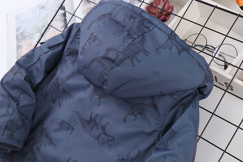 跨境专供恐龙印花加绒加厚2023棉衣冬季新款连帽男童棉服儿童棉袄