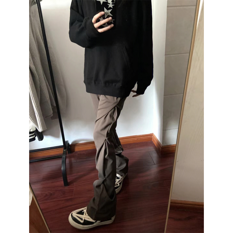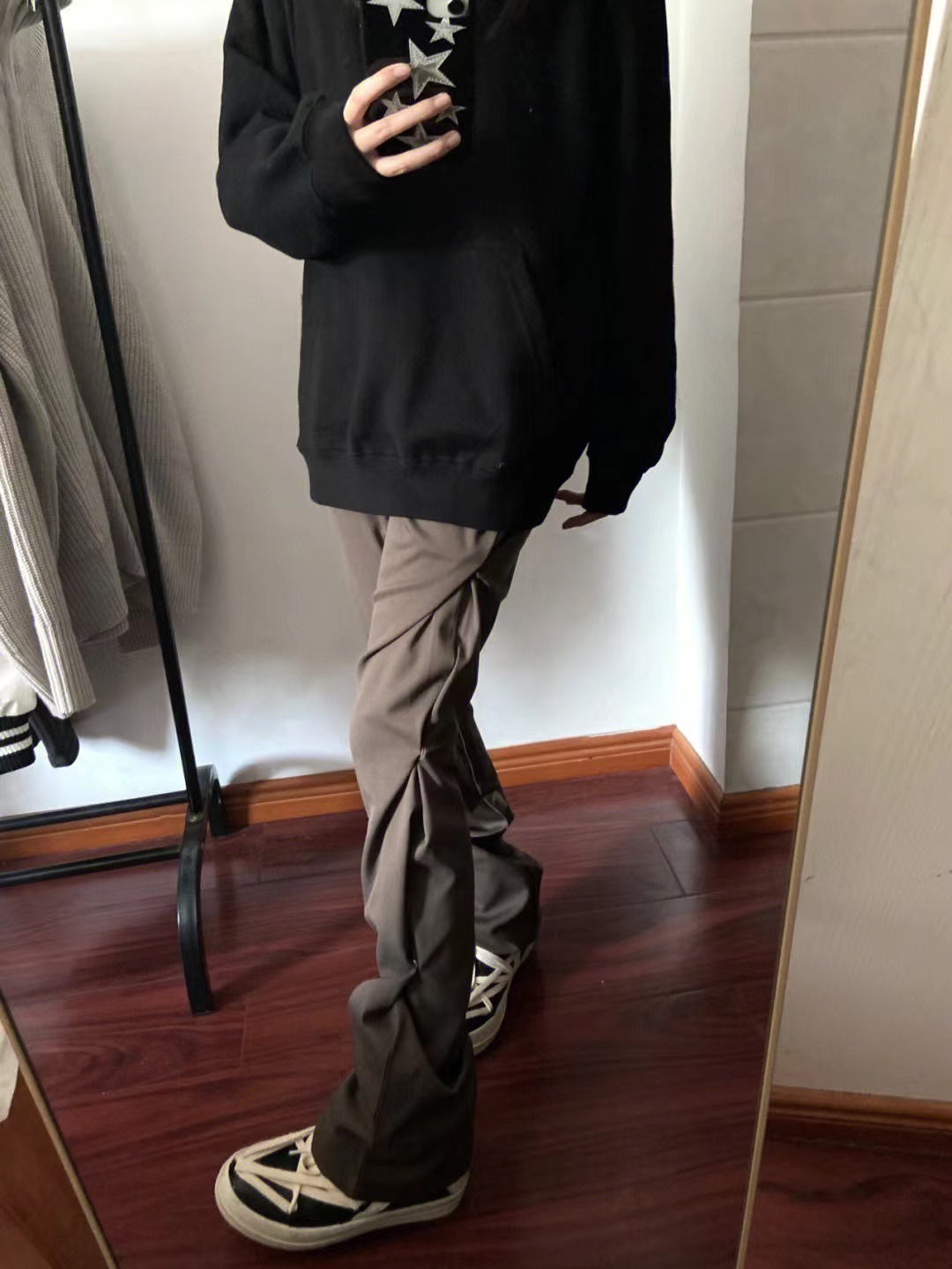 歐美vibe風褲子高街潮牌小眾設計高級感西褲男垂感直筒排扣微喇叭褲