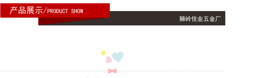 广州市花都区狮岭佳业五金厂零售批发各种口金链条、女式包包、包包链条、箱包五金狗扣、弹簧圈、D扣、五金线圈、万字链、珠链、蛇链,在消费者当中享有较高的地位,公司与多家零售商和代理商建立了长期稳定的合作关系。 1、公司宗旨:“顾客至上、质量保证、出货快捷、价格实惠、服务周到” 2、经营理念:用优质的产品做出客户的口碑。 3、公司优势: 成熟的生产技术; 稳定的员工队伍; 上千的产品种类; 实惠的销售价格; 优质的售后服务。 4、售后服务:本公司提供退货或同类产品换货的服;若发生安装过程的问题,本公司提供免费技术支持服务;其他的未尽事宜均可商量解决。 5、公司门市: 广州市花都区狮岭皮革城四期A五街11号。 6、工厂地址: 广州市花都区狮岭镇联合村自编六群一社三十一巷29号 此外,我们还为广州多家五金、链条商行提供铝链、铁链等胚链(半成品)。 做大做强一直是我们坚持的梦想,将来,更多销售渠道的开展需要您的关注与支持。我们热烈欢迎各界朋友到我们店面或网店来参观、考察、指导以及洽谈业务。 --------------------------------------------- 十二、生产流程 --------------------------------------------- 胚链生产车间 胚链分装区