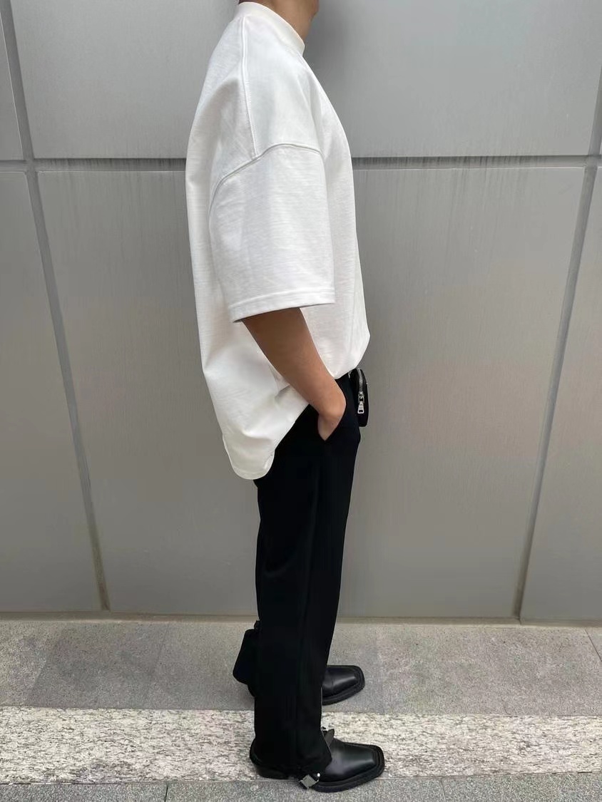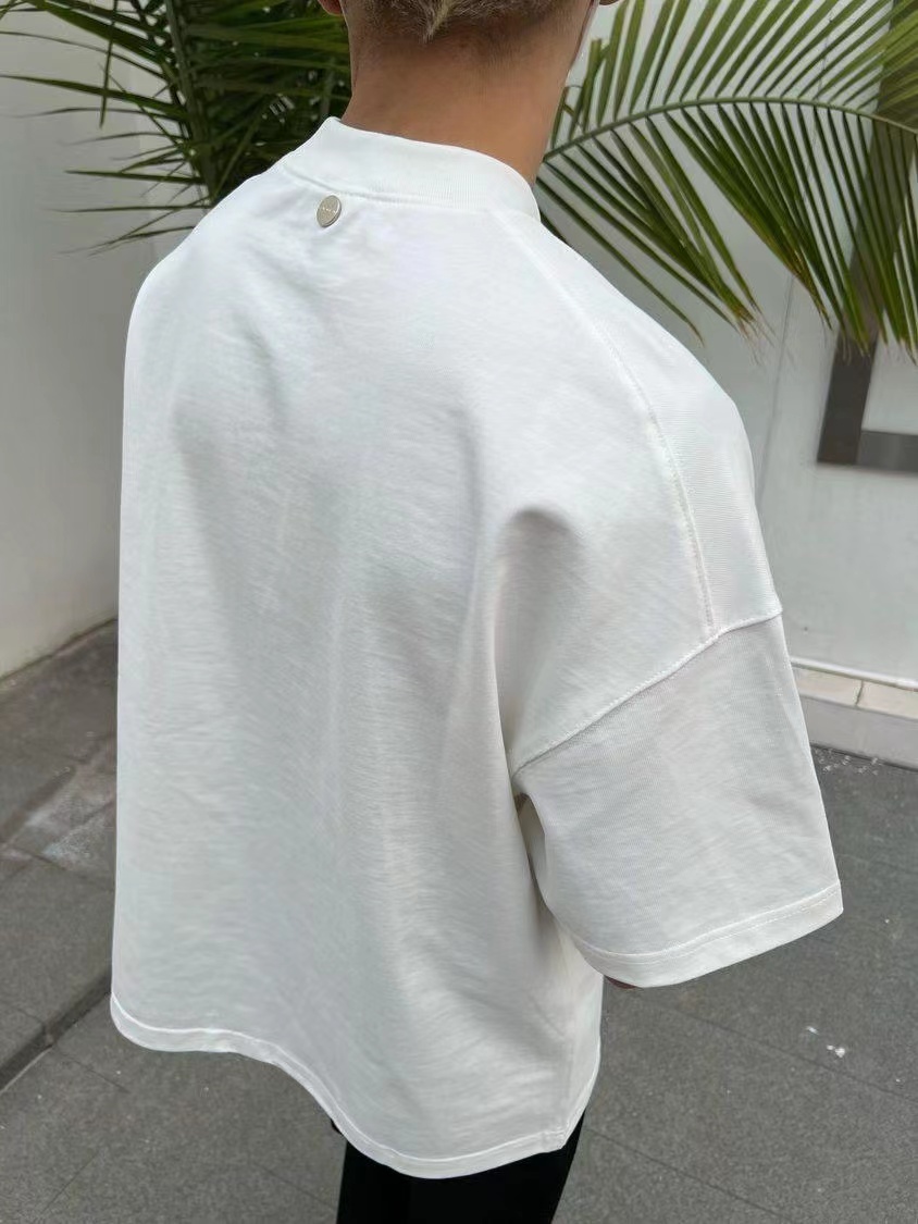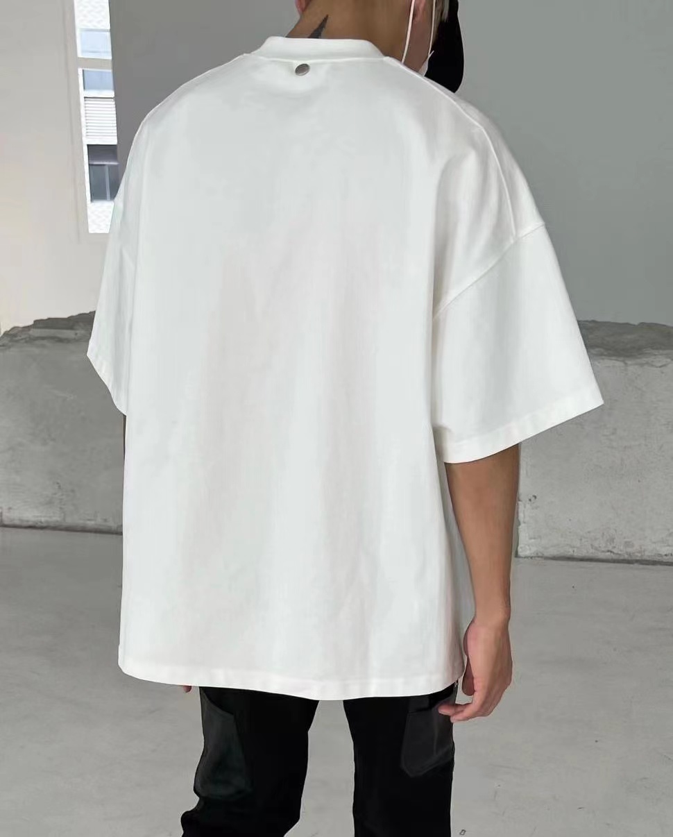 ATMOSWRAP 300g重磅新疆長絨棉金屬鈕釦解構裁剪短袖t恤男春夏季