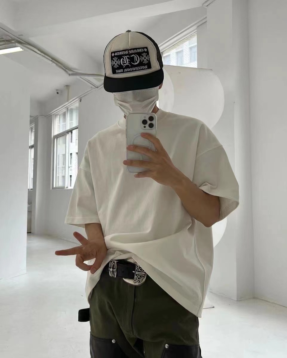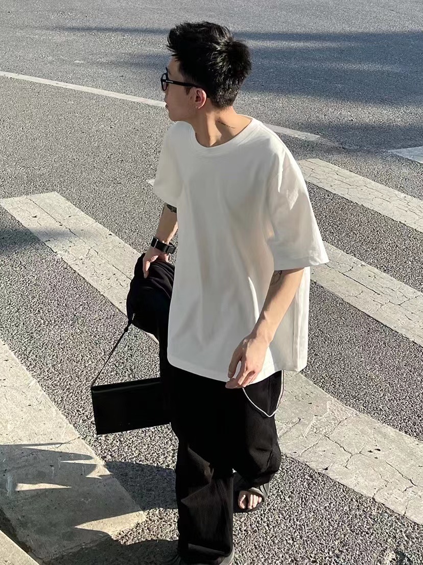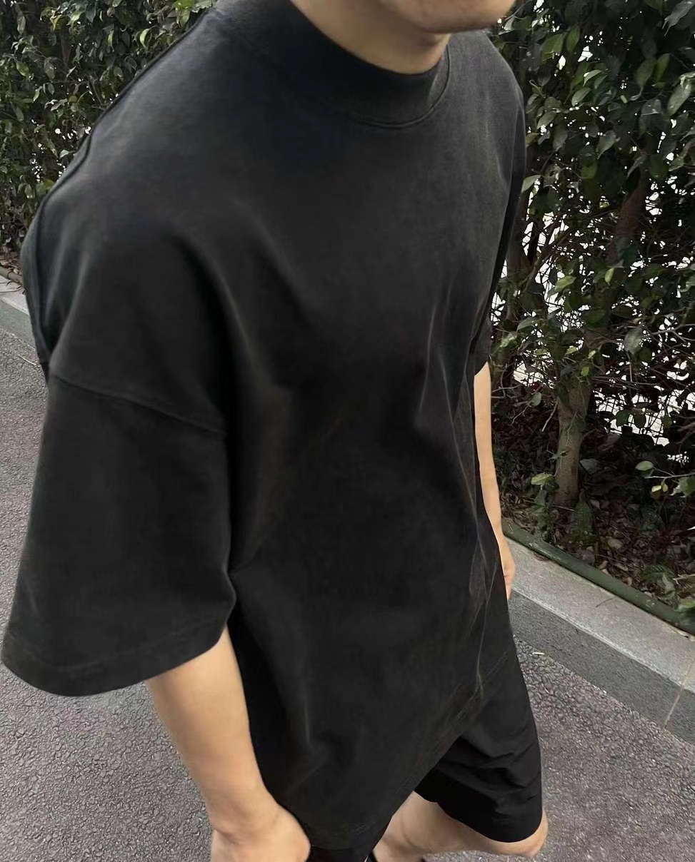 ATMOSWRAP 300g重磅新疆長絨棉金屬鈕釦解構裁剪短袖t恤男春夏季
