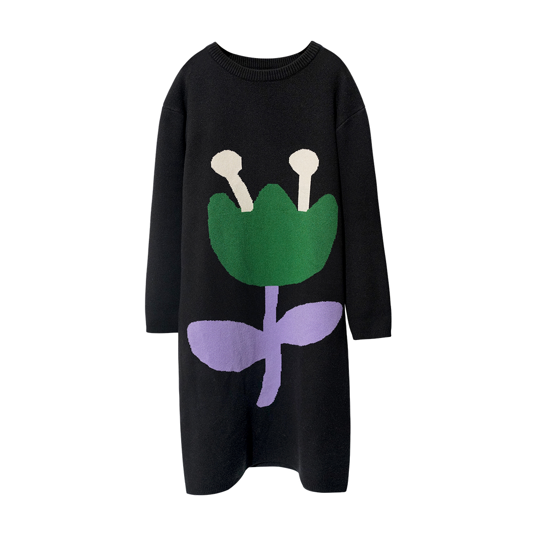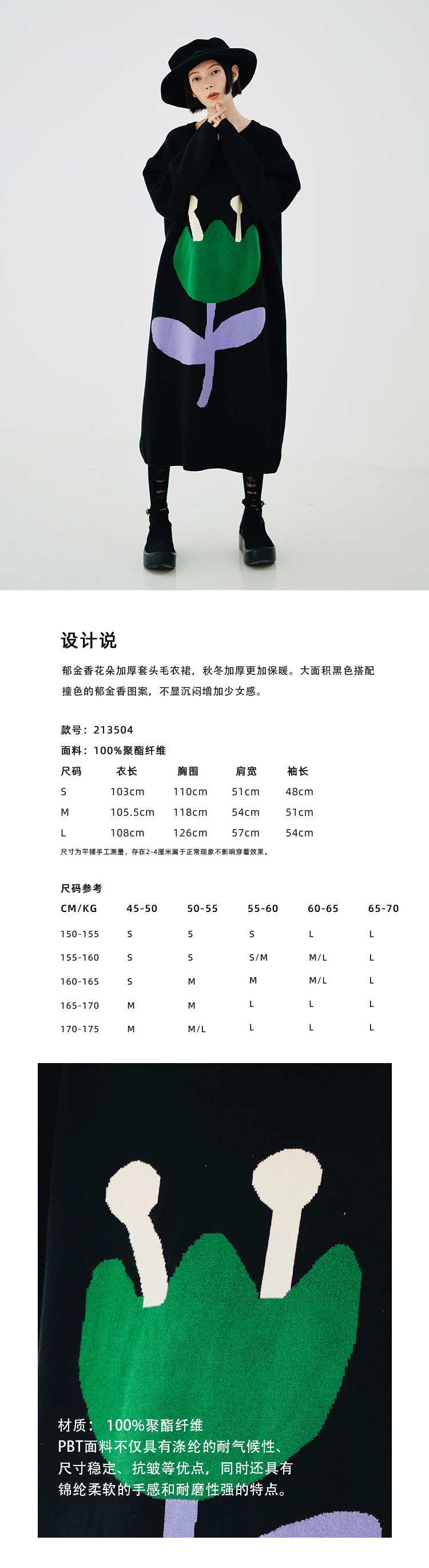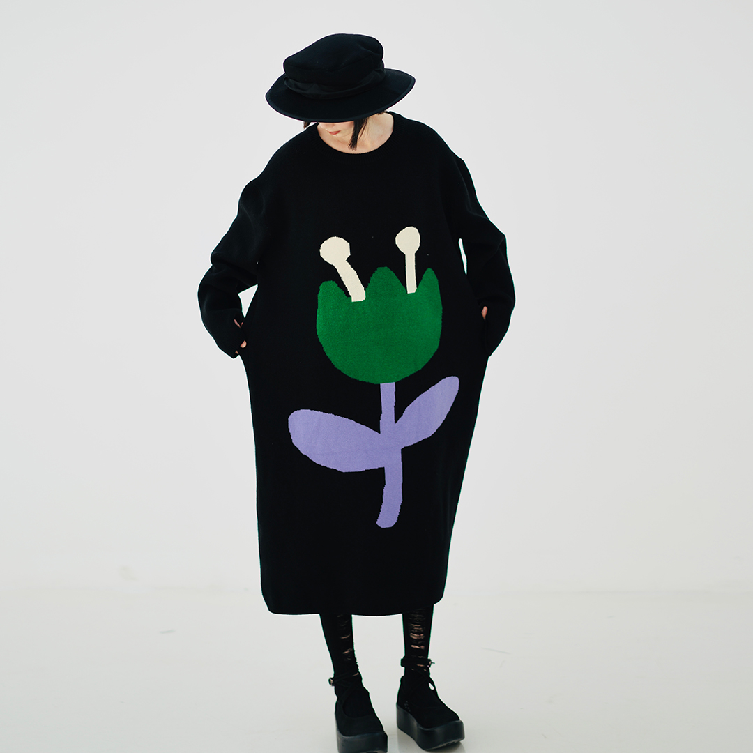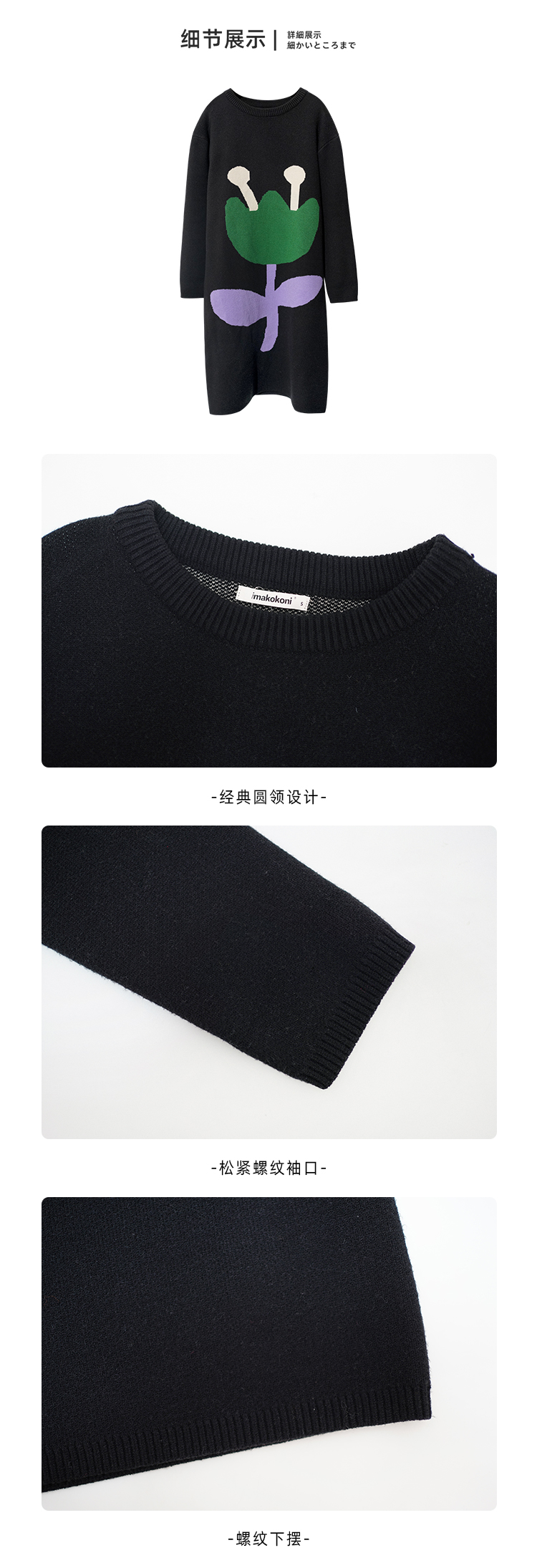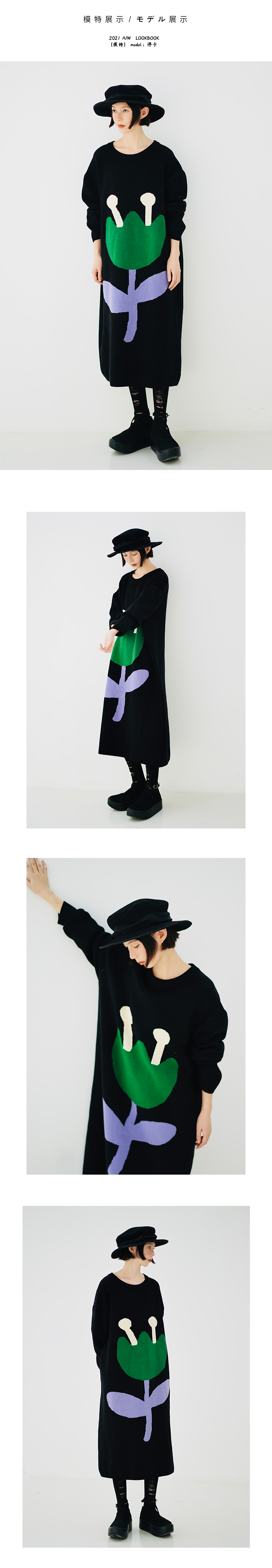 imakokoni 秋冬原創小眾鬱金香花朵加厚直筒套頭毛衣洋裝213504