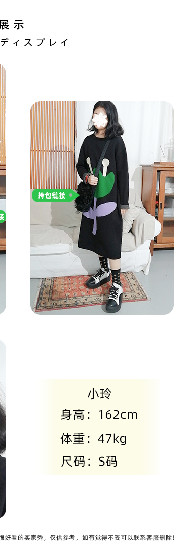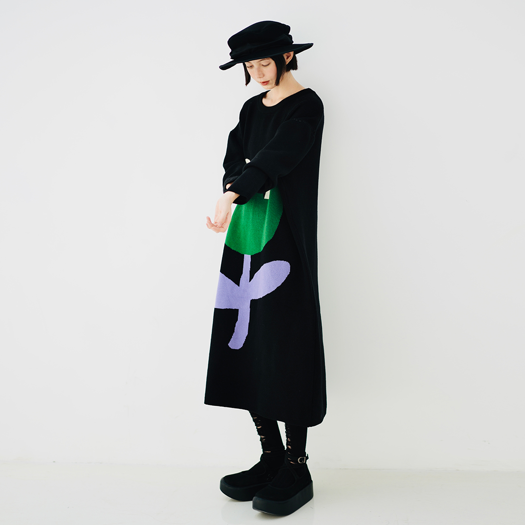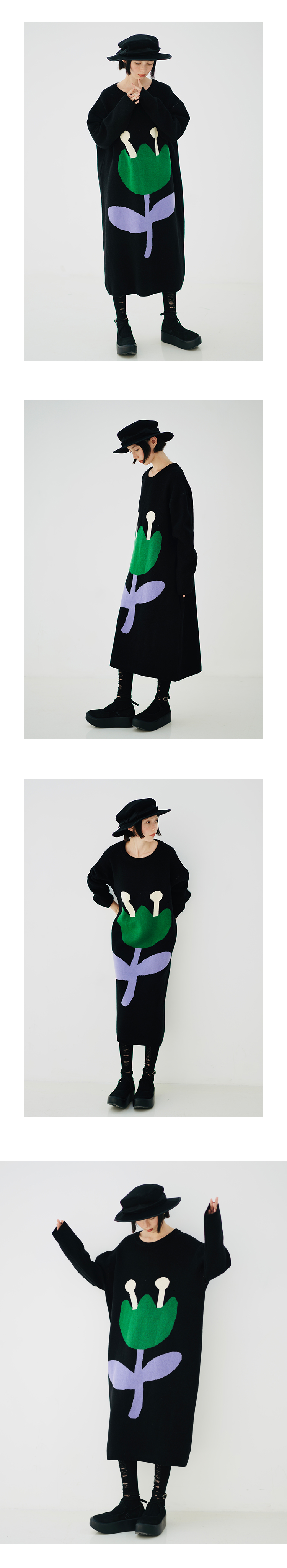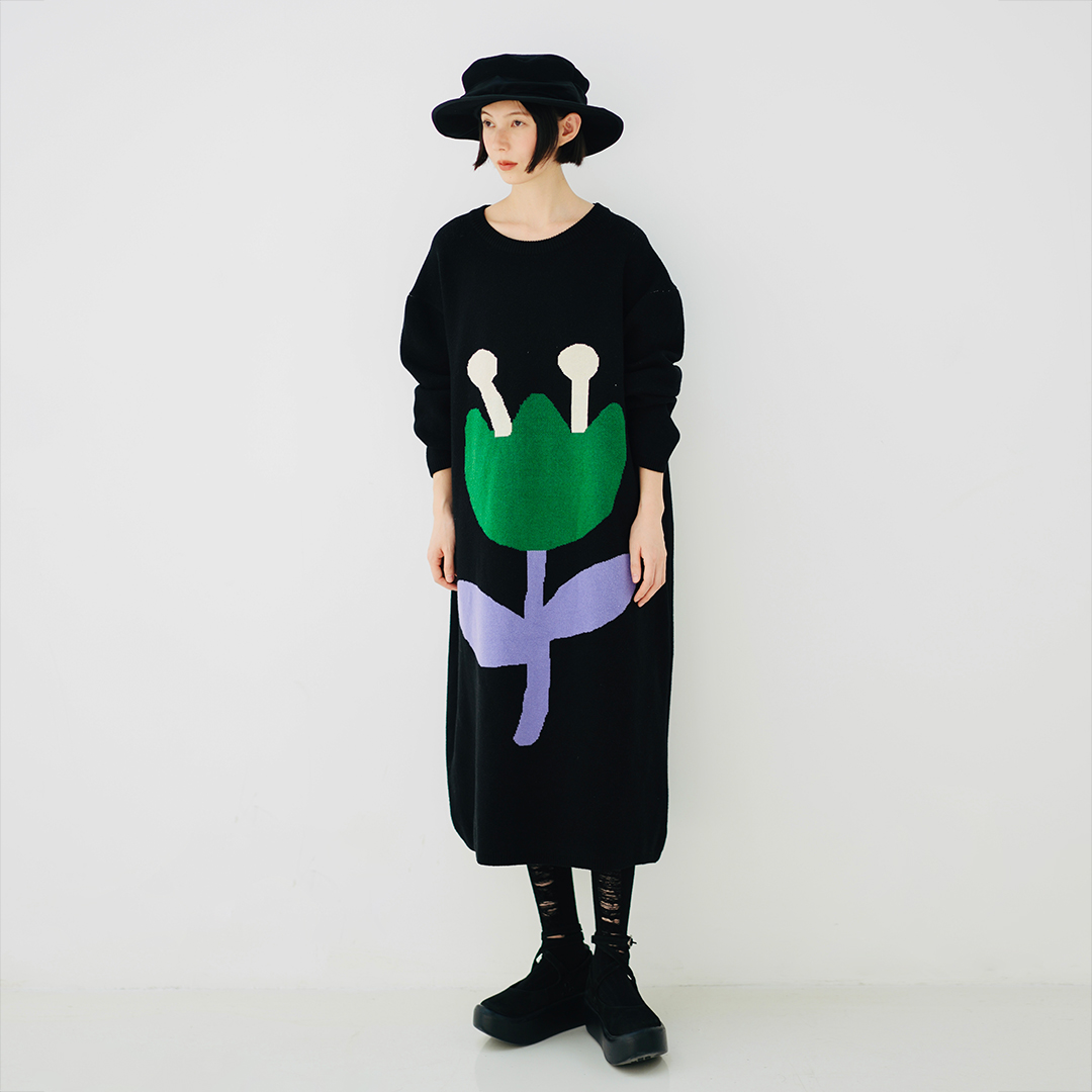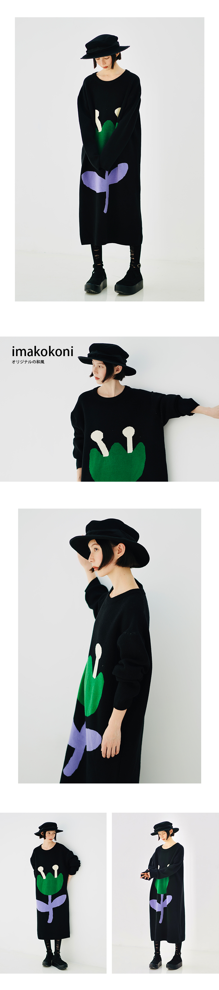 imakokoni 秋冬原創小眾鬱金香花朵加厚直筒套頭毛衣洋裝213504