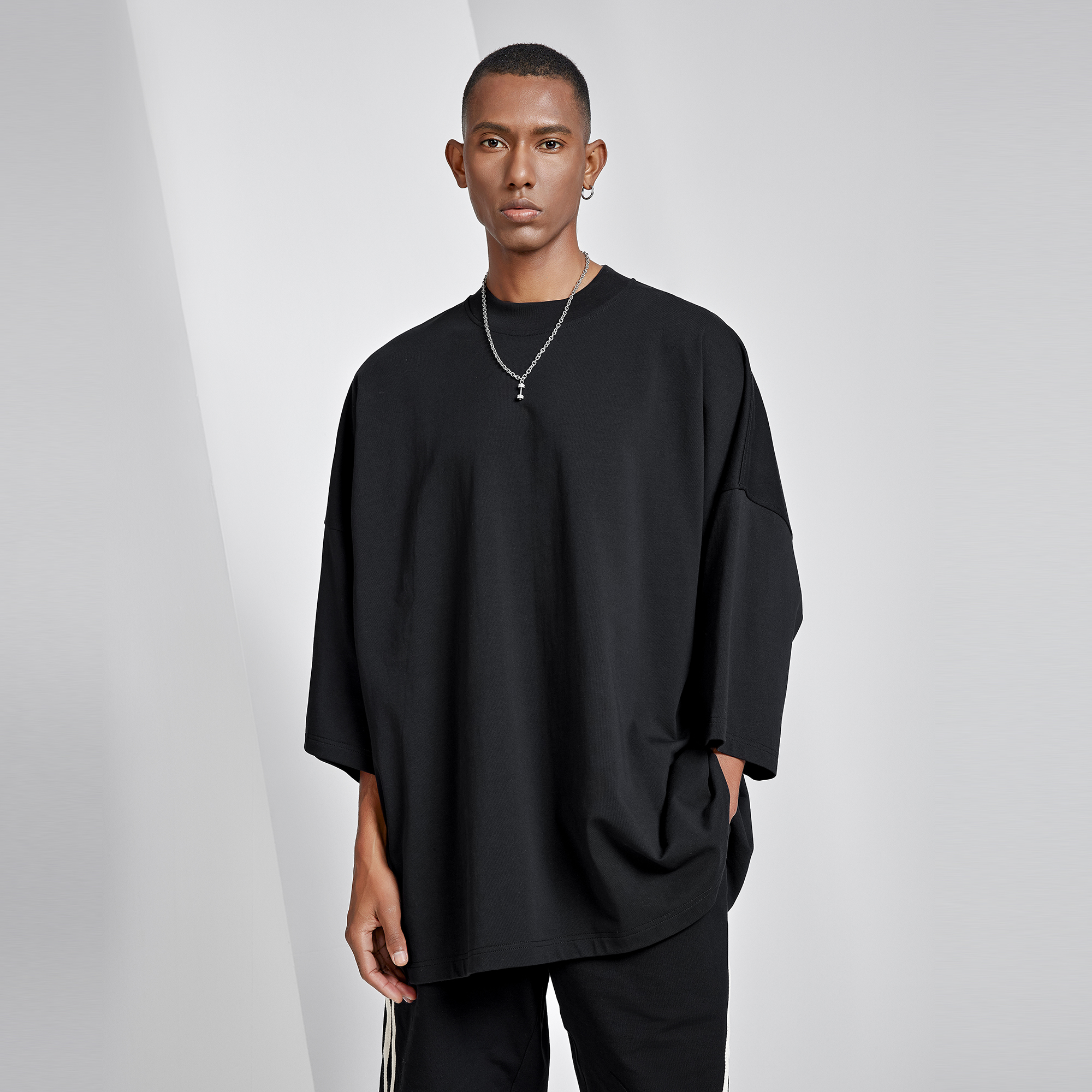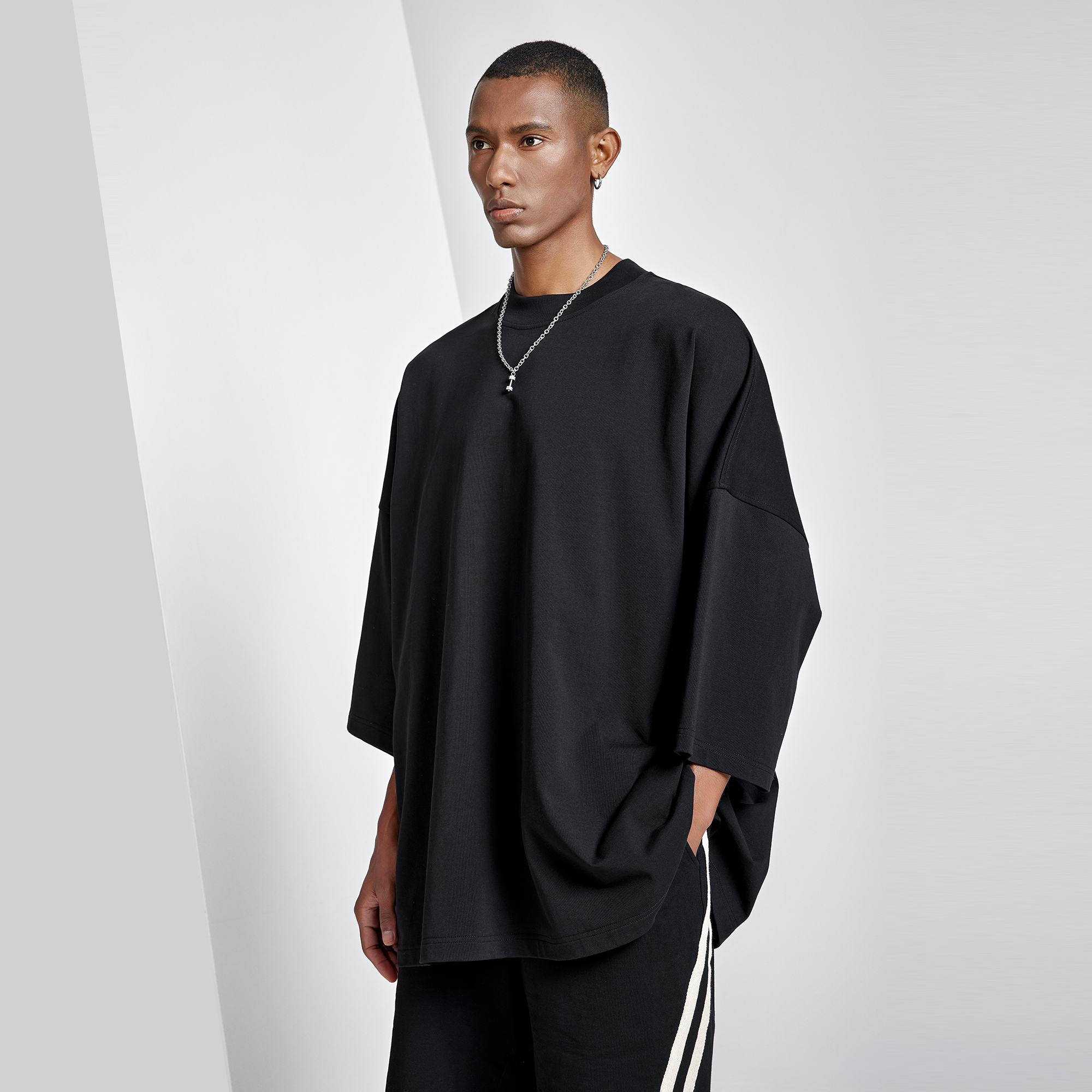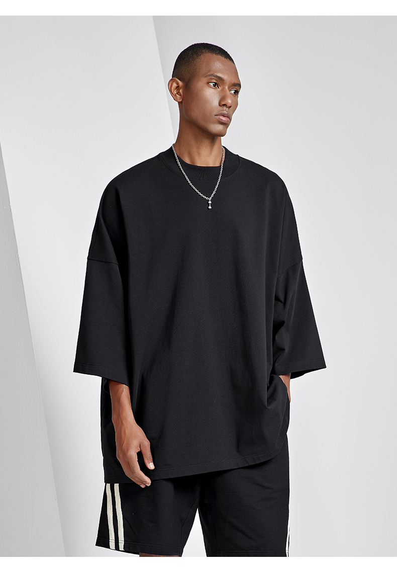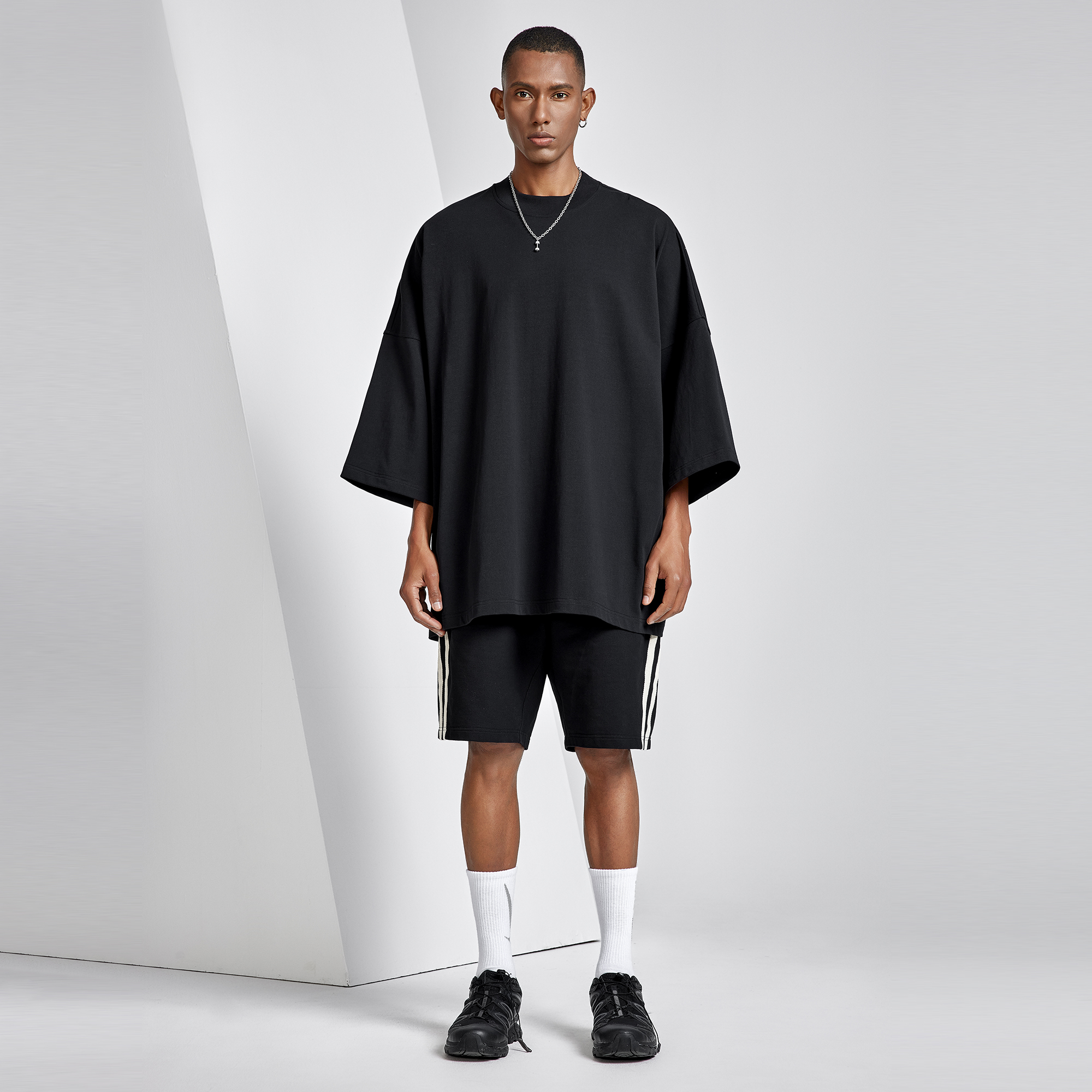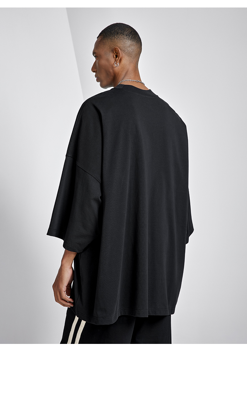 BODYDREAM大版嘻哈黑色短袖T恤男oversize純棉休閒美式寬鬆五分袖