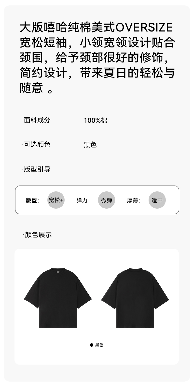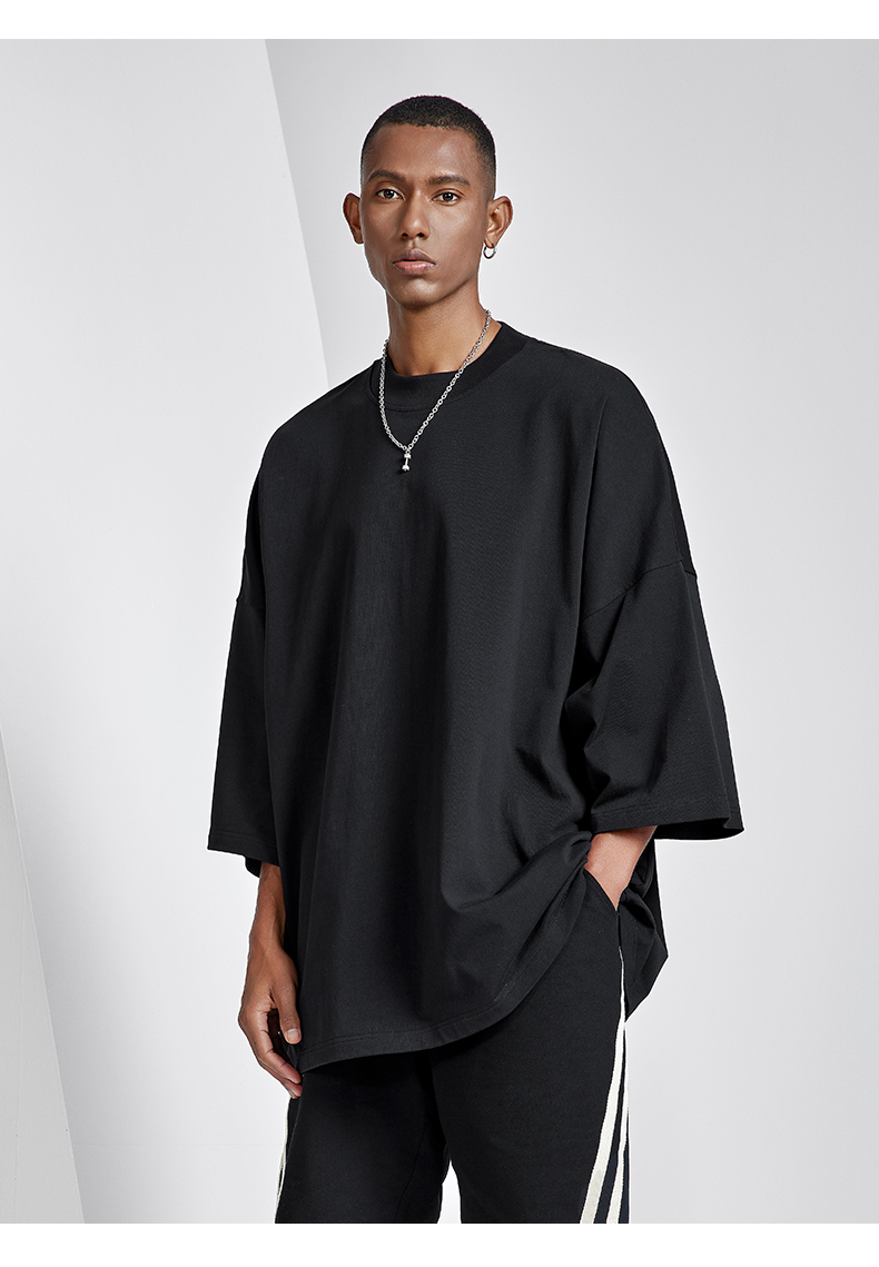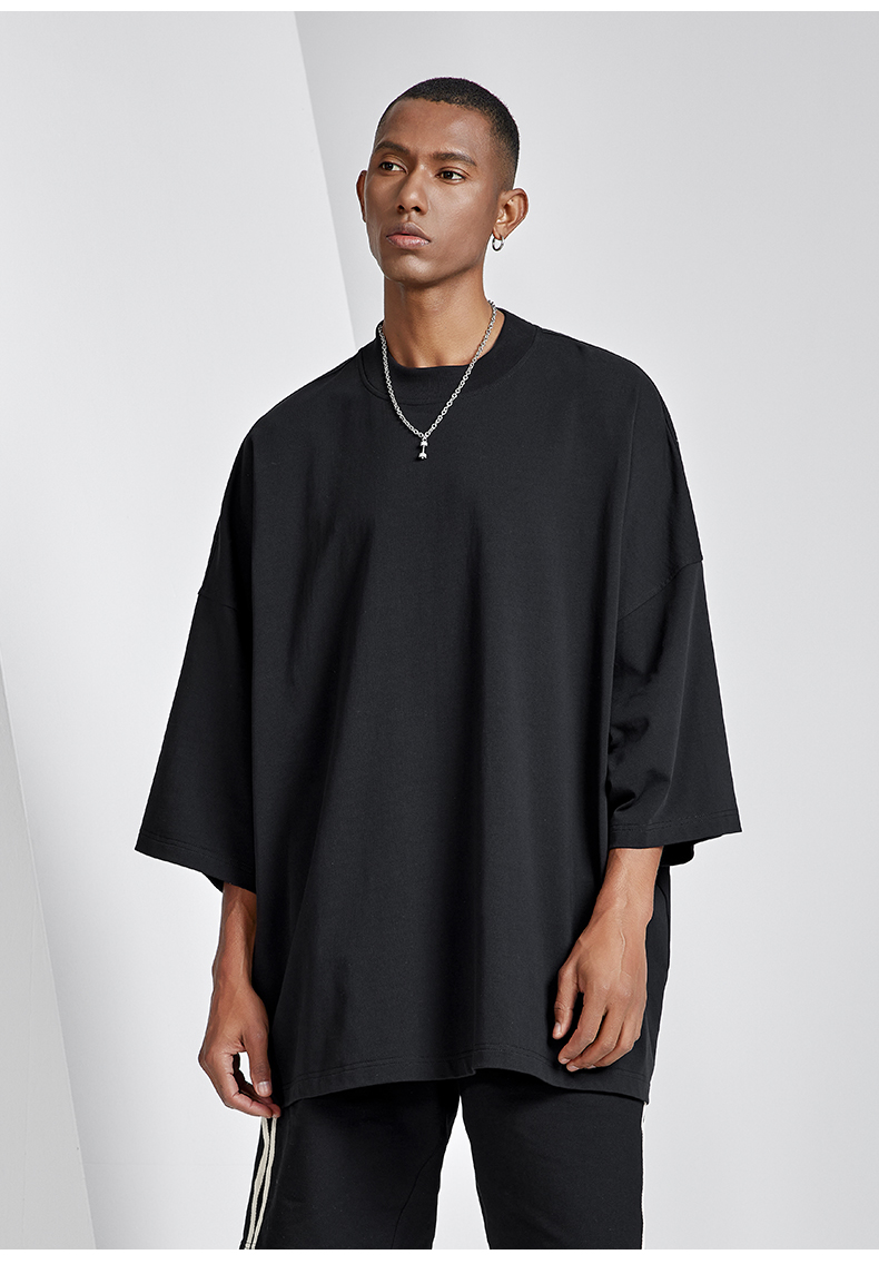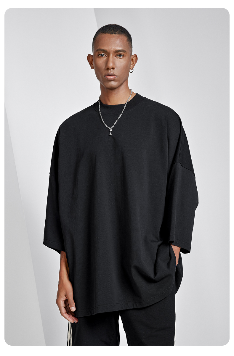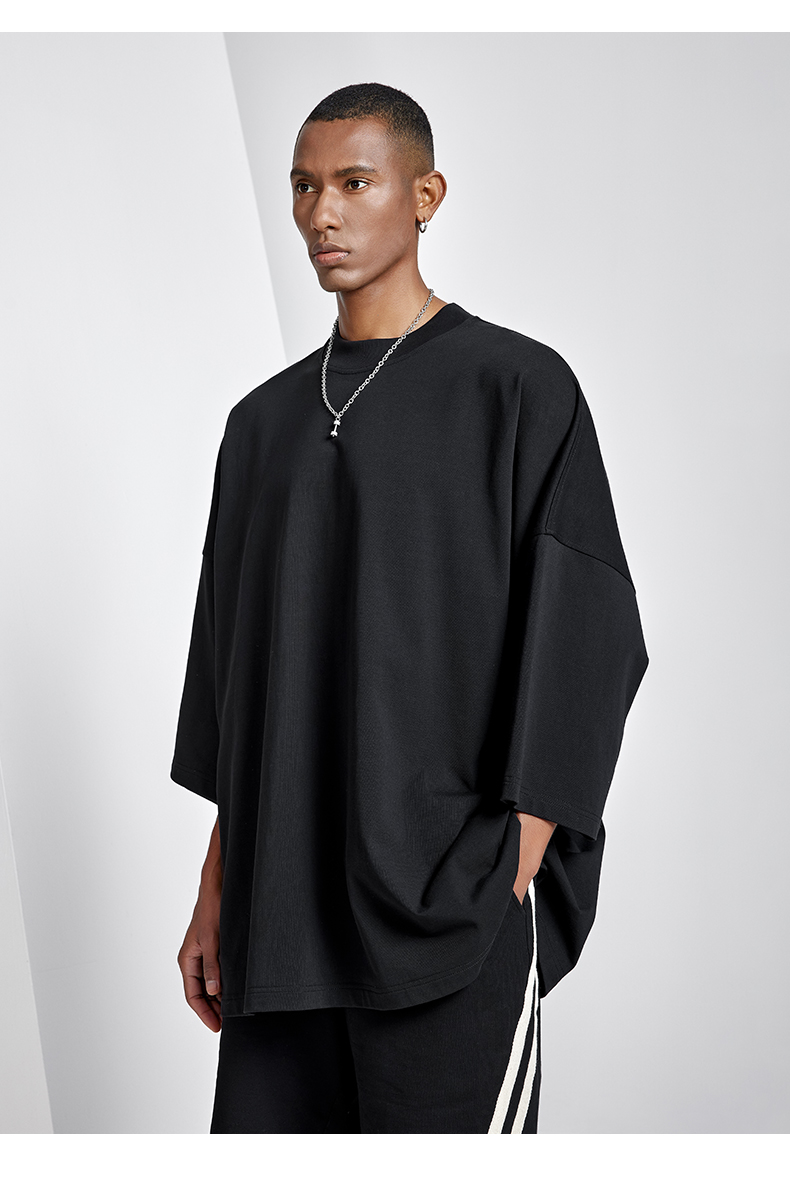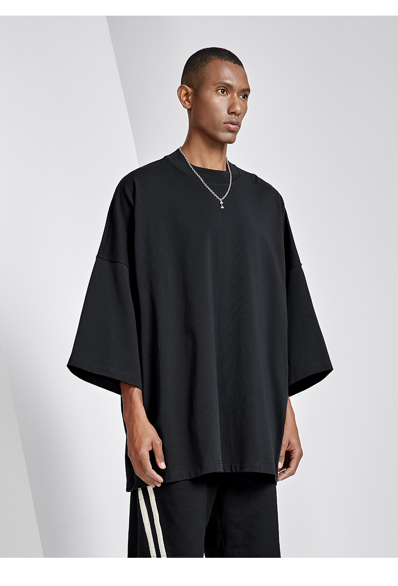 BODYDREAM大版嘻哈黑色短袖T恤男oversize純棉休閒美式寬鬆五分袖
