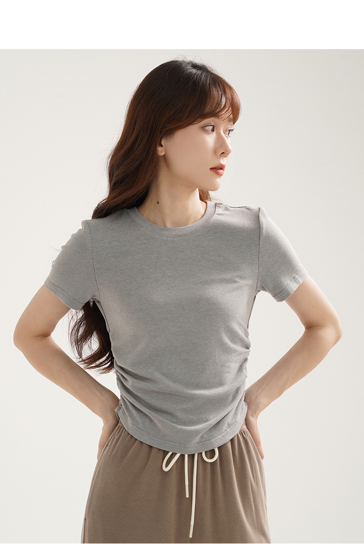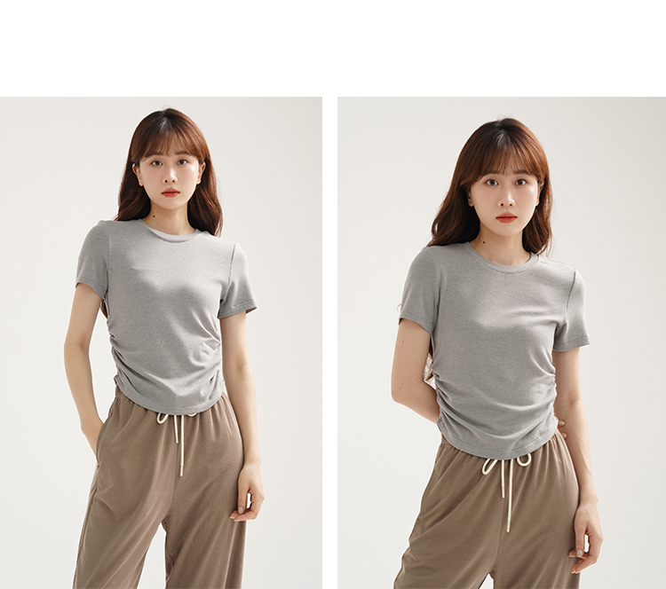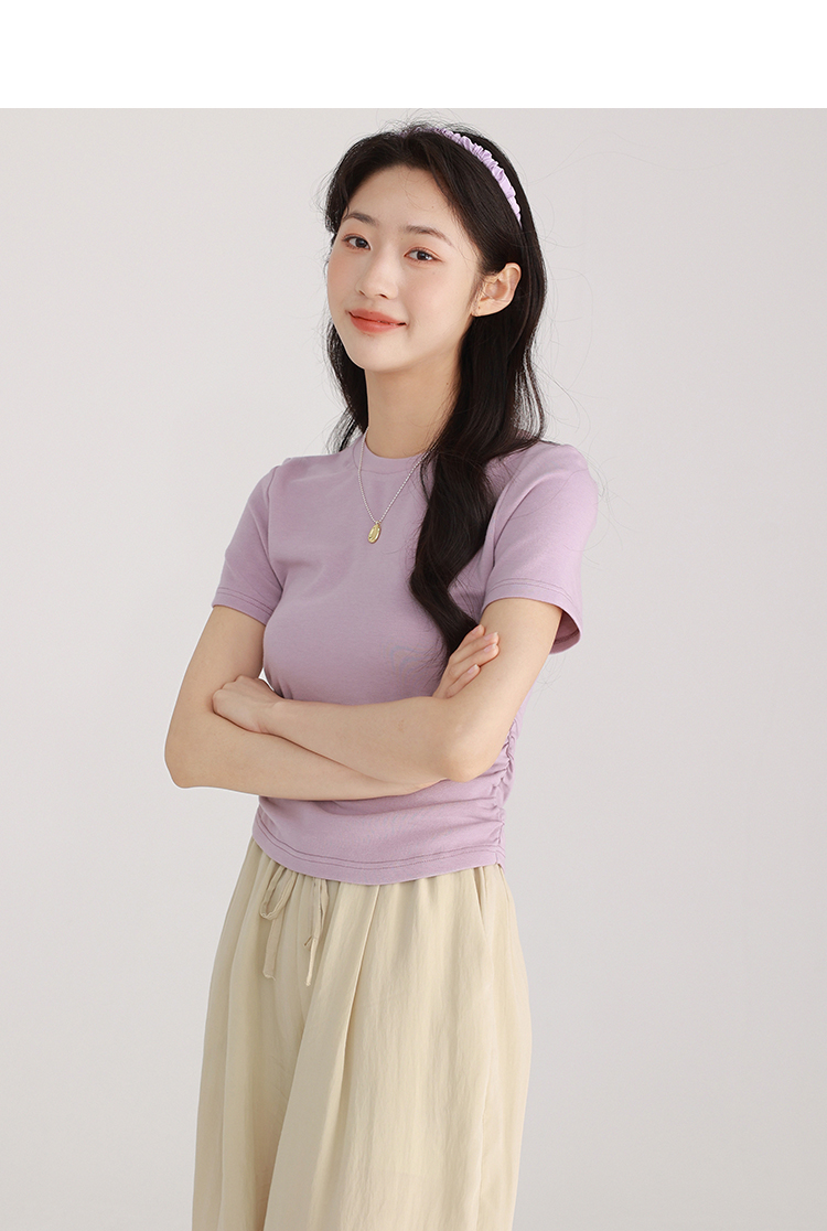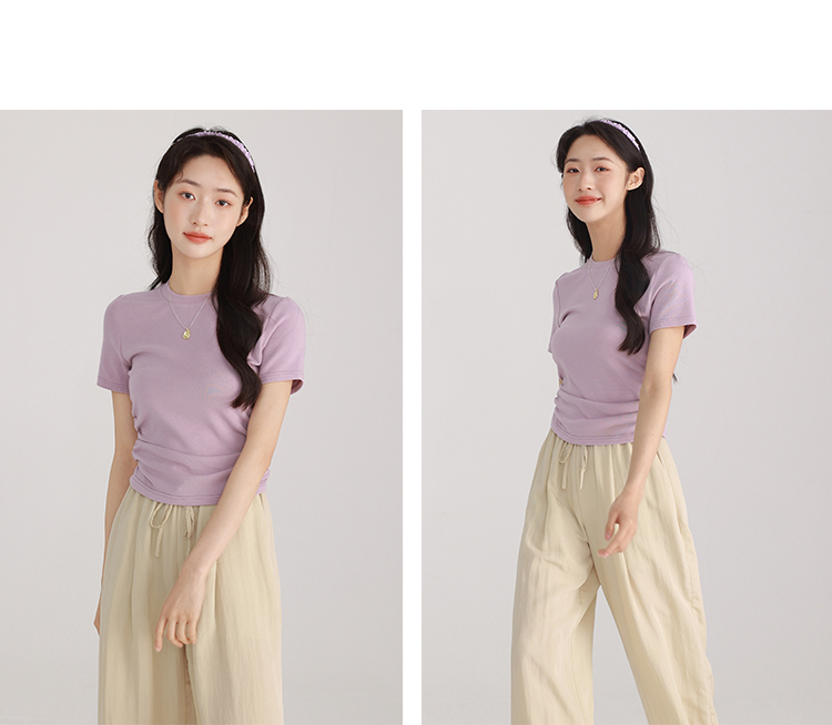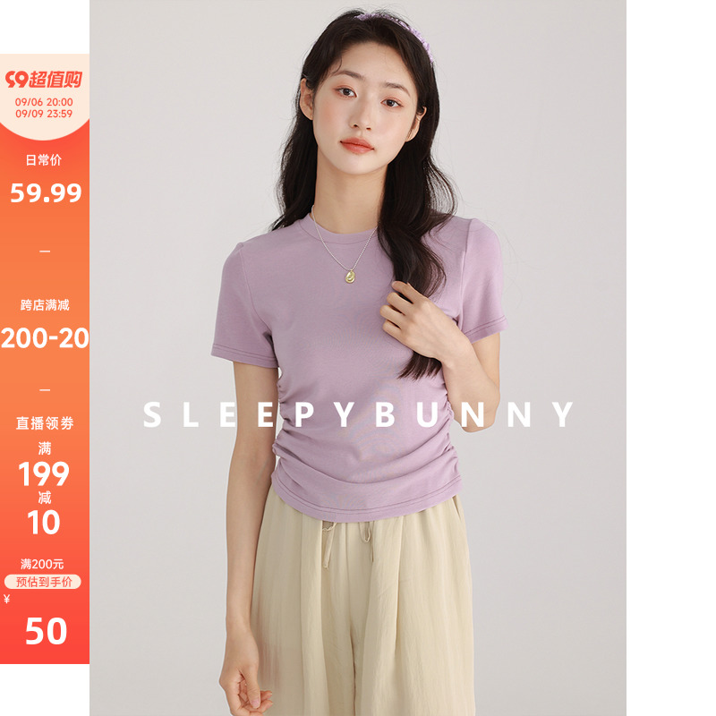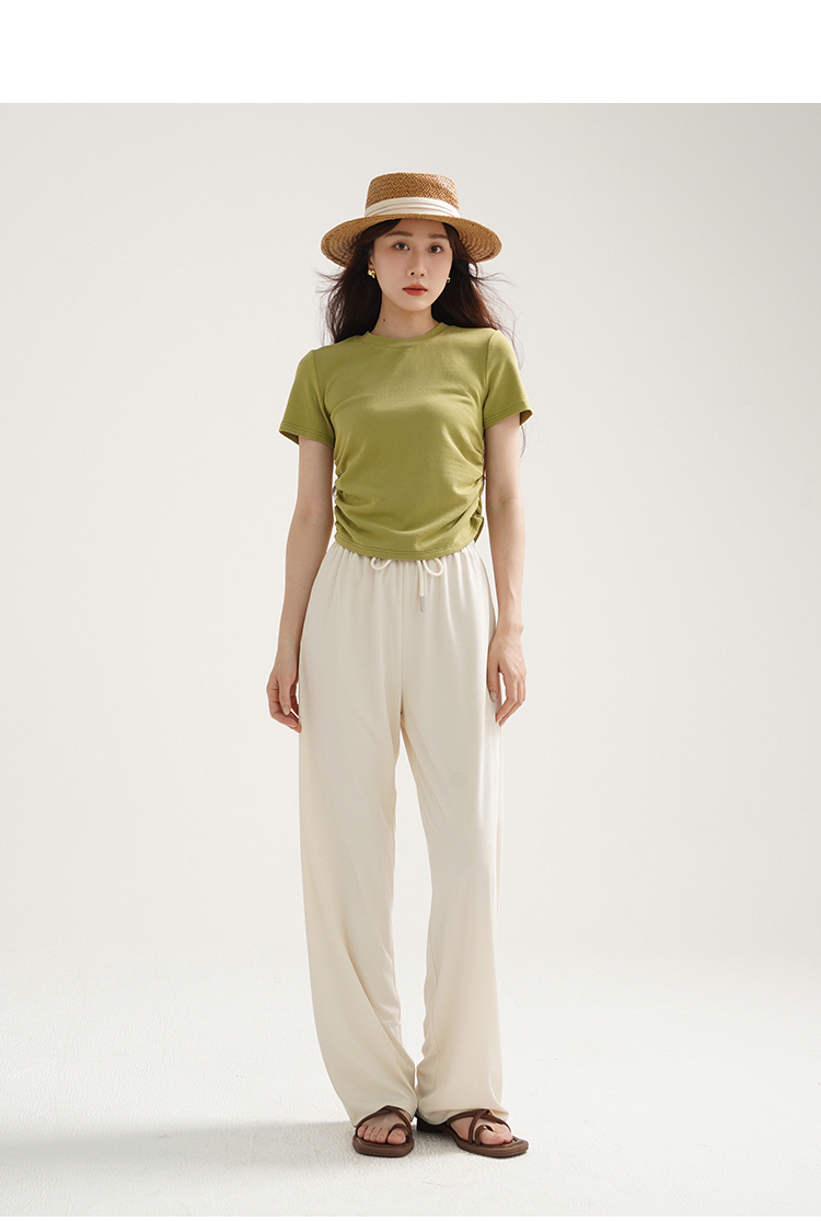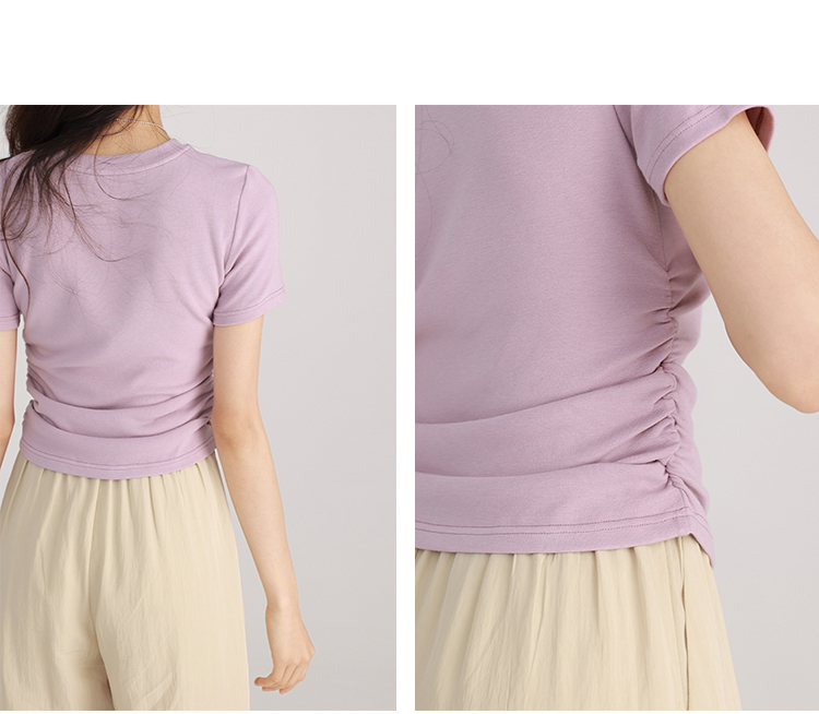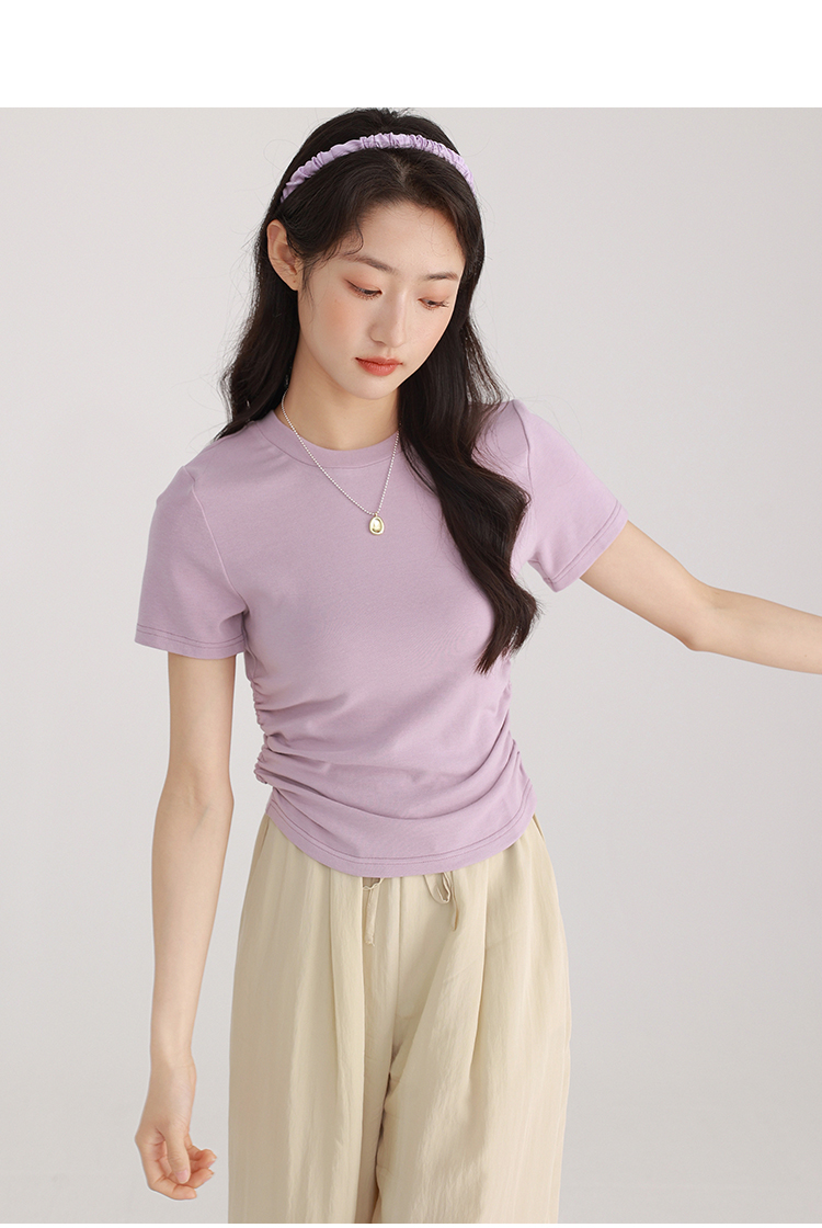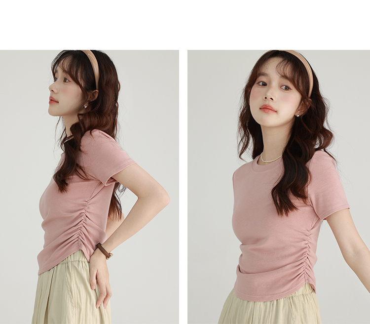 瞌睡兔 圓領正肩短袖T恤女小個子通勤風簡約收腰顯瘦修身短款上衣