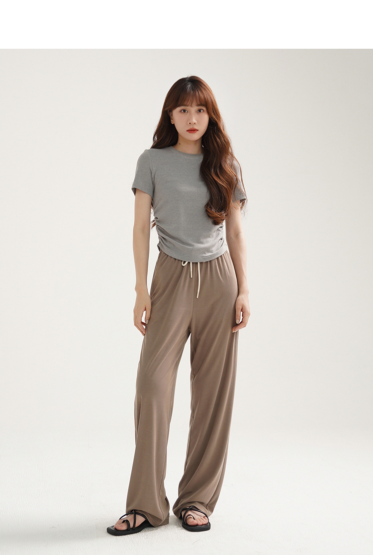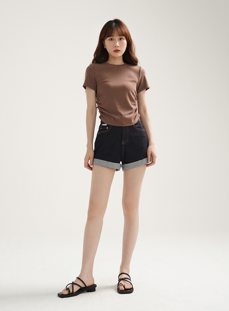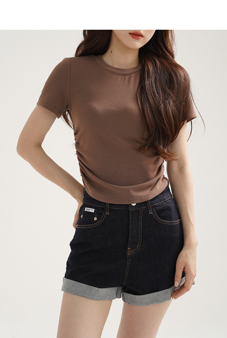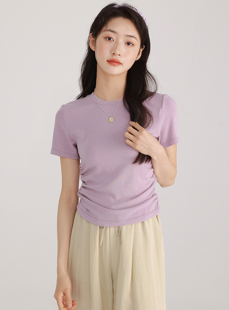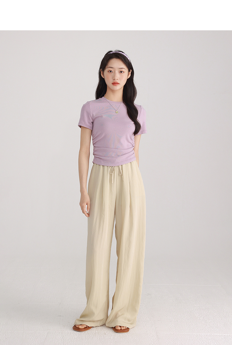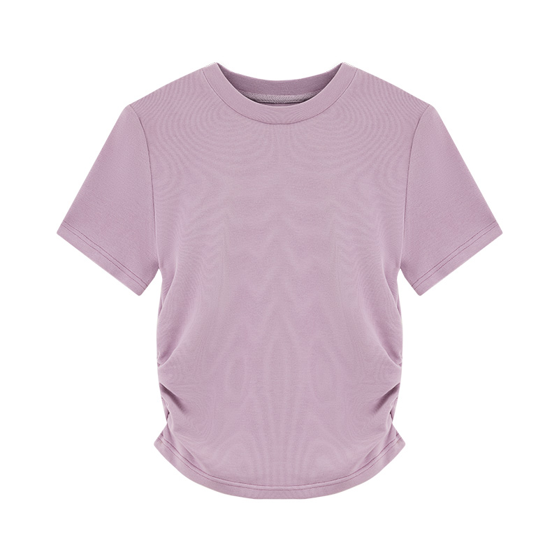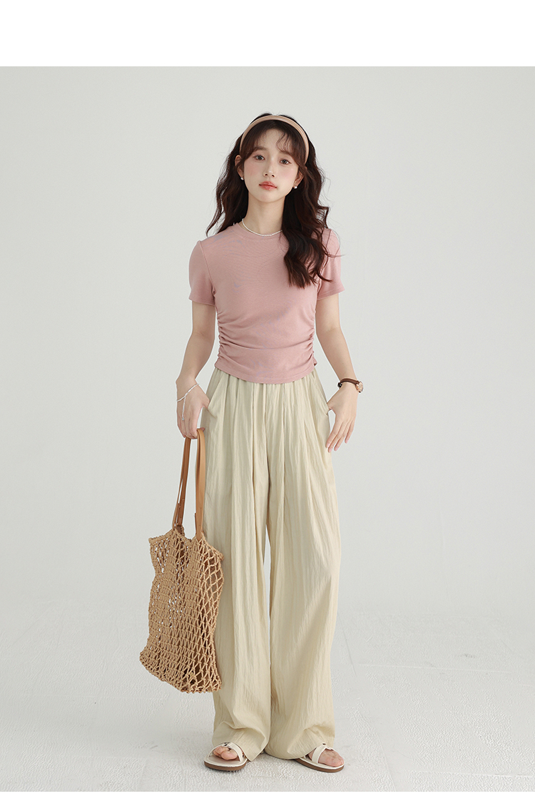 瞌睡兔 圓領正肩短袖T恤女小個子通勤風簡約收腰顯瘦修身短款上衣
