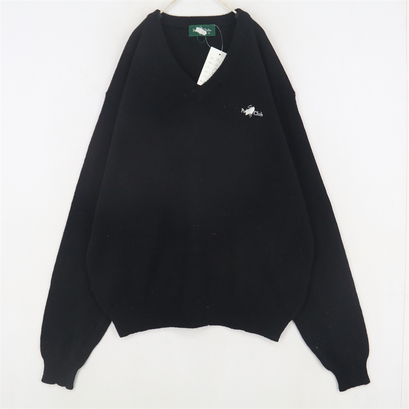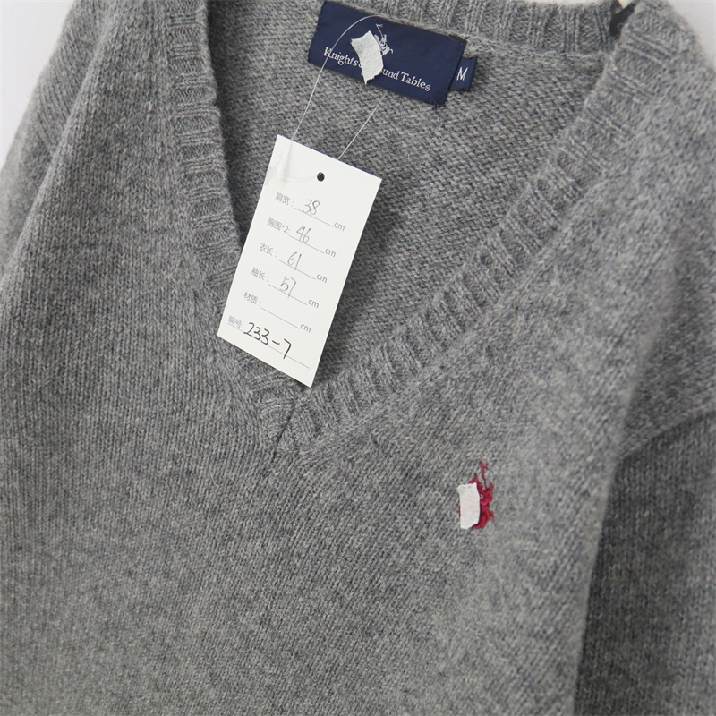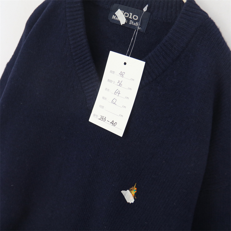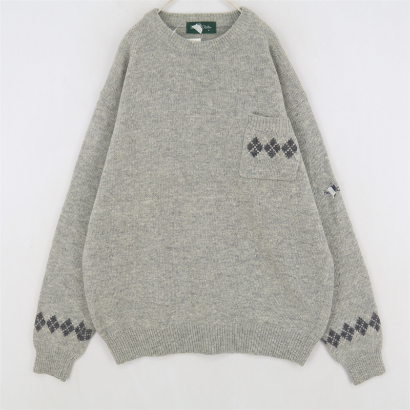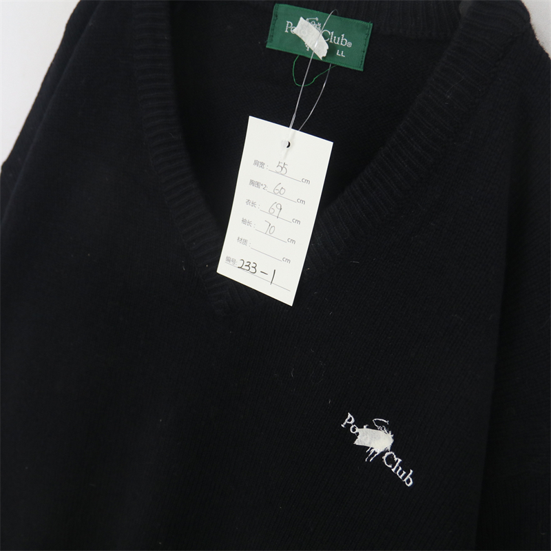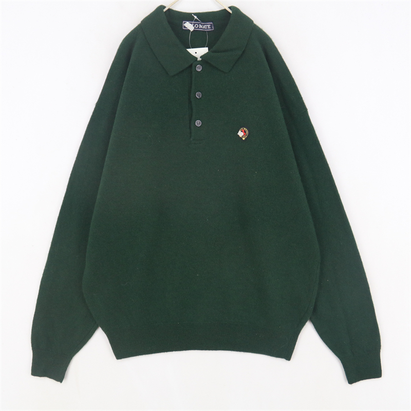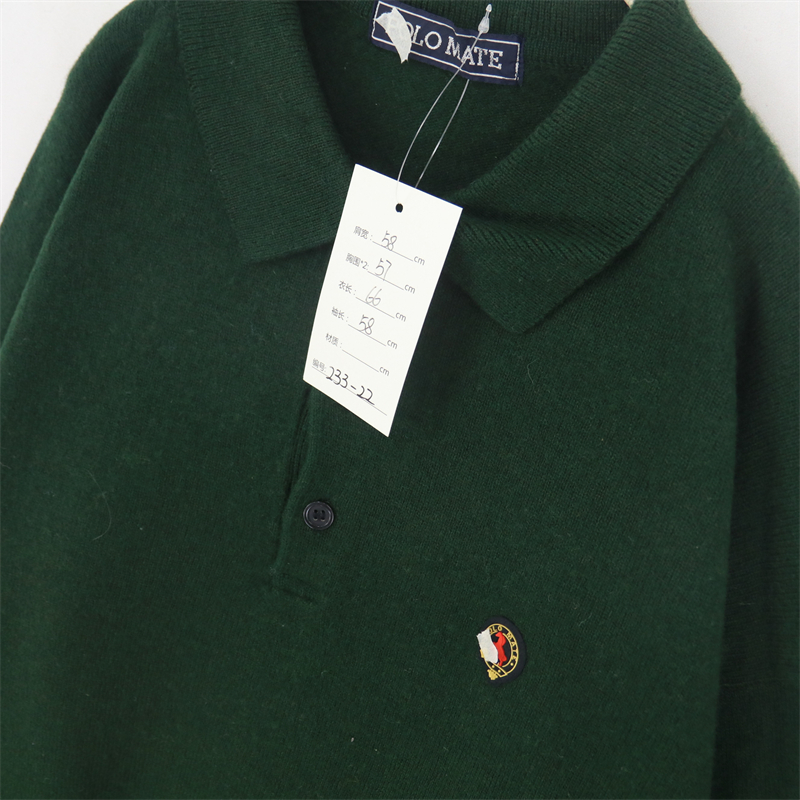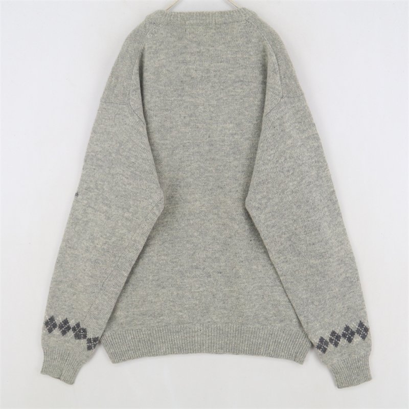 古著毛衣Vintage孤品復古純色格子簡約百搭Polo刺繡針織羊毛233