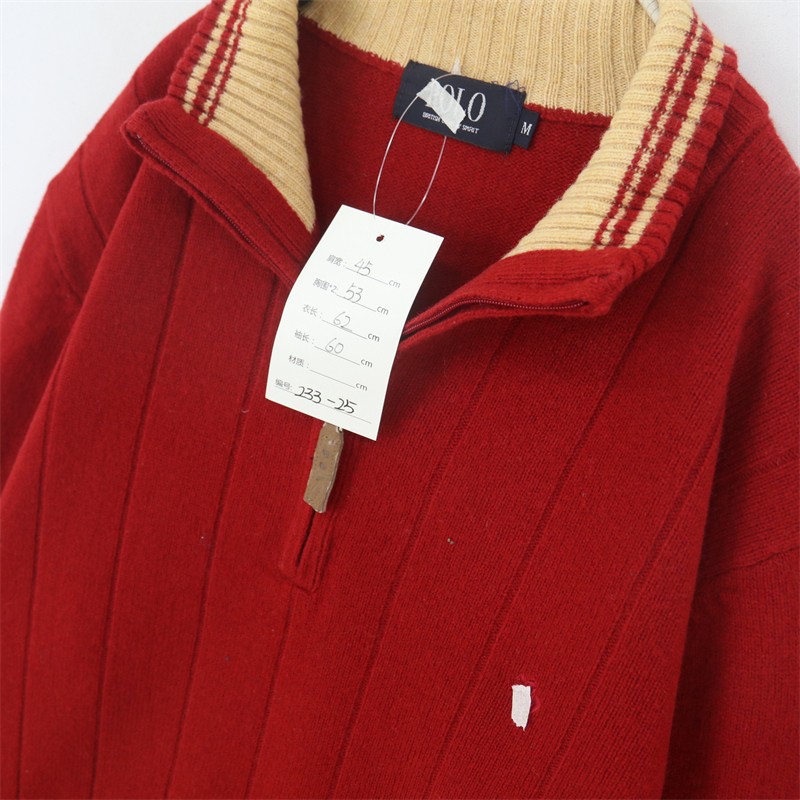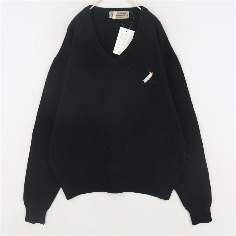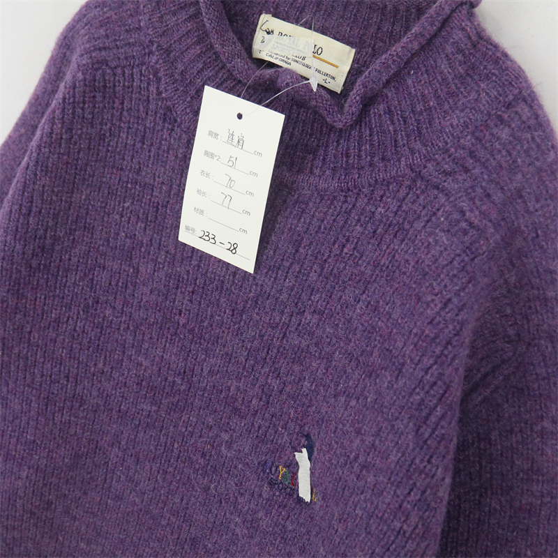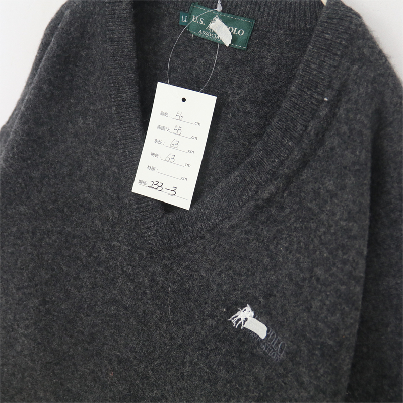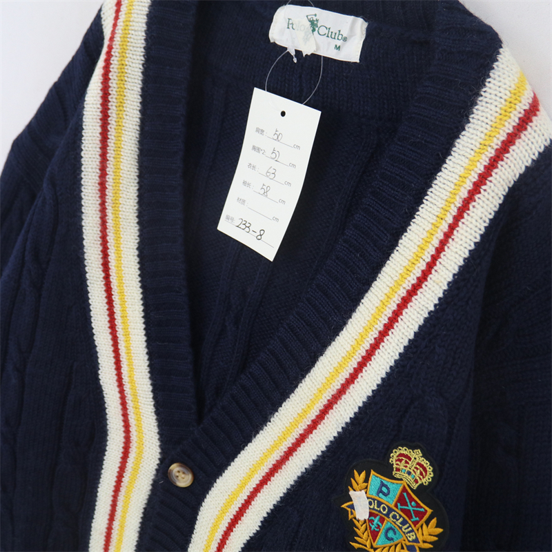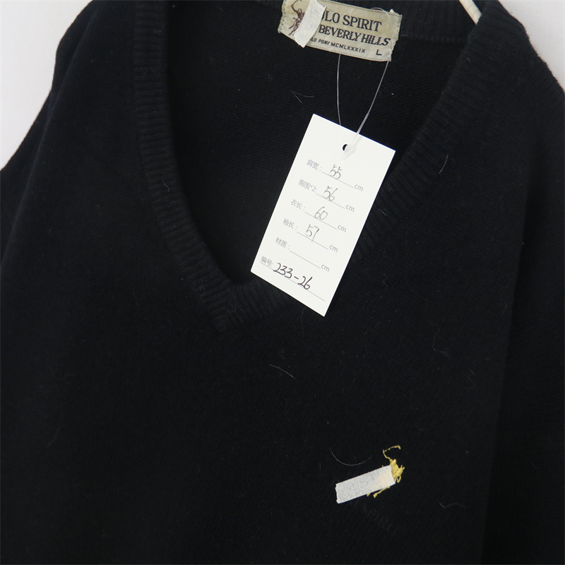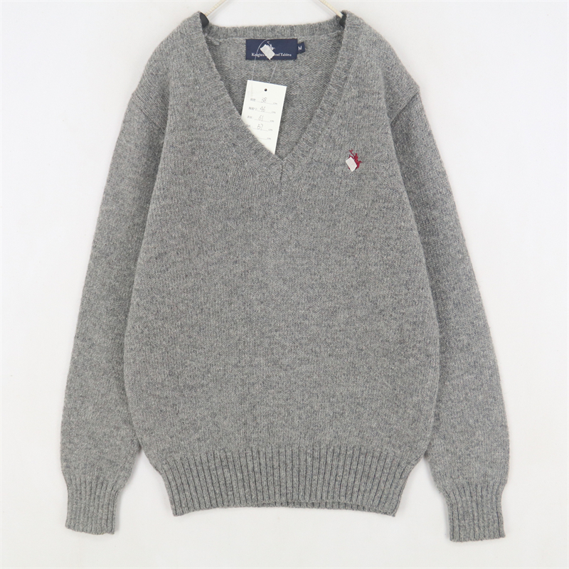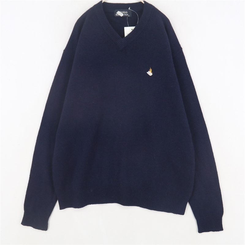 古著毛衣Vintage孤品復古純色格子簡約百搭Polo刺繡針織羊毛233