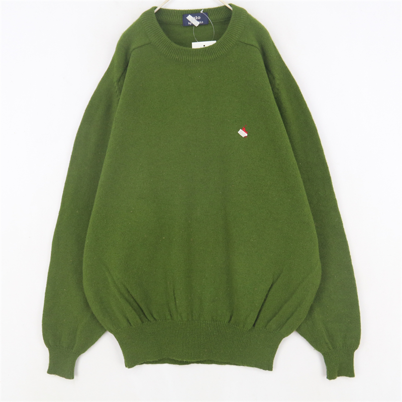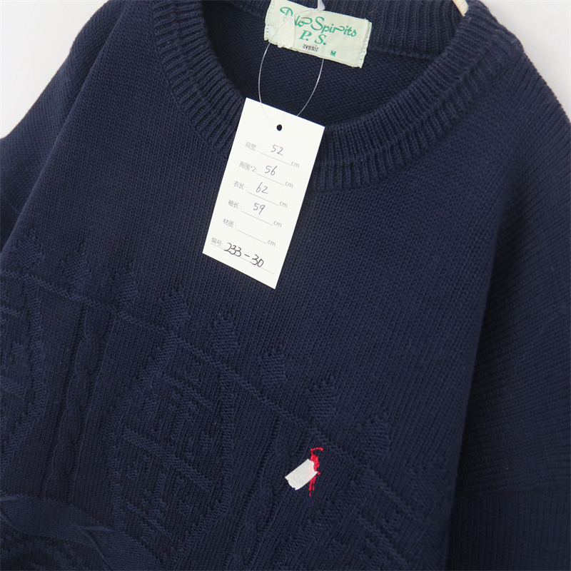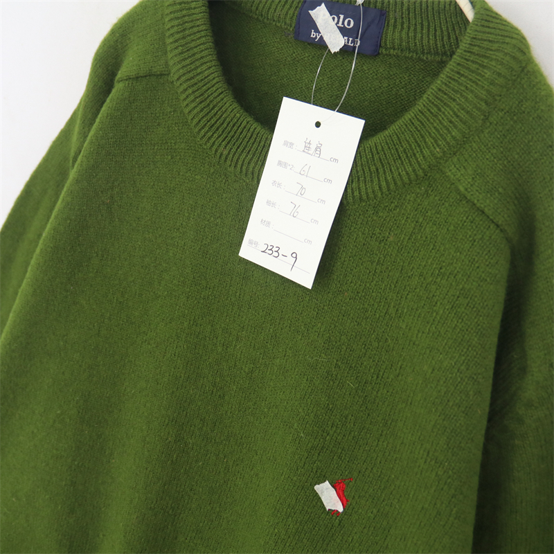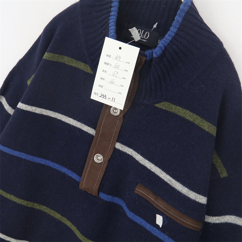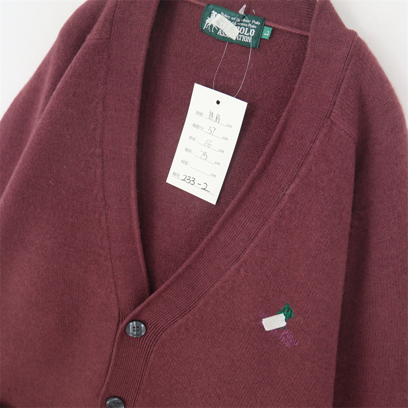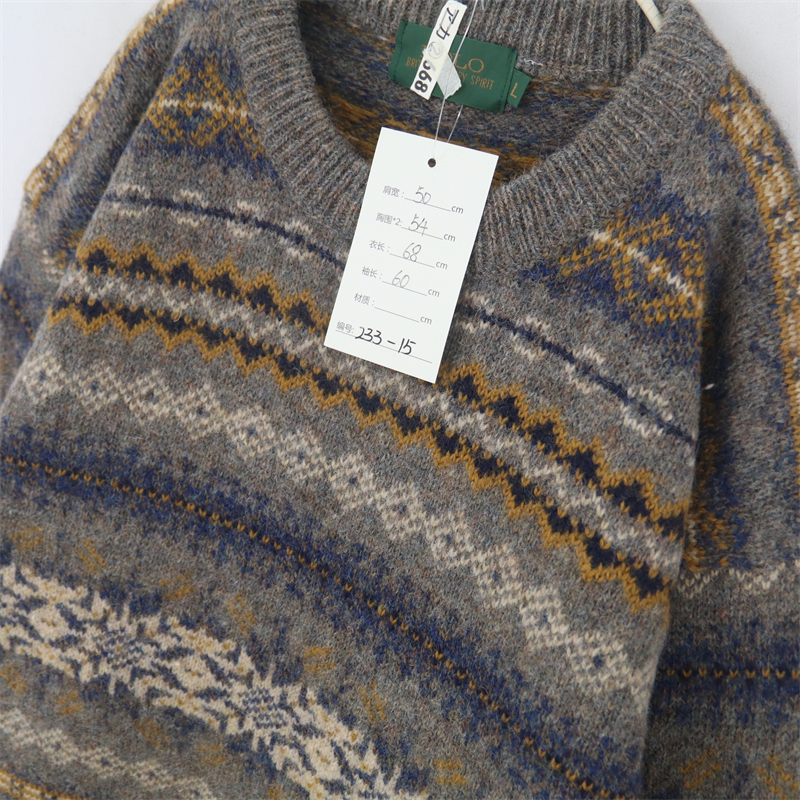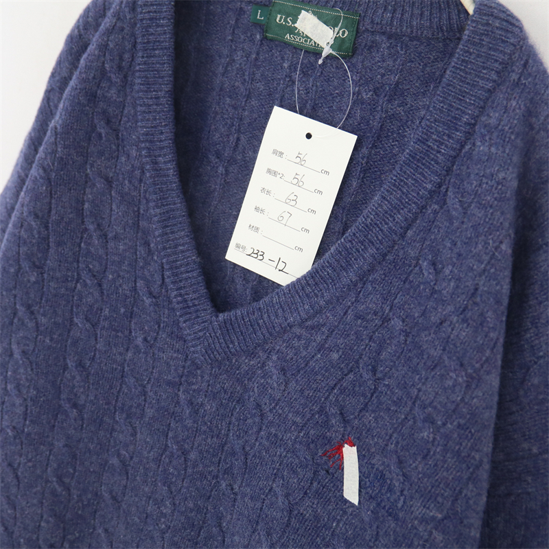 古著毛衣Vintage孤品復古純色格子簡約百搭Polo刺繡針織羊毛233