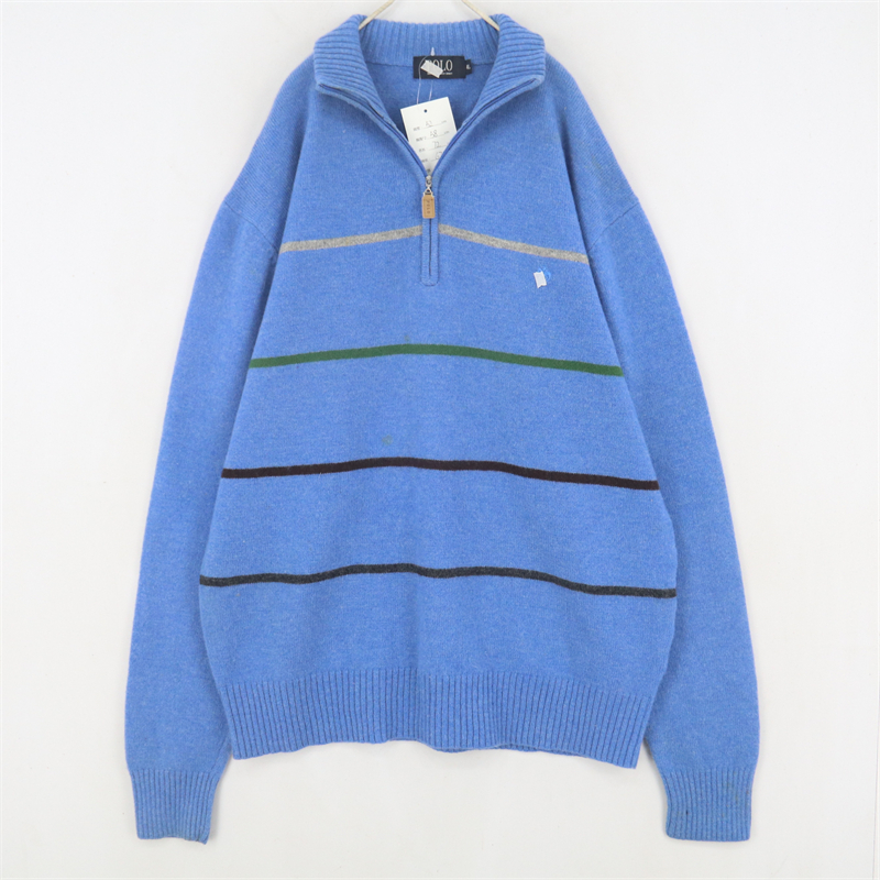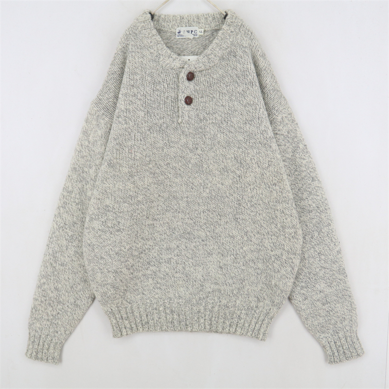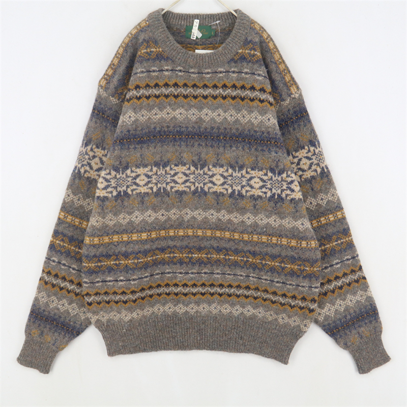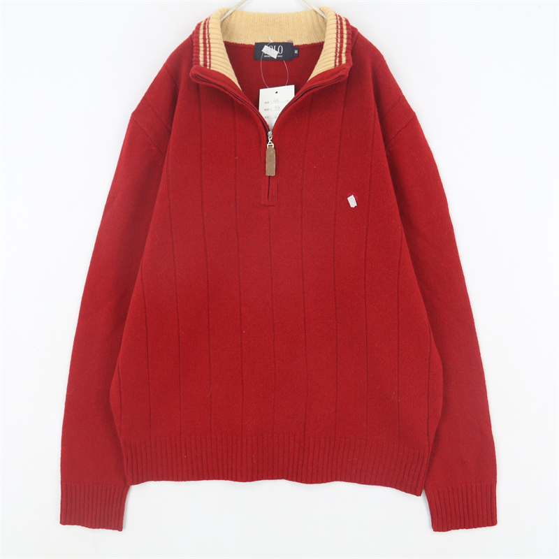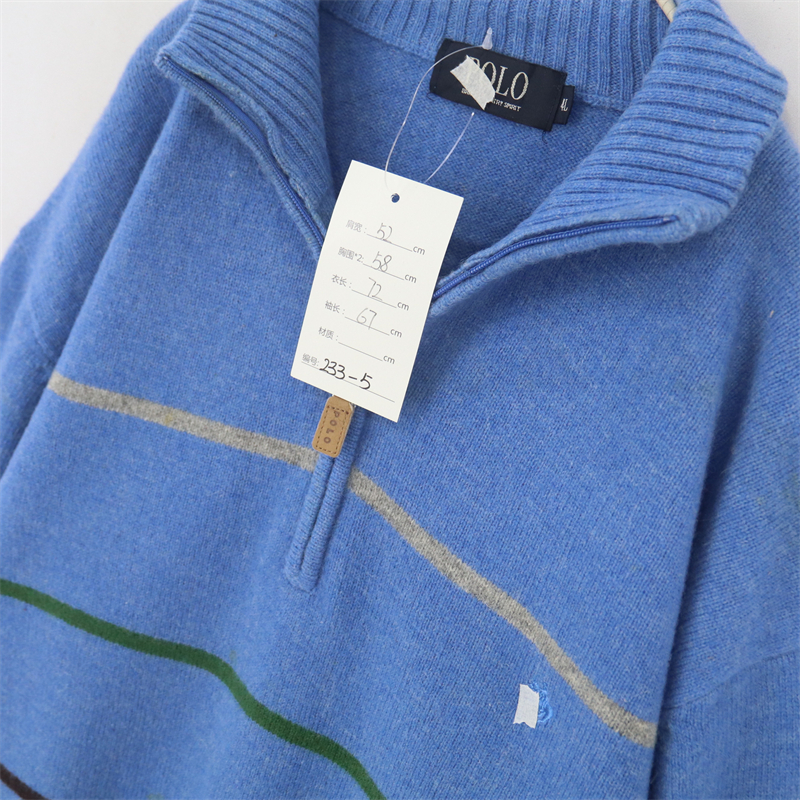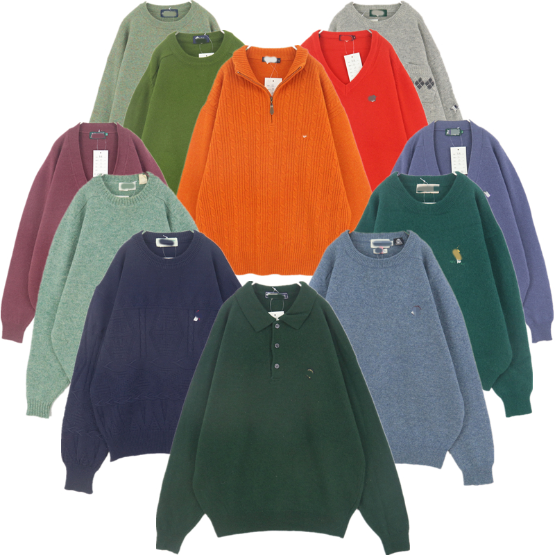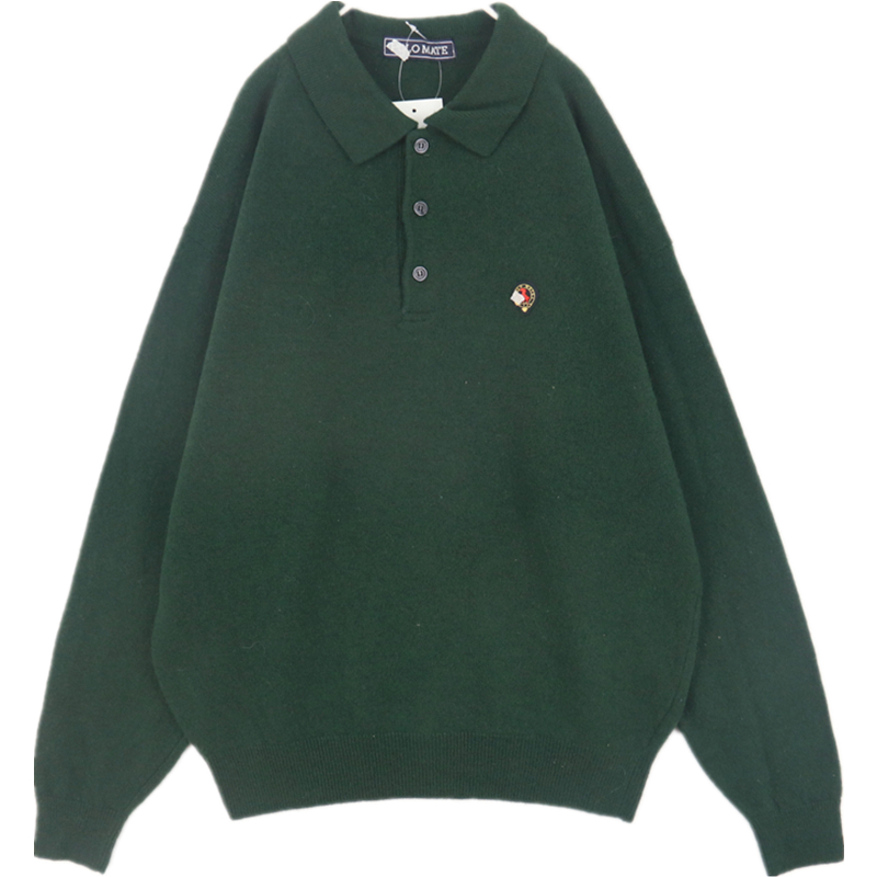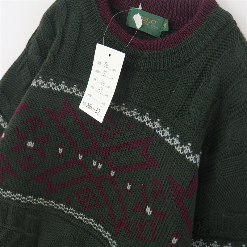 古著毛衣Vintage孤品復古純色格子簡約百搭Polo刺繡針織羊毛233