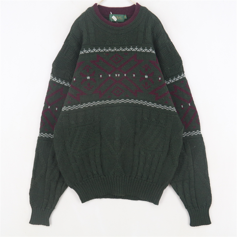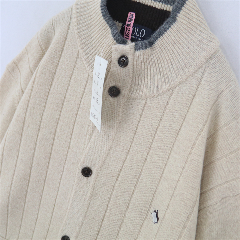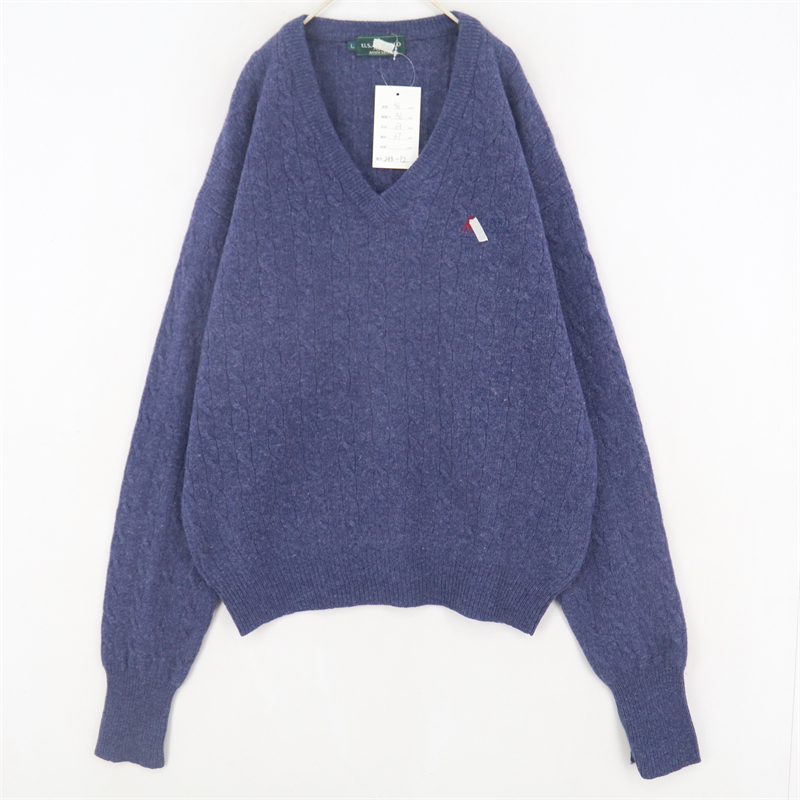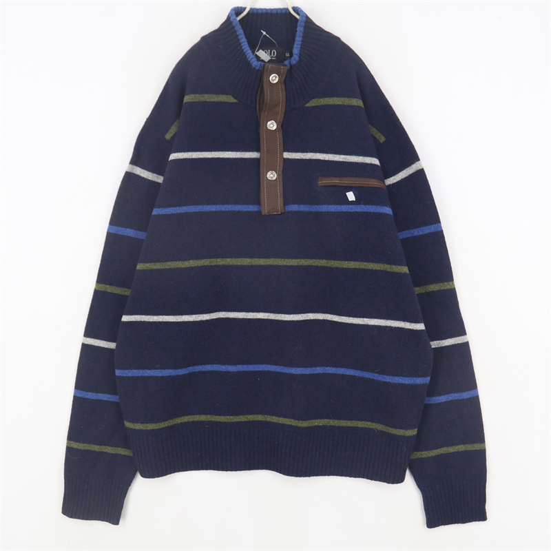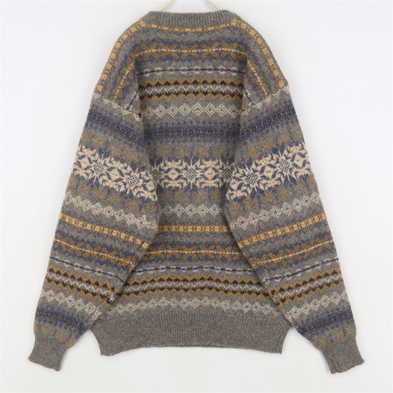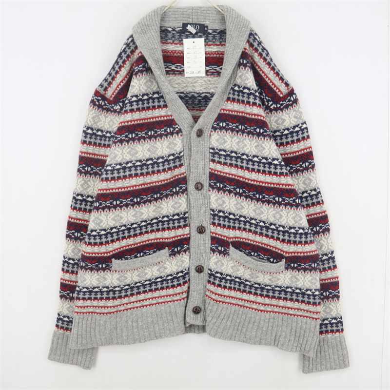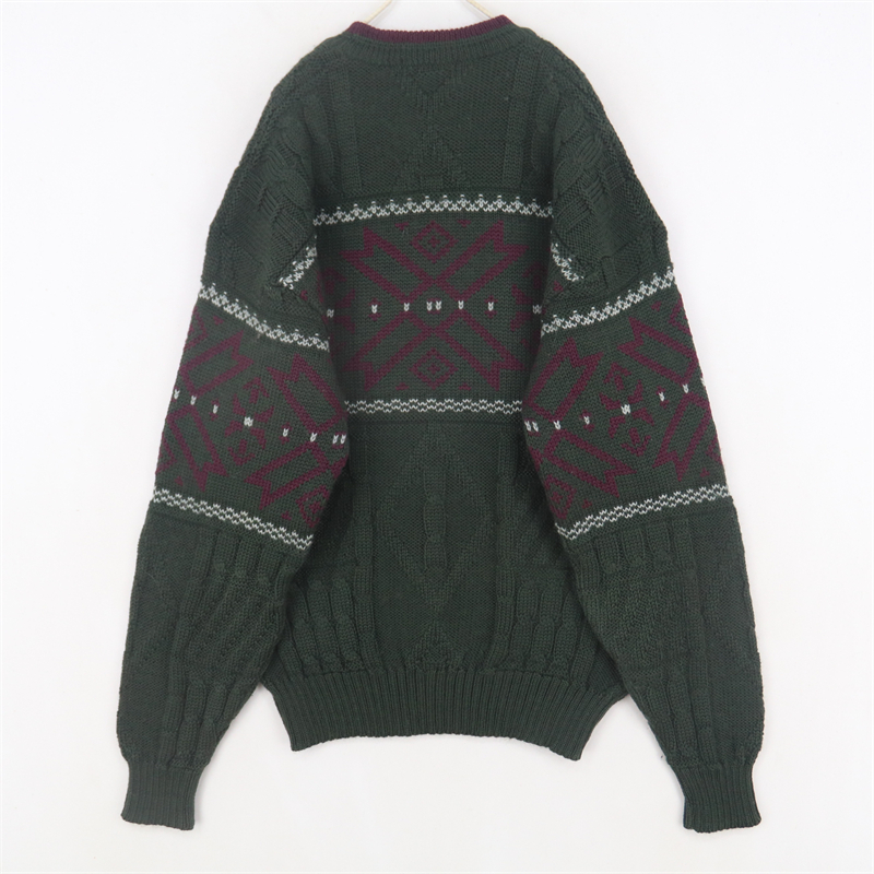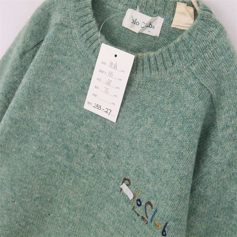古著毛衣Vintage孤品復古純色格子簡約百搭Polo刺繡針織羊毛233