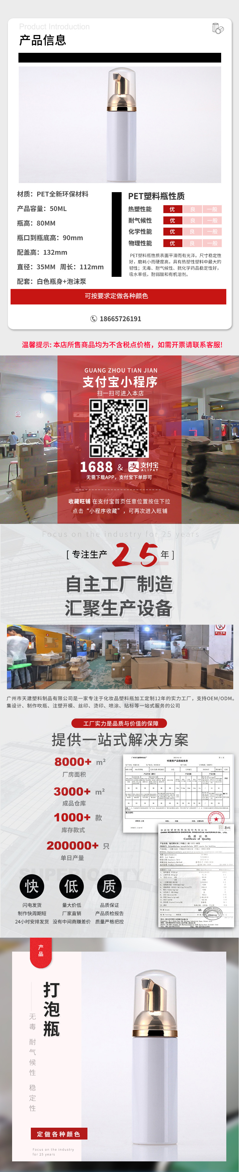 厂家供应50mlPET白色泡沫瓶子 电镀泡沫泵 洗面奶摩丝瓶