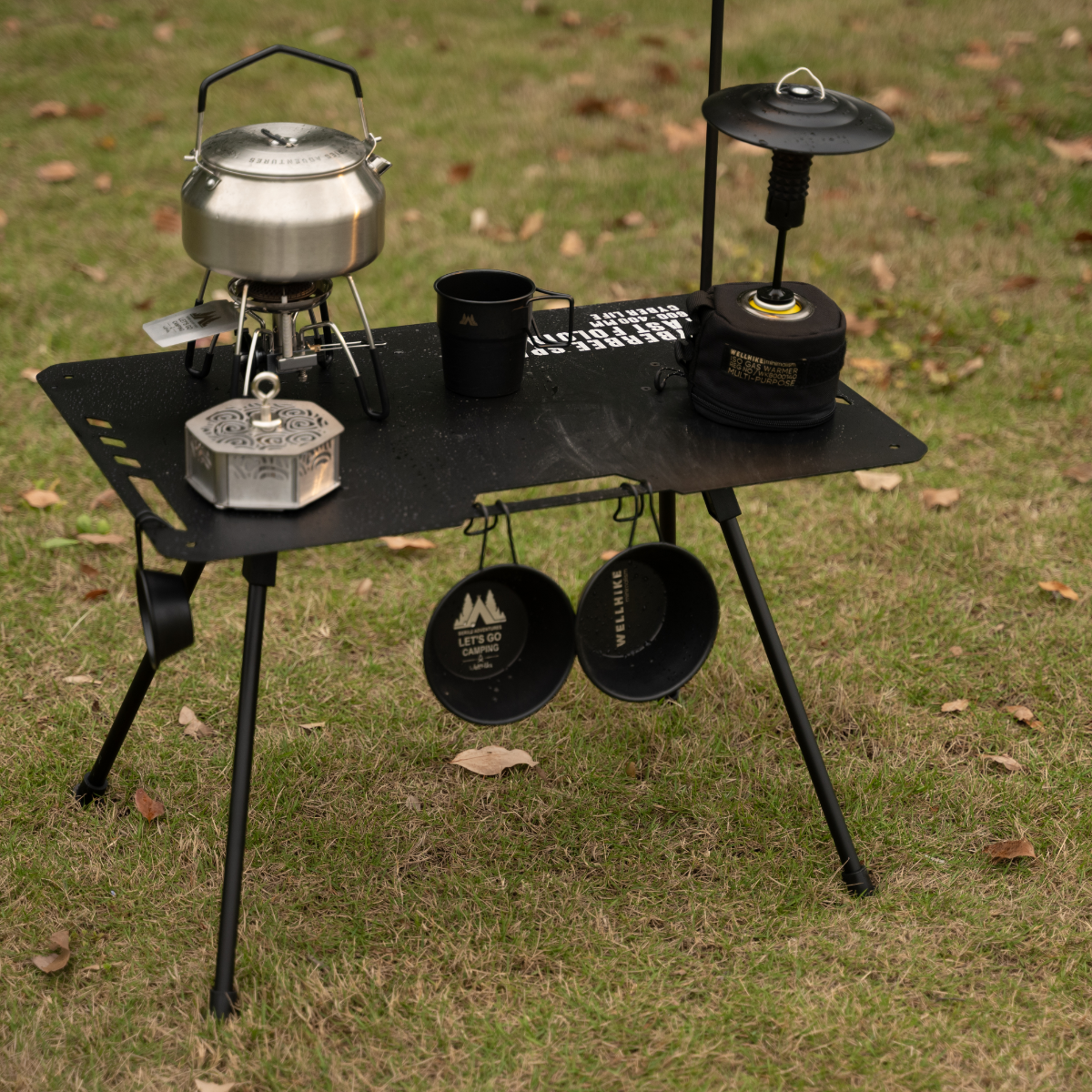 戶外戰術桌帶燈架軍事風可升降摺疊多功能輕量可攜式露營野餐椅子