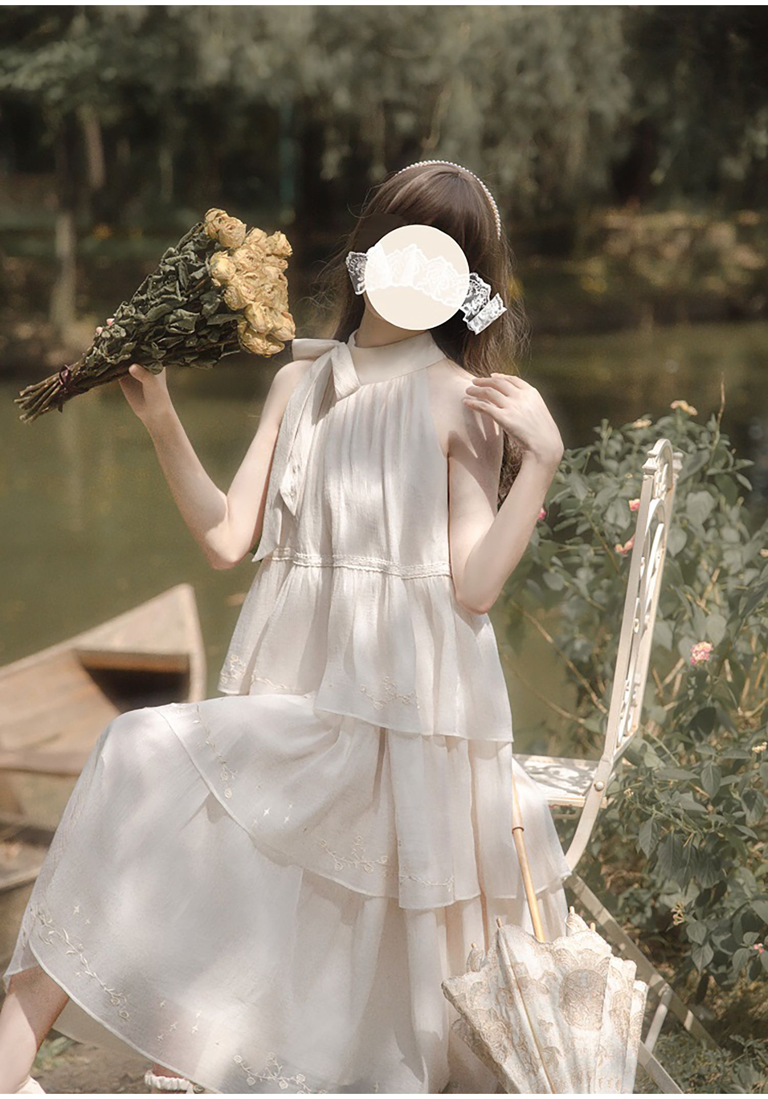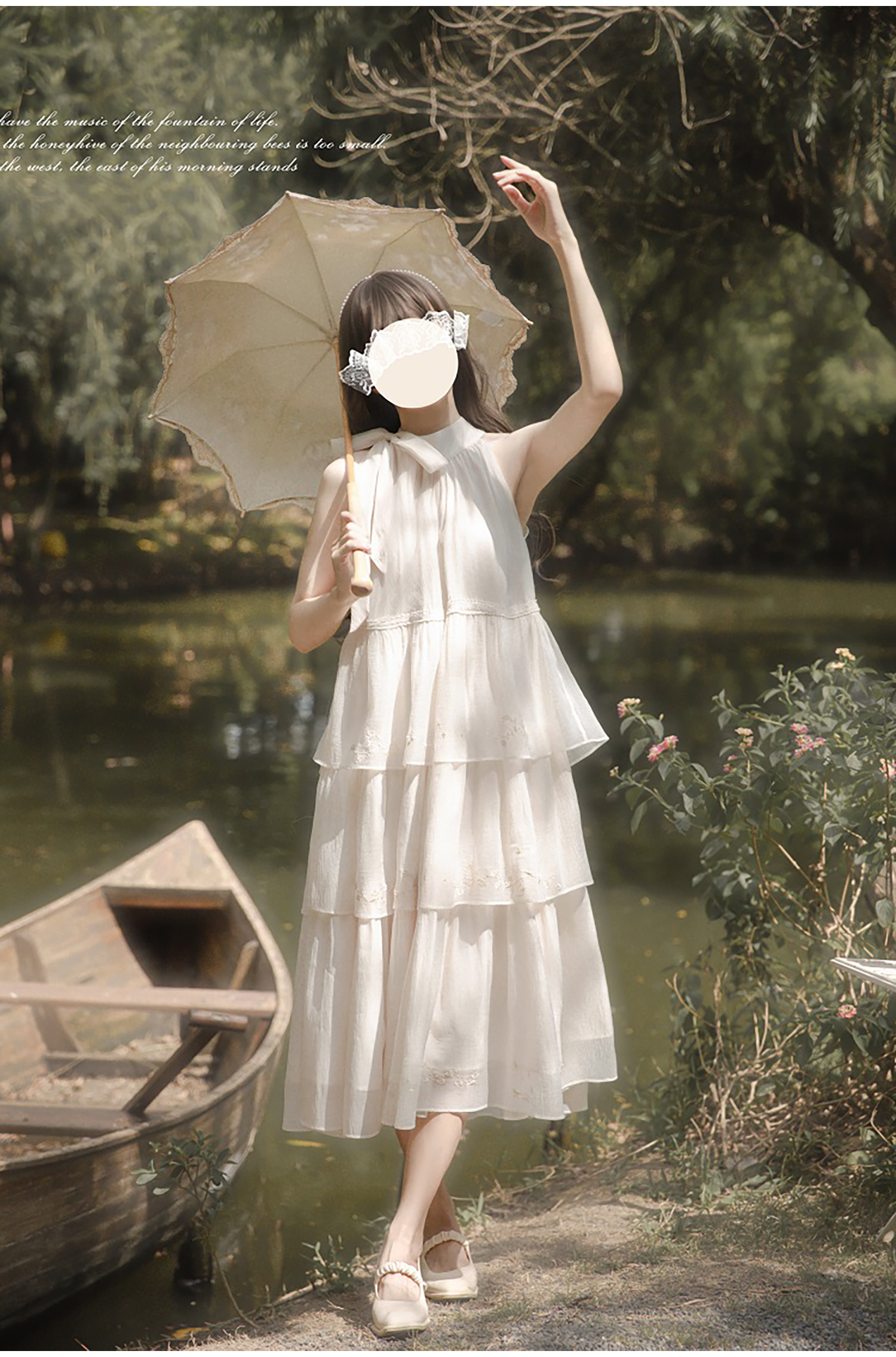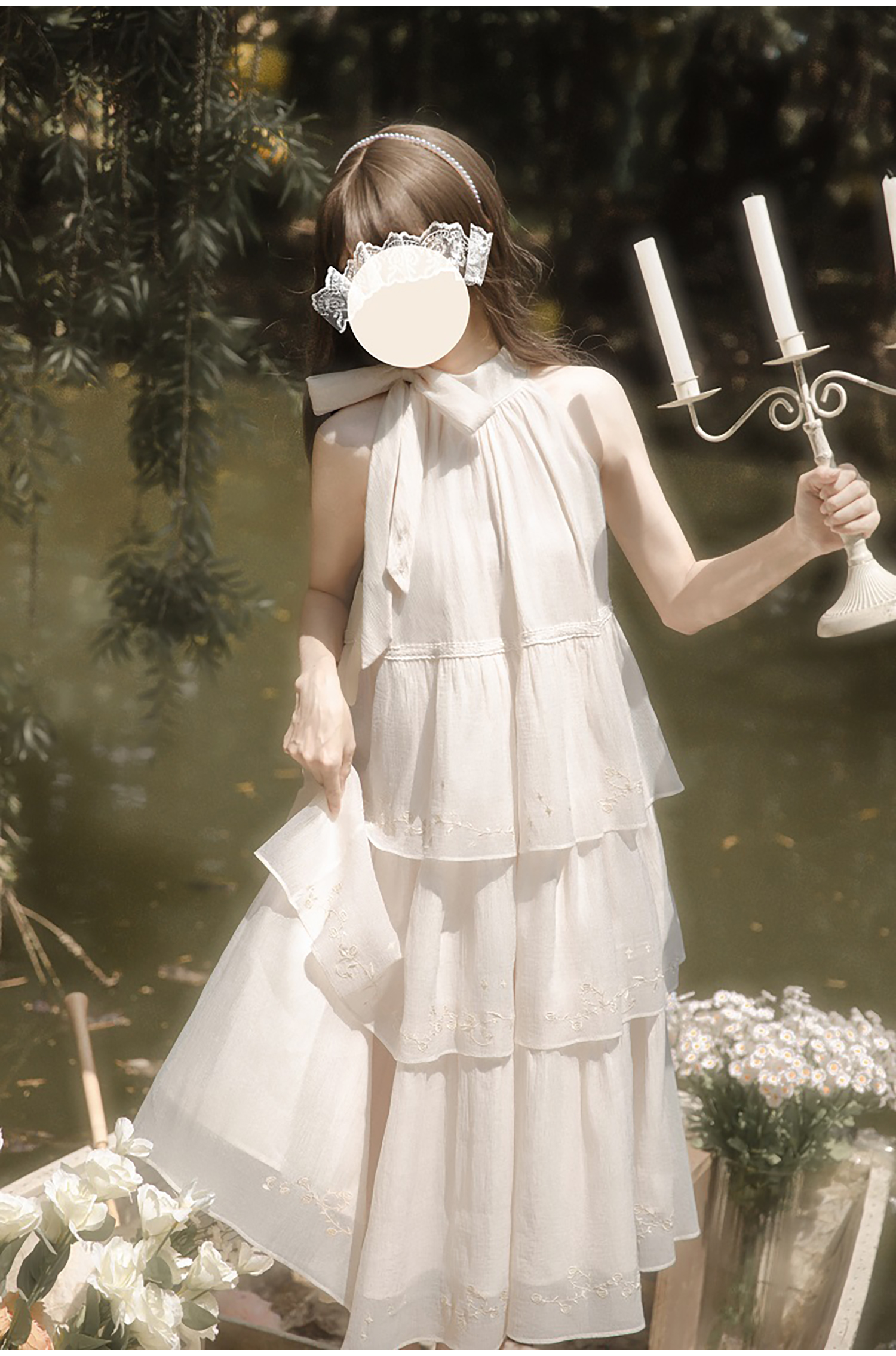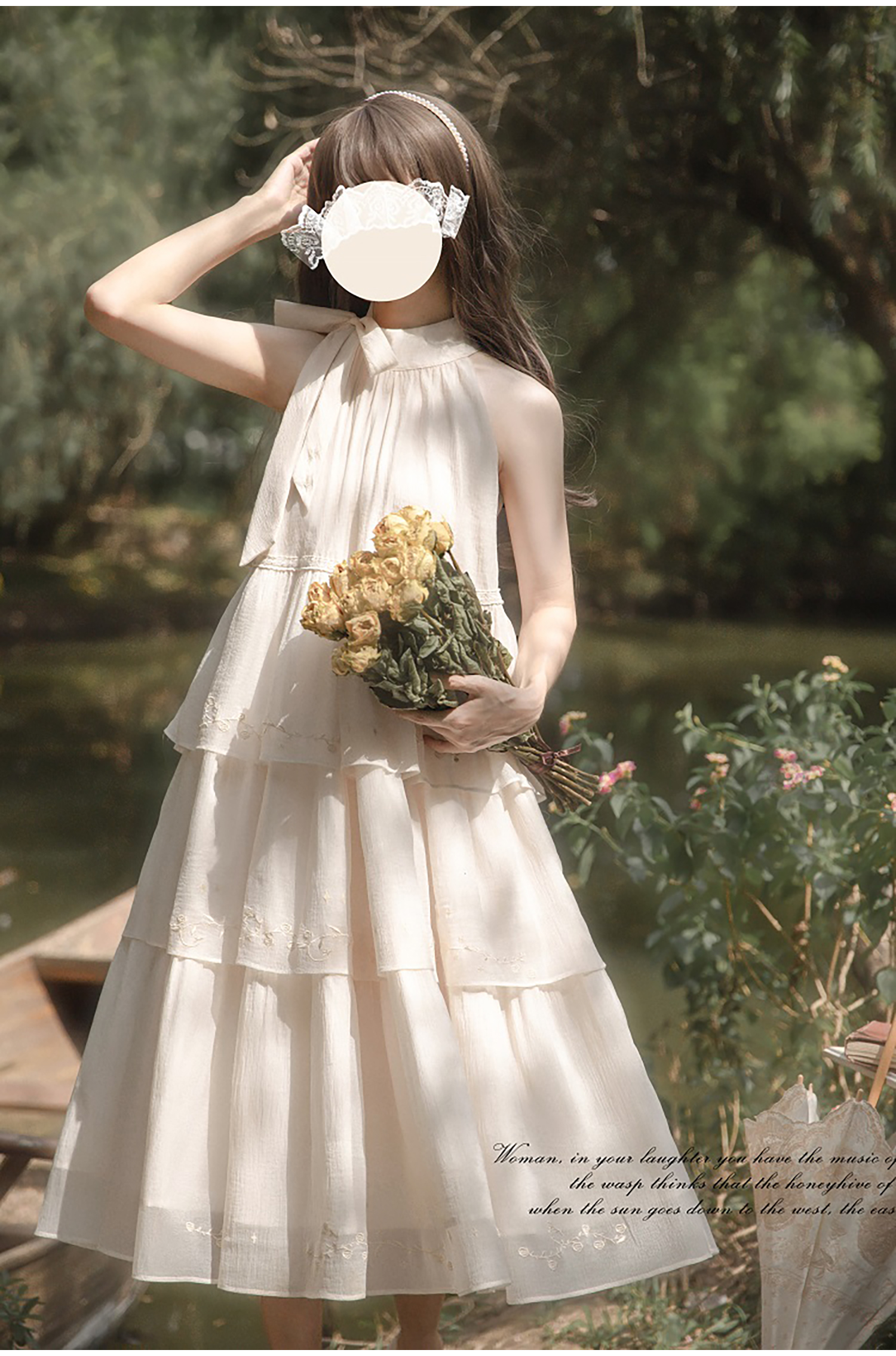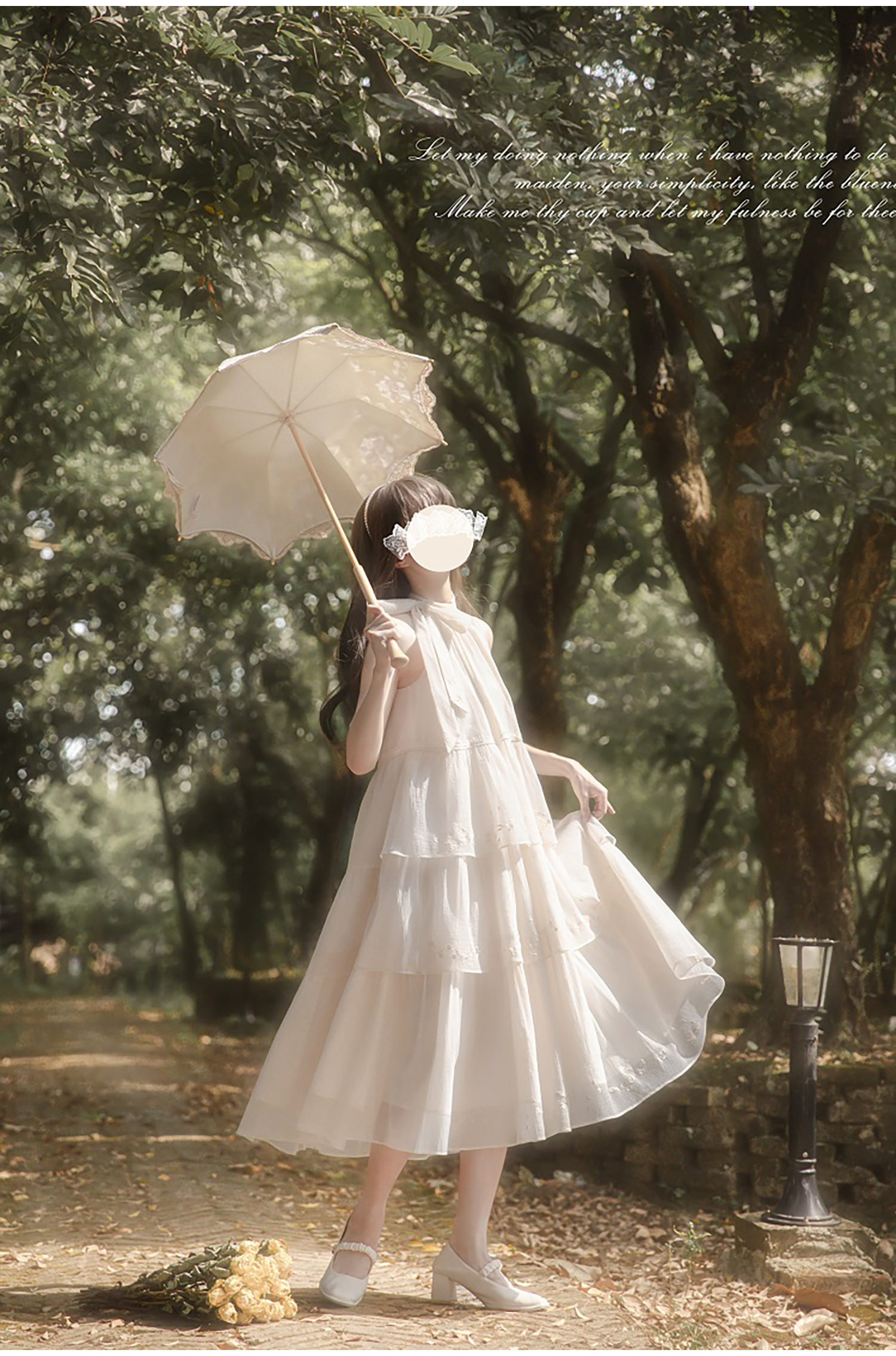 胡桃木JK【月光曲】刺繡掛頸三層蛋糕裙優雅洋裝仙女裙輕lolita