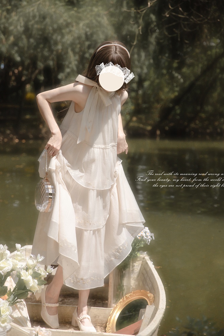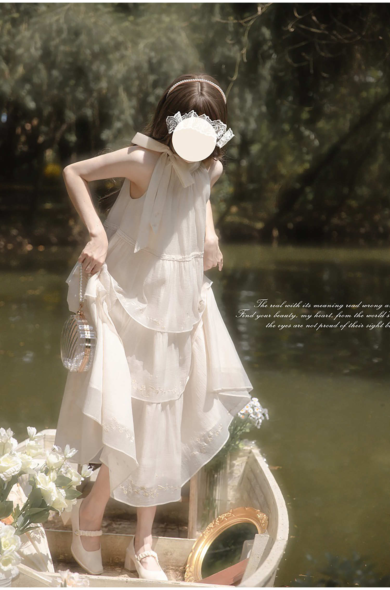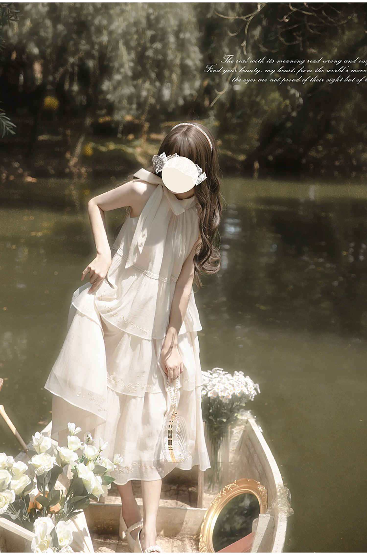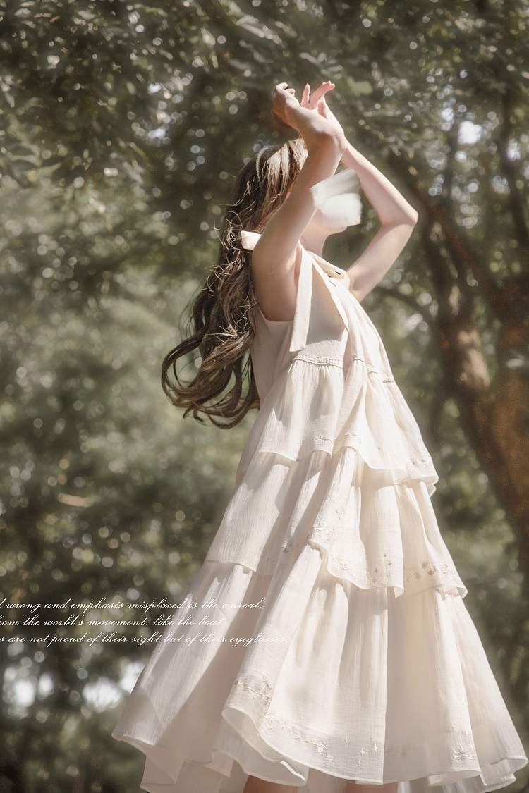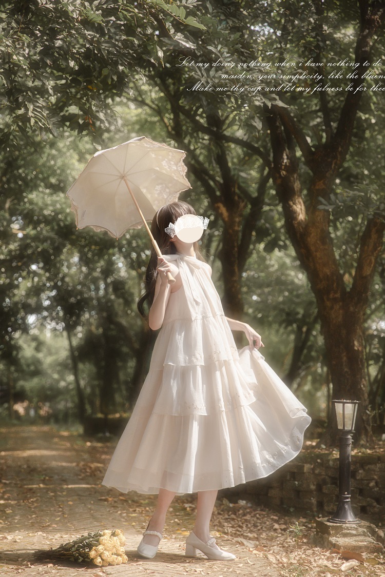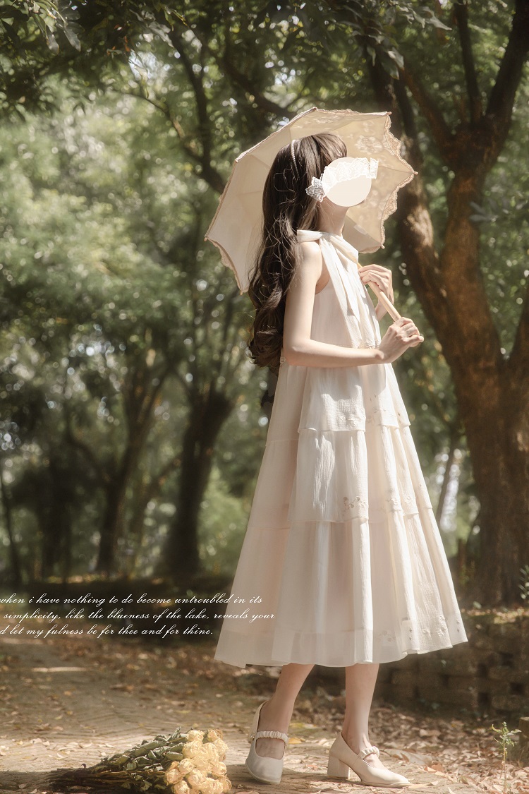 胡桃木JK【月光曲】刺繡掛頸三層蛋糕裙優雅洋裝仙女裙輕lolita