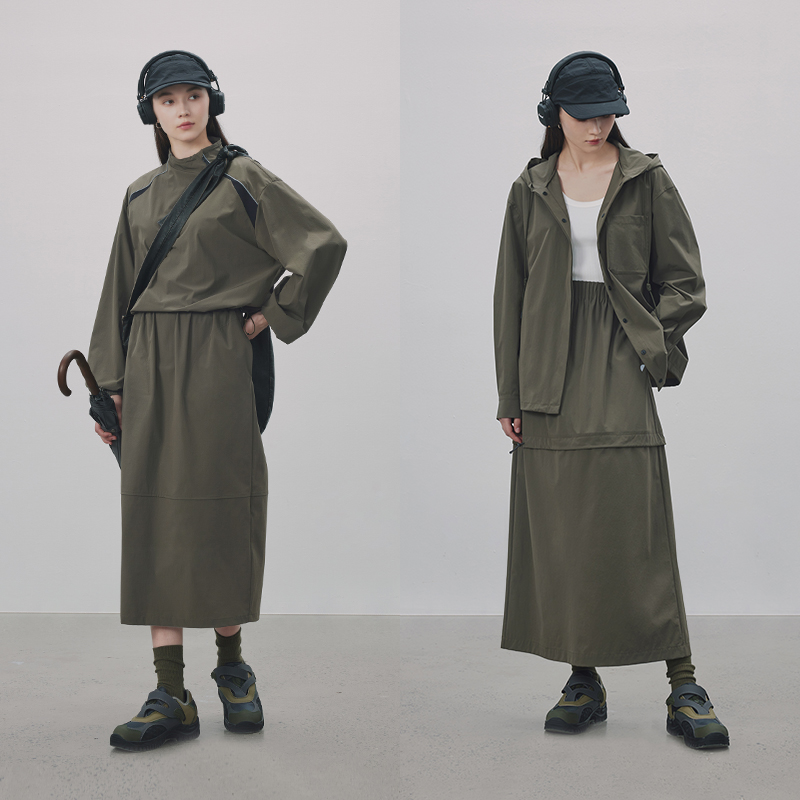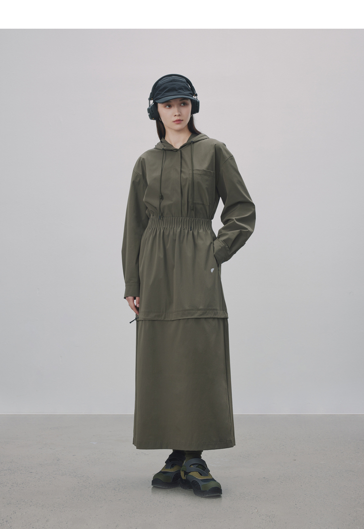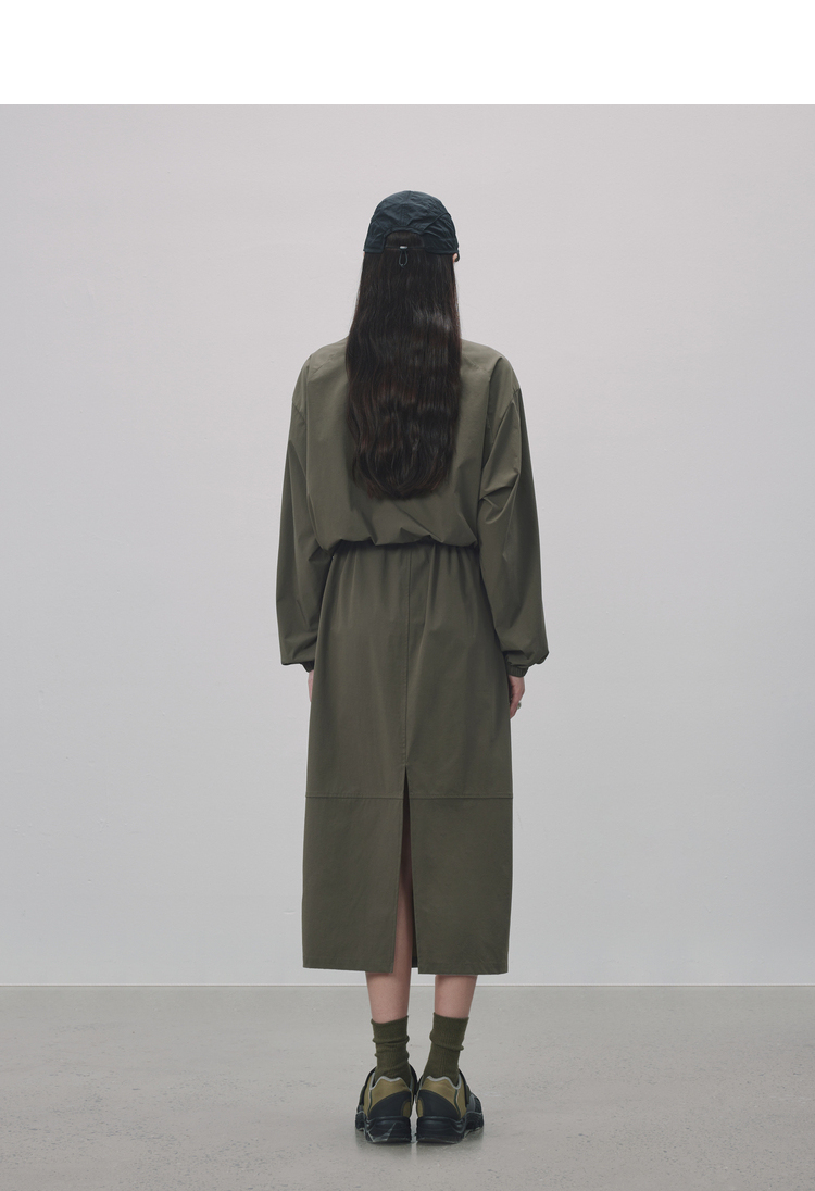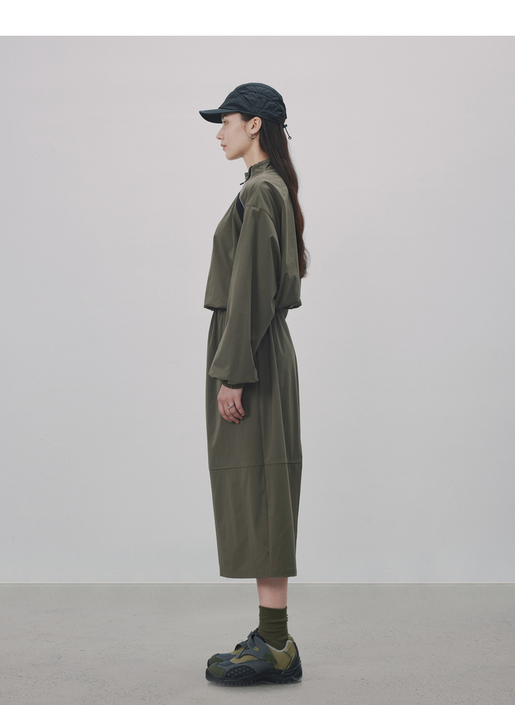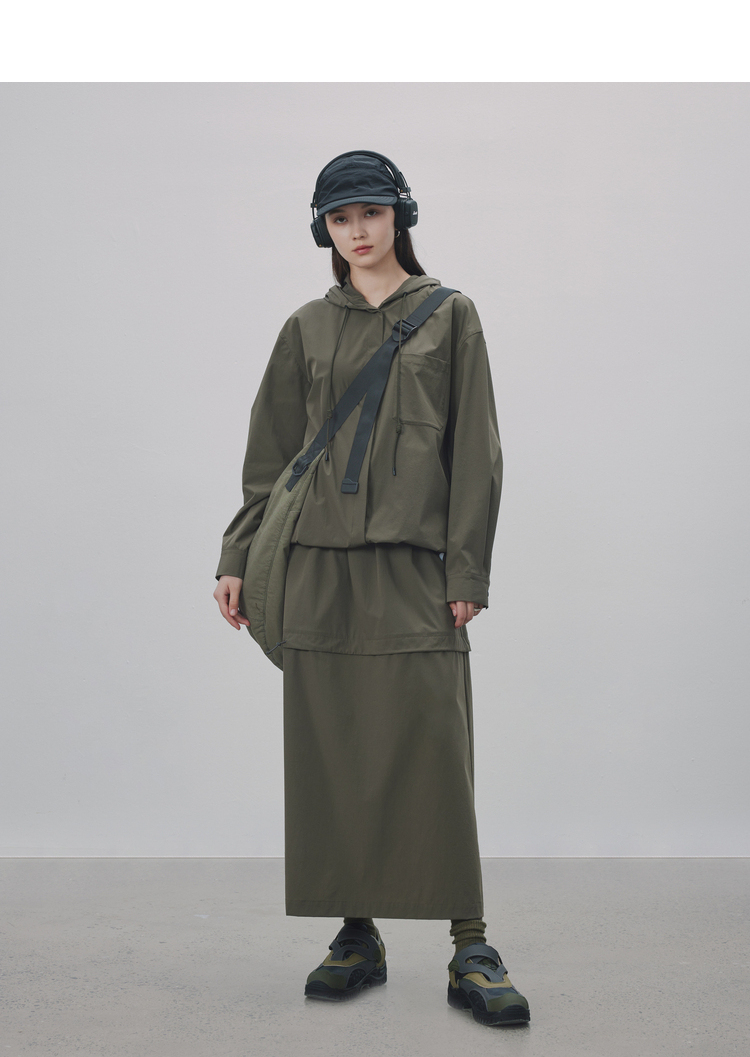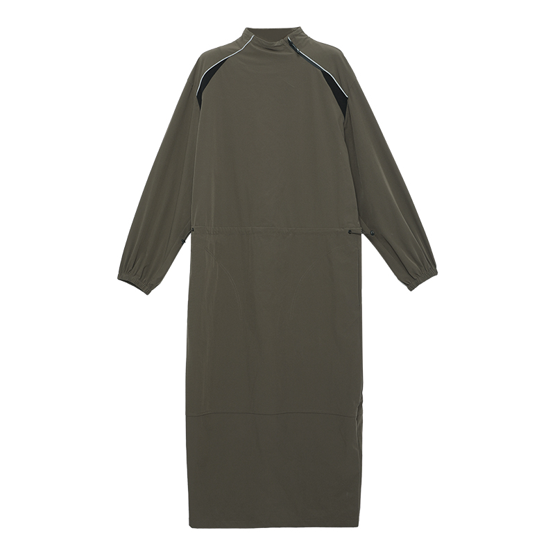 半圓原創設計女裝2023早秋季新拼接立領直筒小眾高級感衛衣洋裝