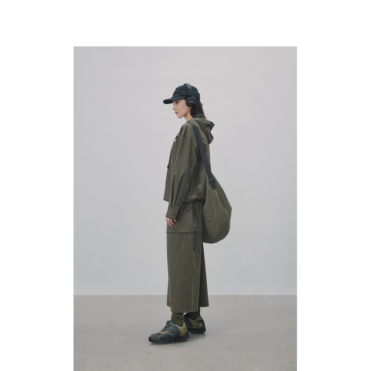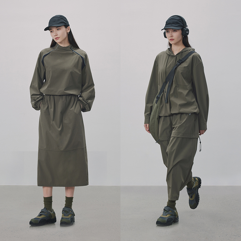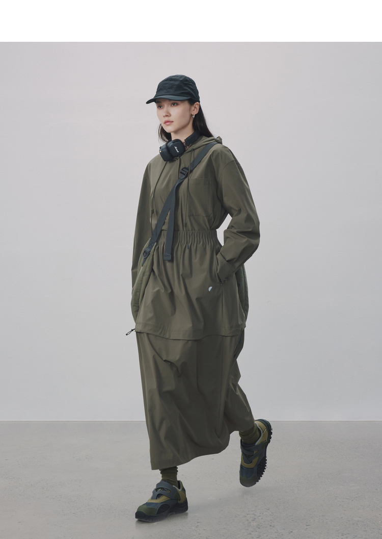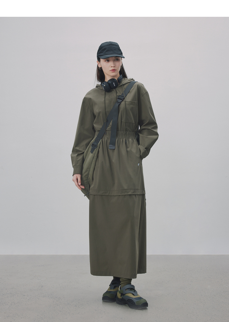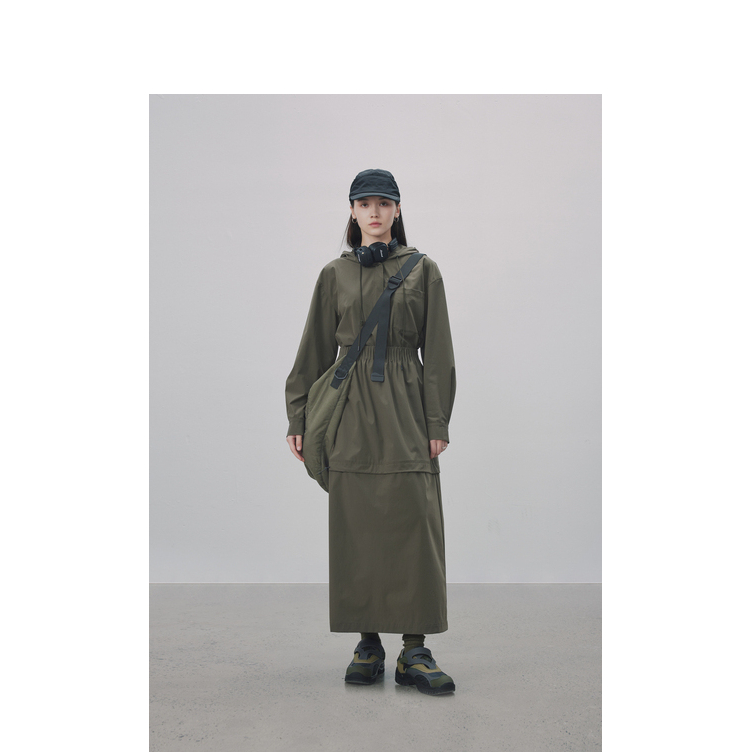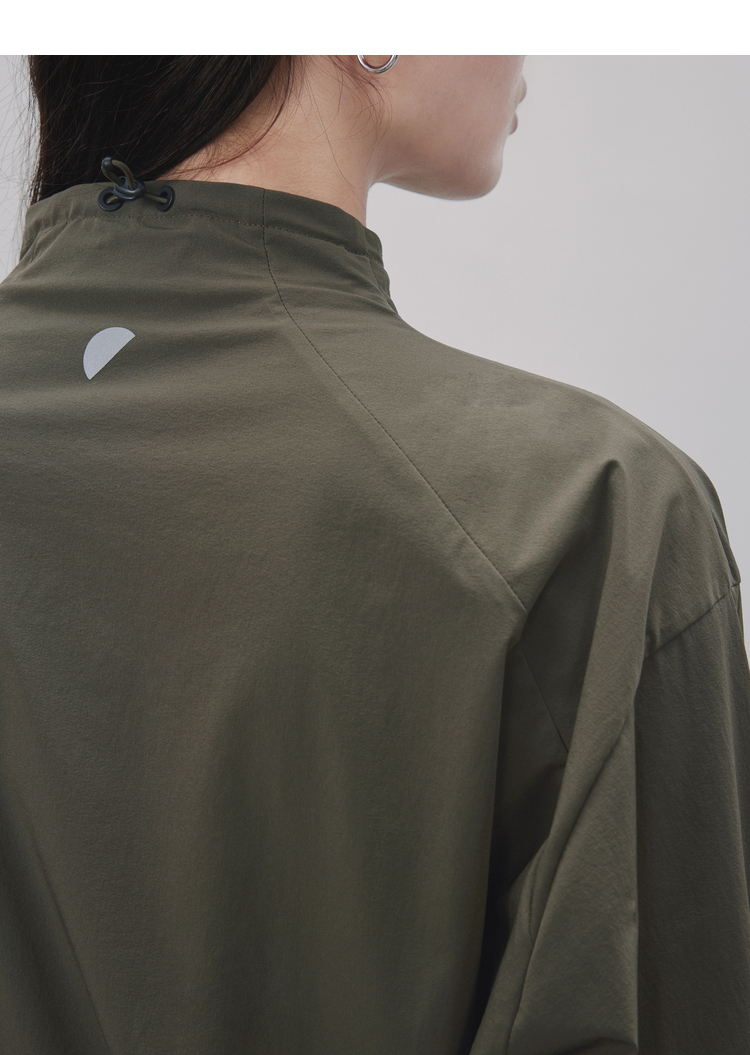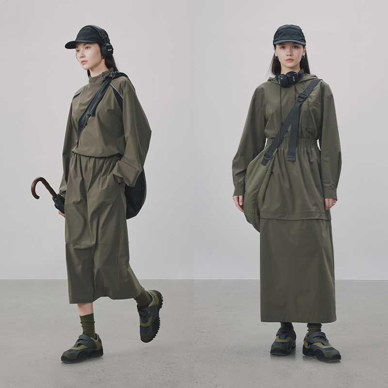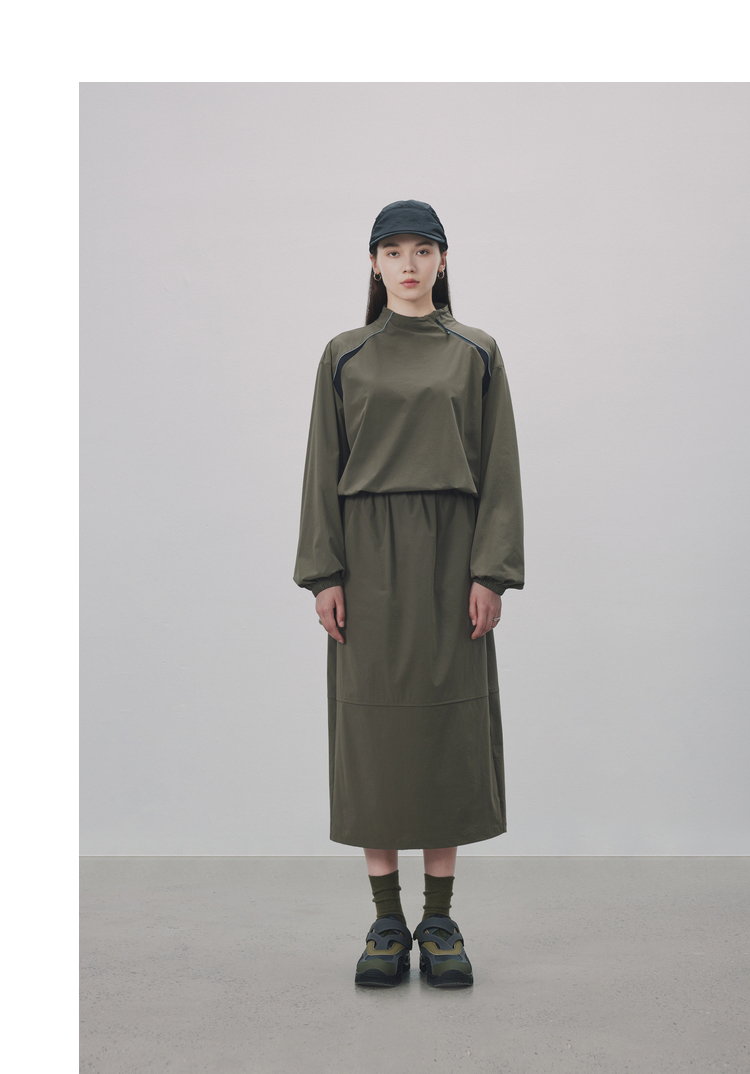 半圓原創設計女裝2023早秋季新拼接立領直筒小眾高級感衛衣洋裝