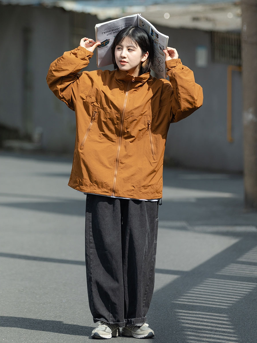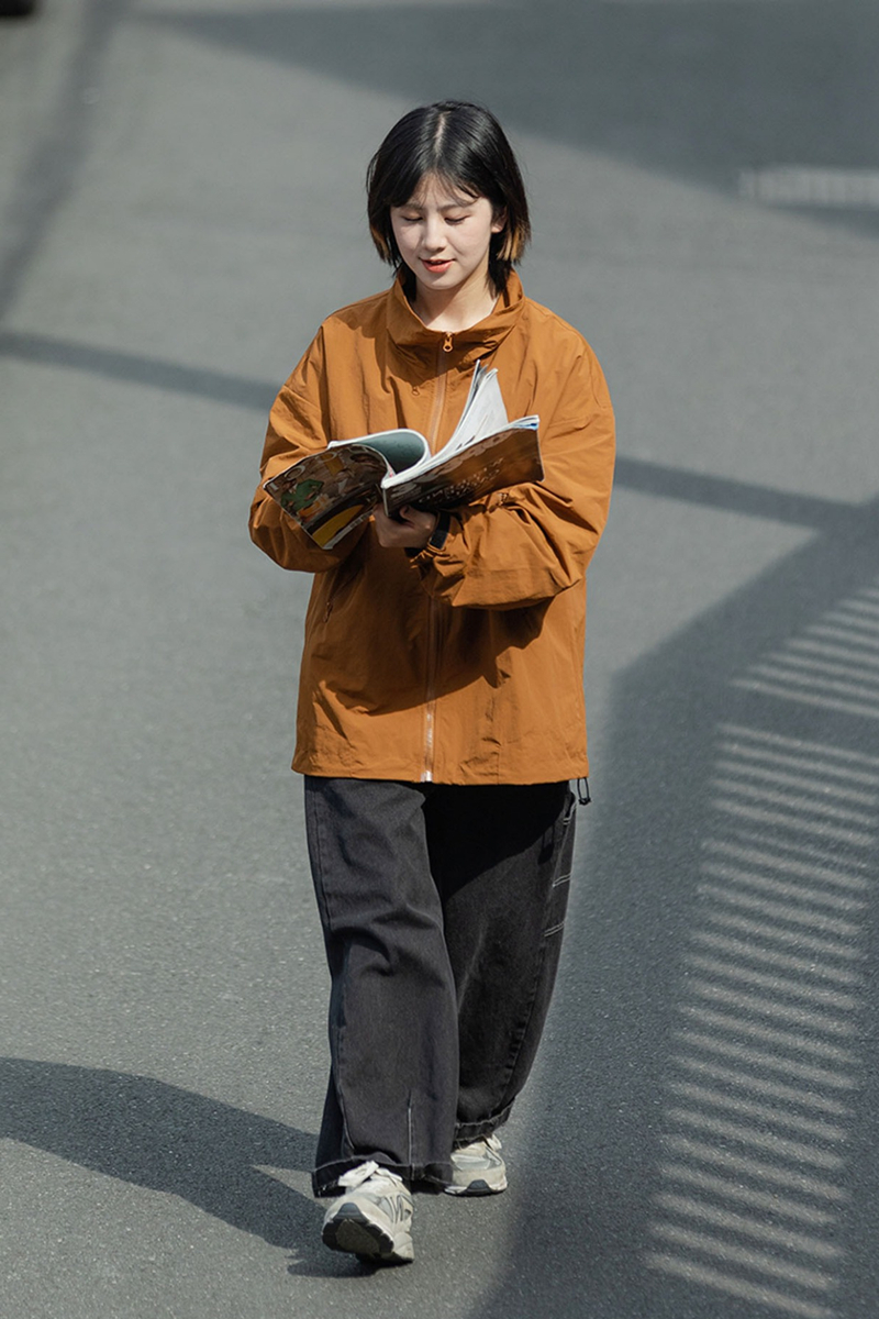 日系復古純色立領工裝夾克男女生春秋薄款cityboy中性衝鋒衣外套