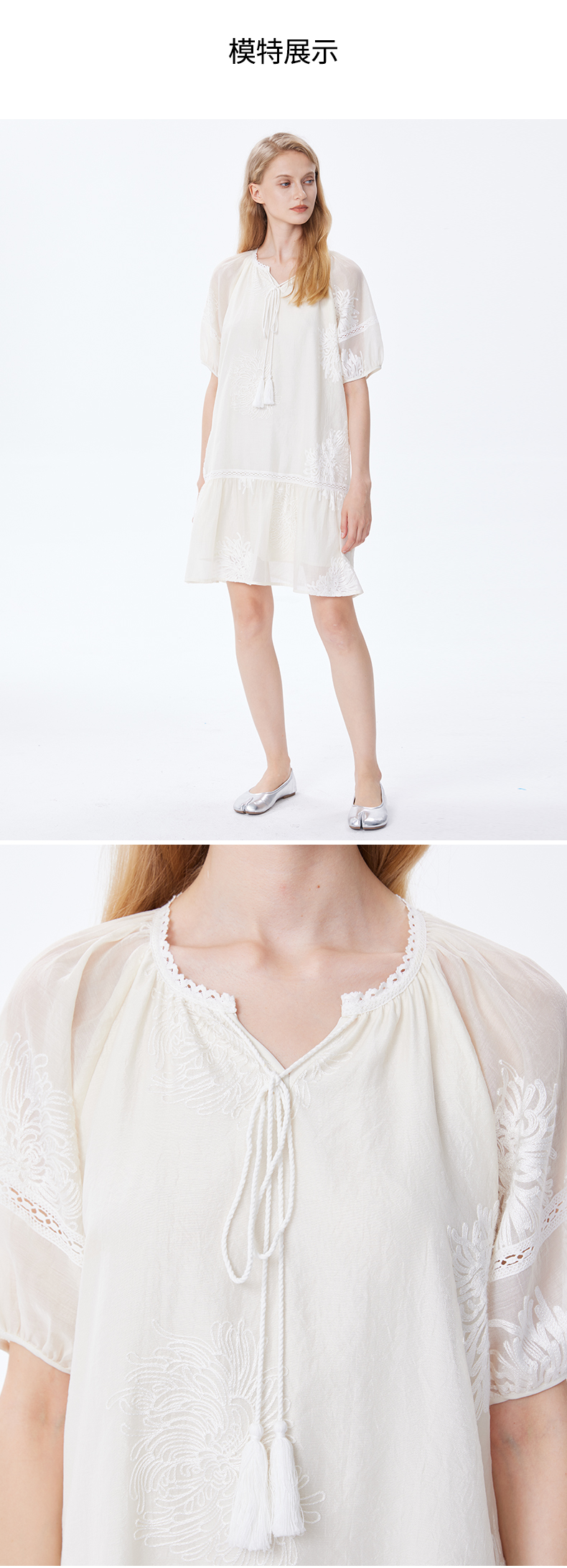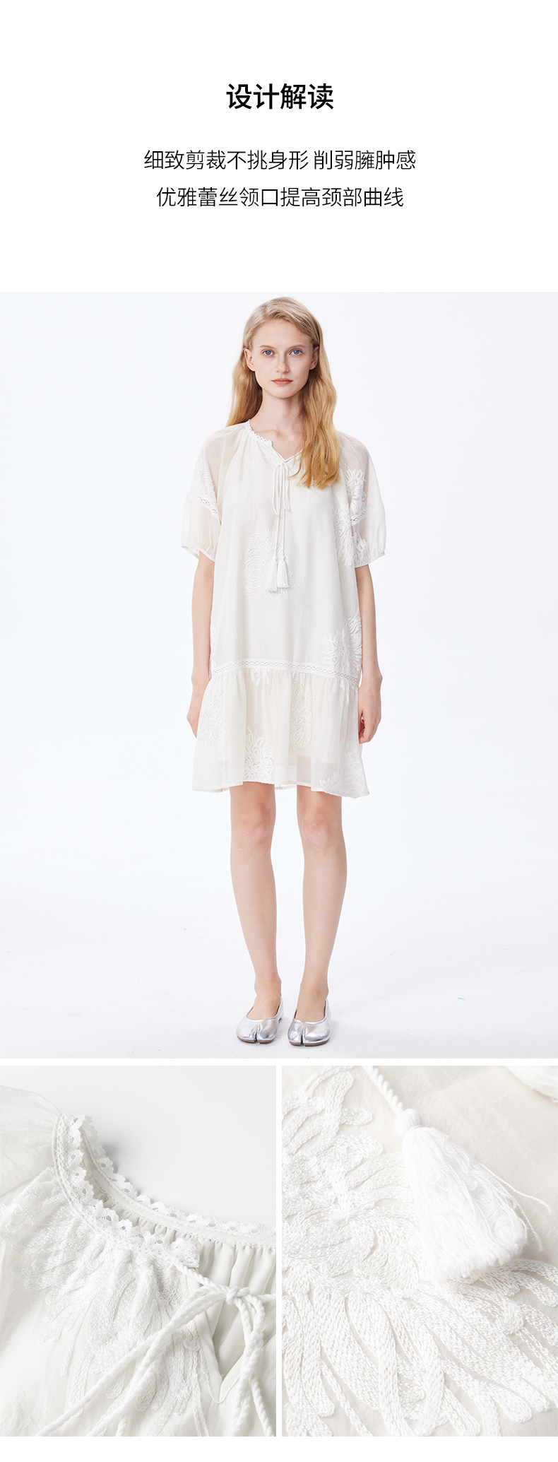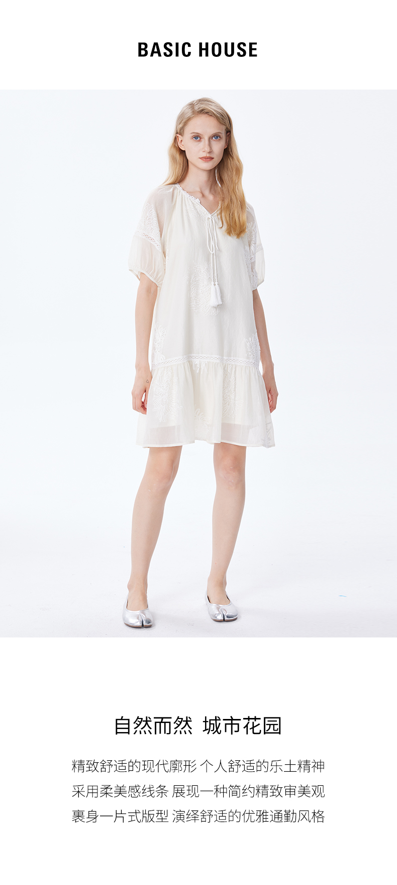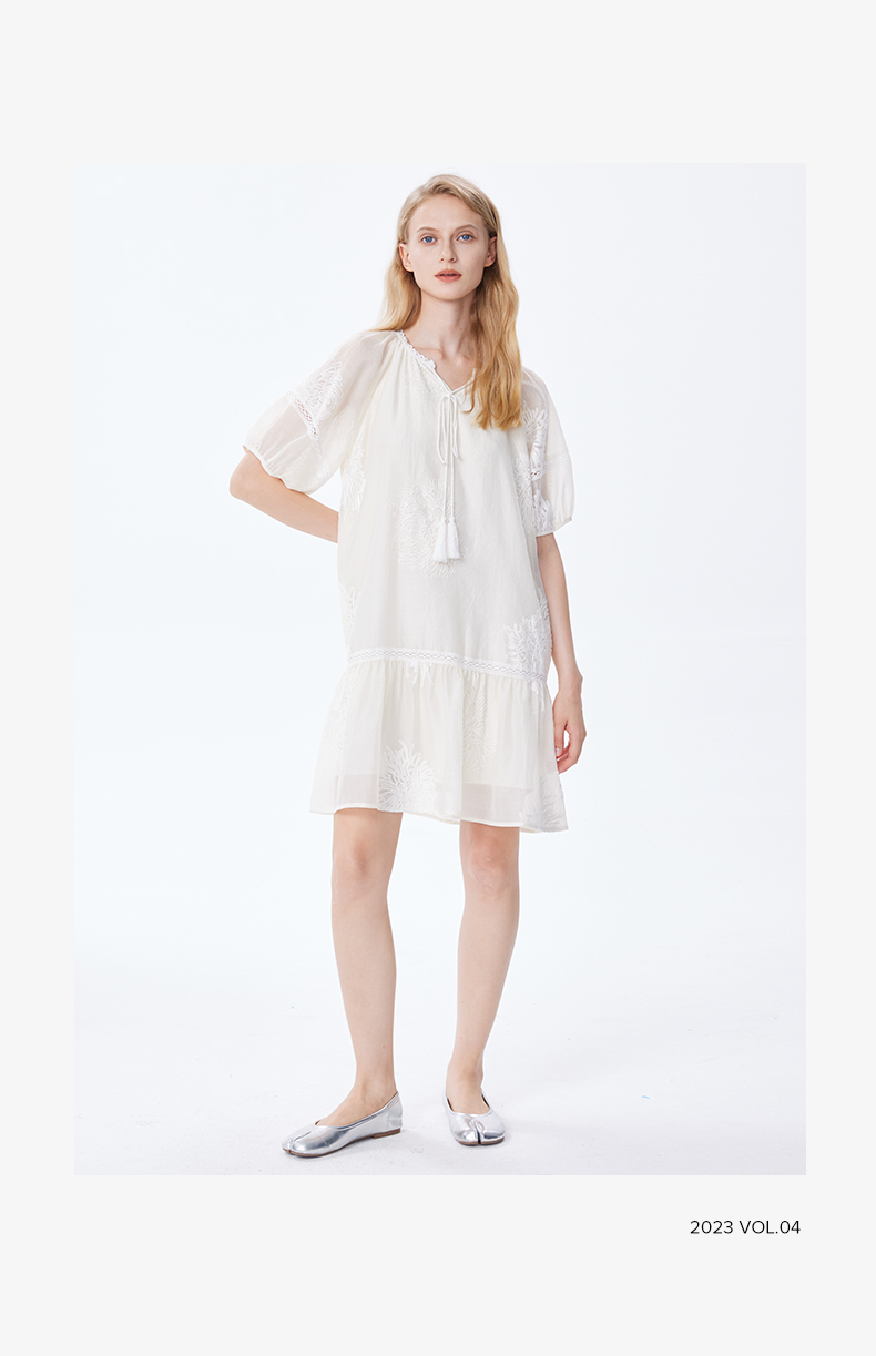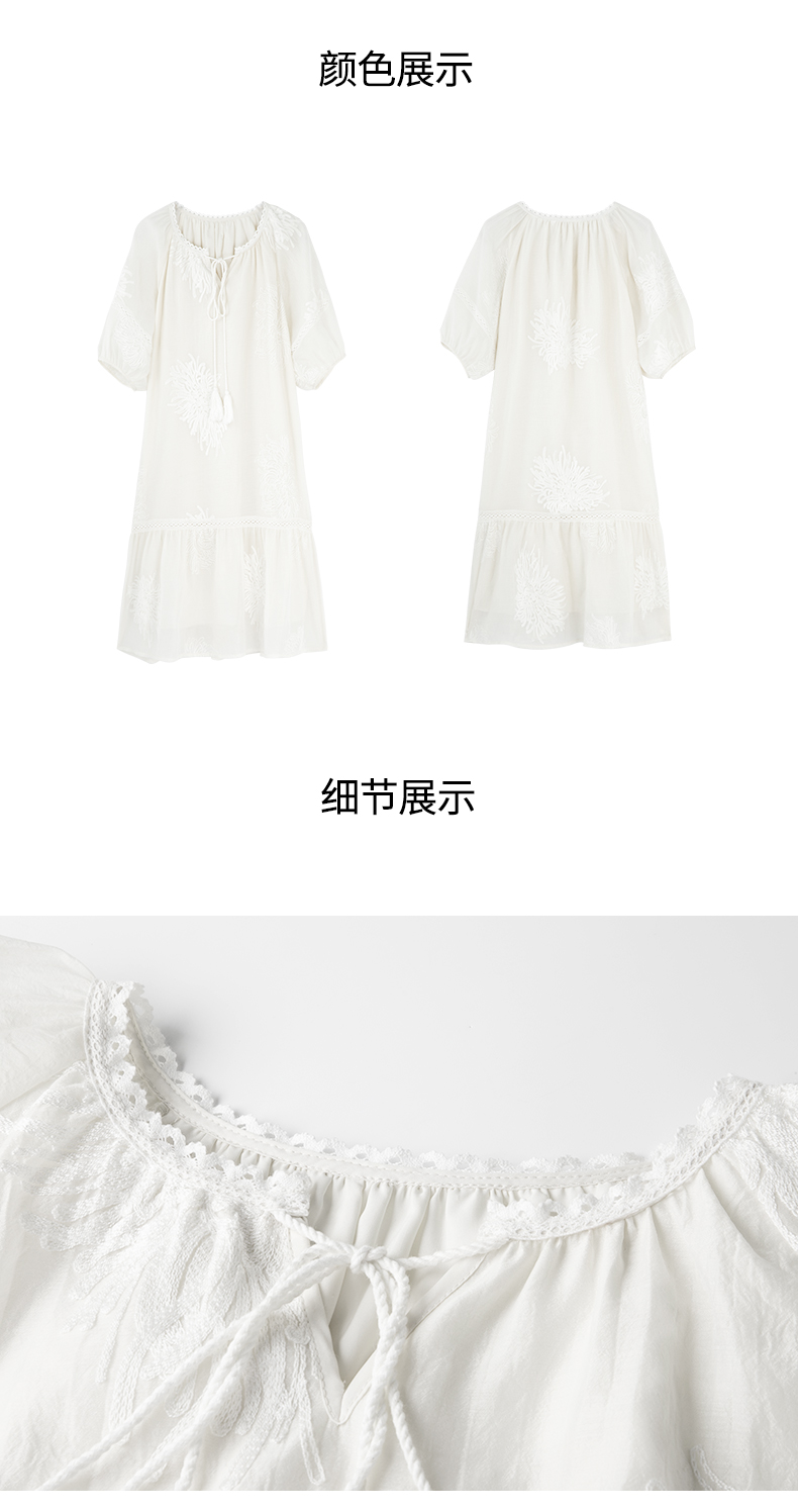 Basic House/百家好小個子洋裝女2023夏季新款甜美小清新刺繡裙