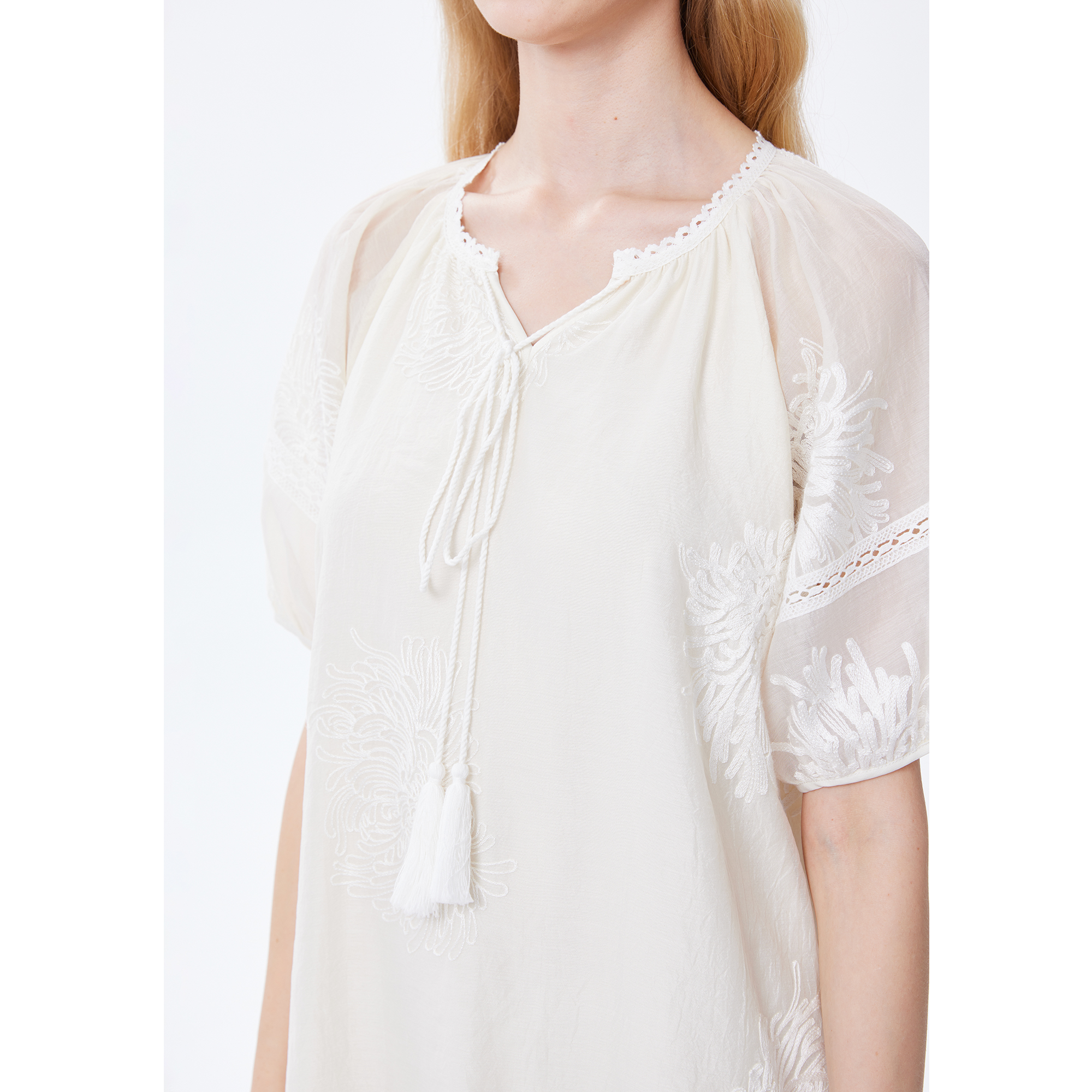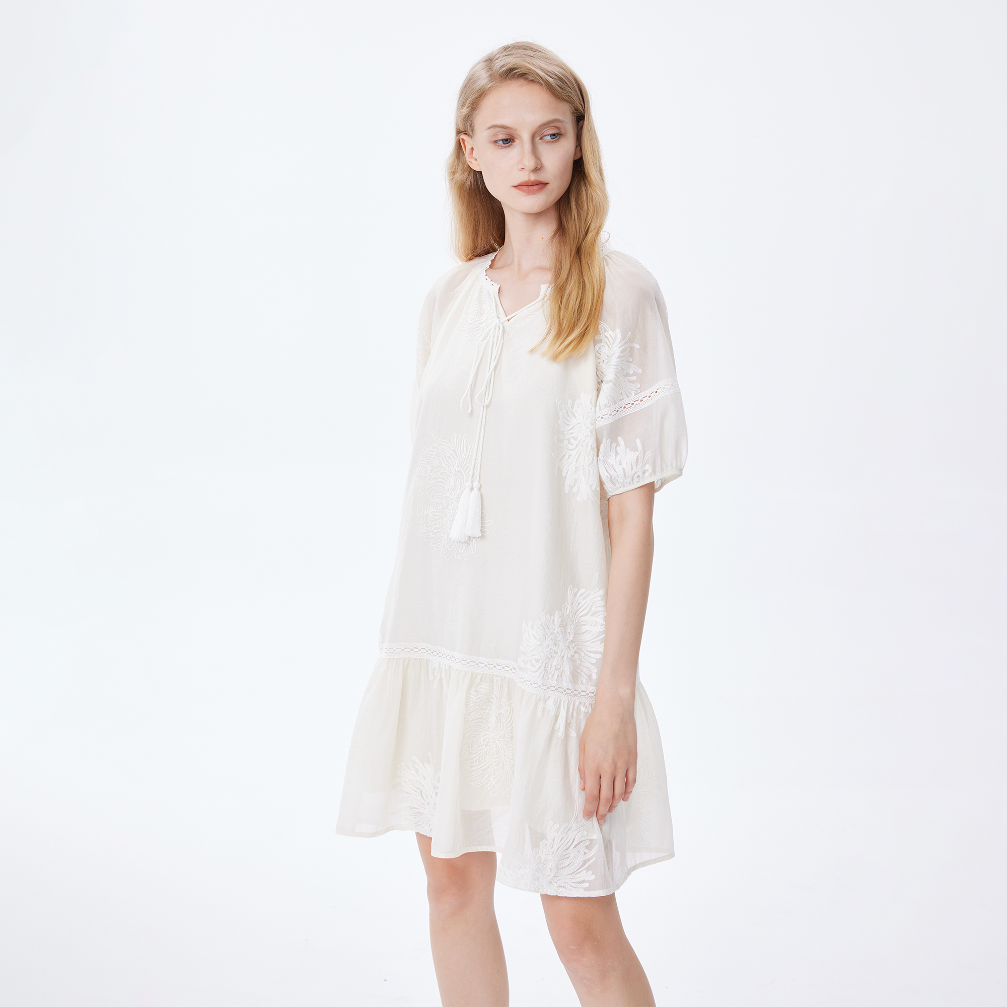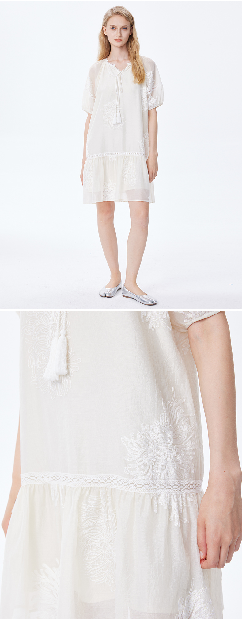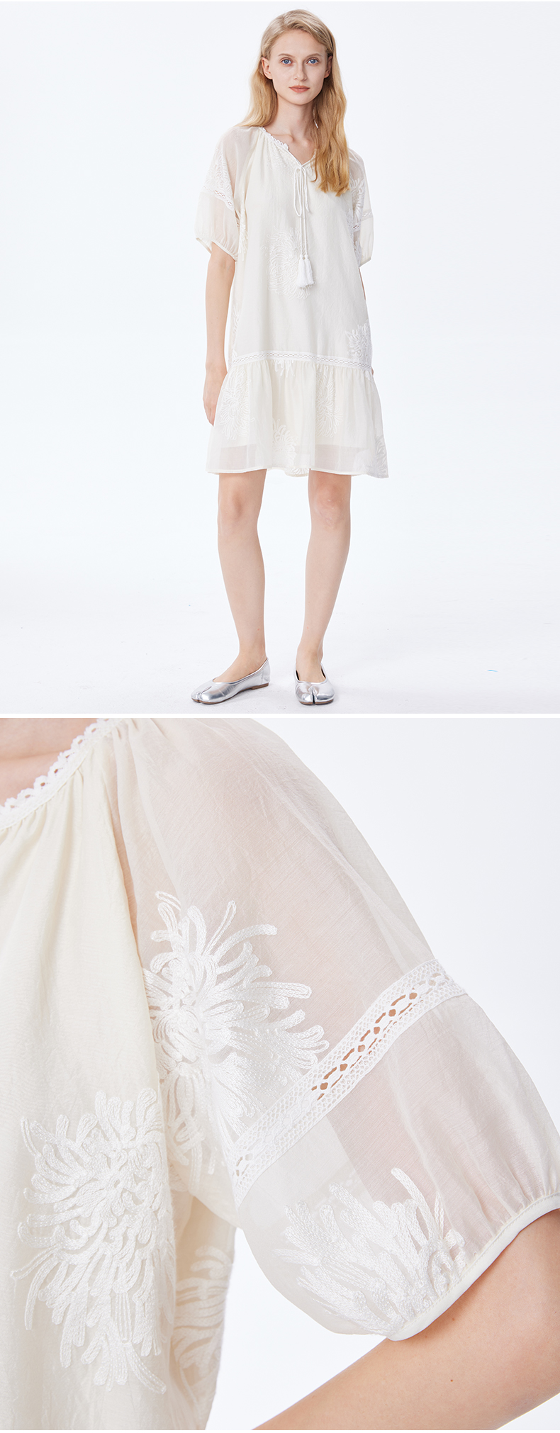 Basic House/百家好小個子洋裝女2023夏季新款甜美小清新刺繡裙