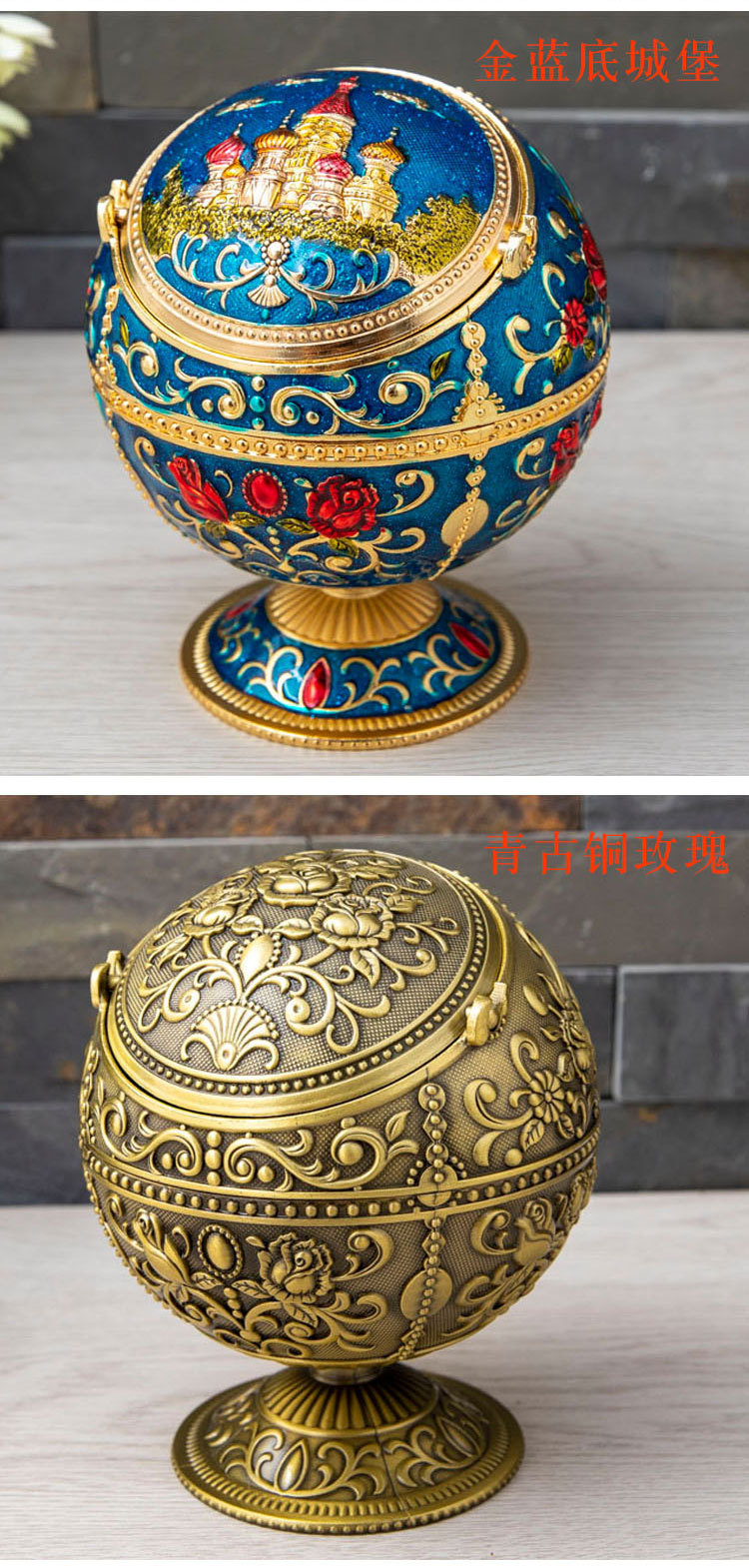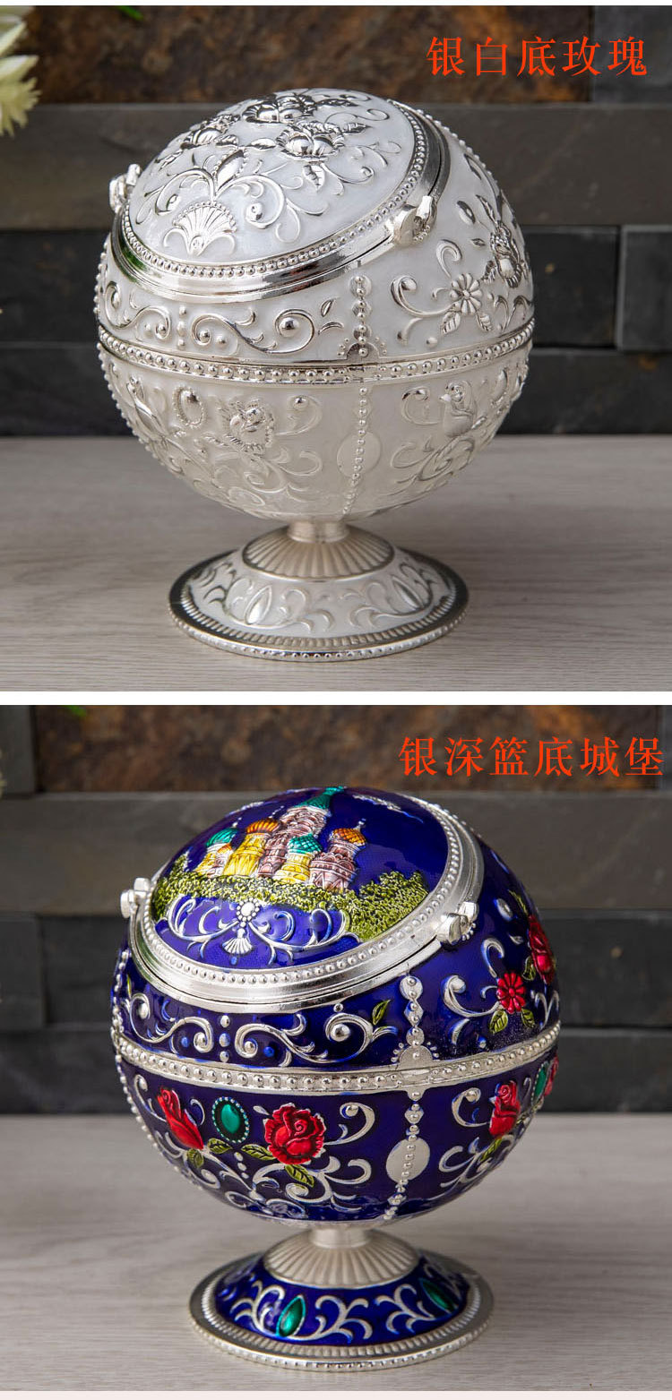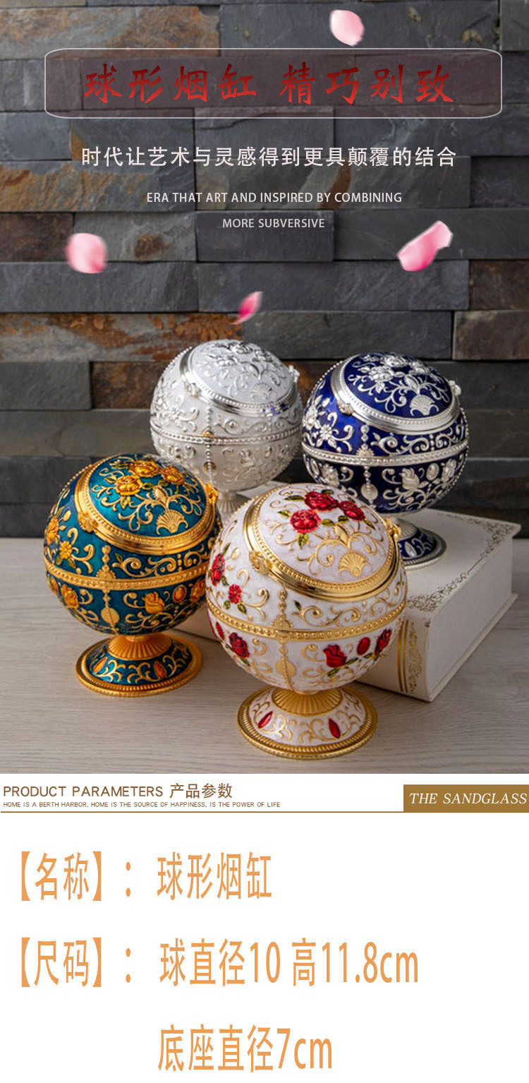 北欧轻奢创意防飞灰防风烟灰缸个性球形带盖子酒店家用烟缸批发
