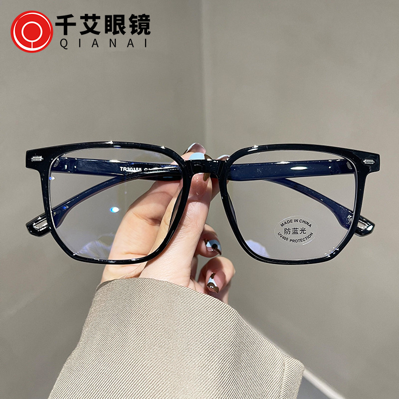 千艾新款TR方框防蓝光眼镜 个性大框近视眼睛架ins铆钉素颜平光镜