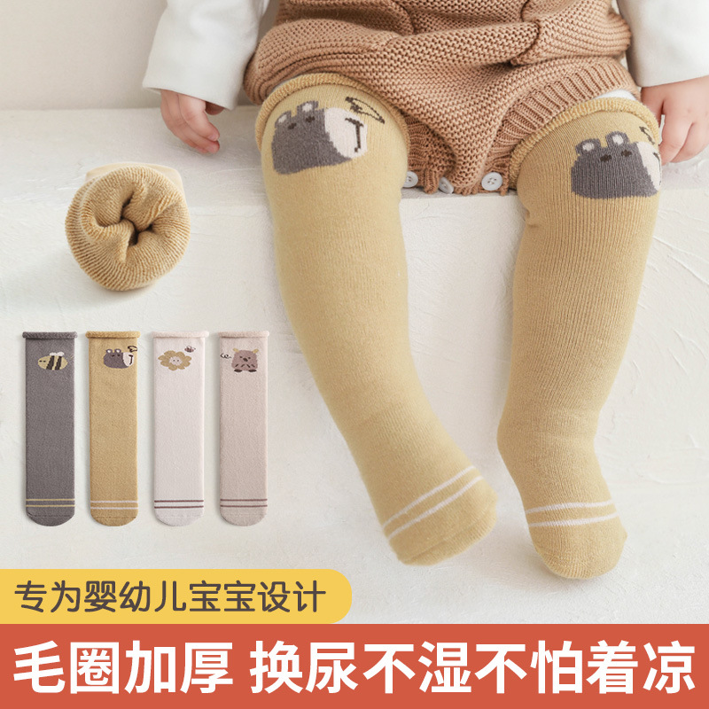 2022冬季新品新生儿宝宝棉袜可爱卡通松口婴儿袜子男女儿童长筒袜