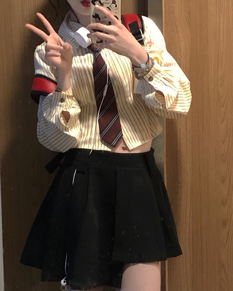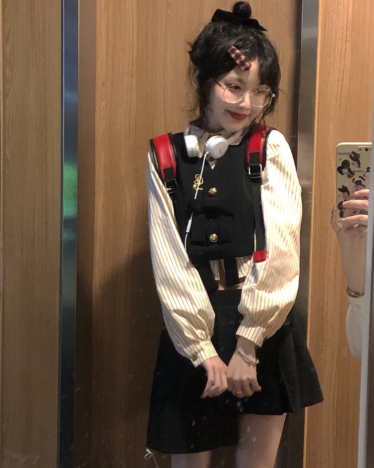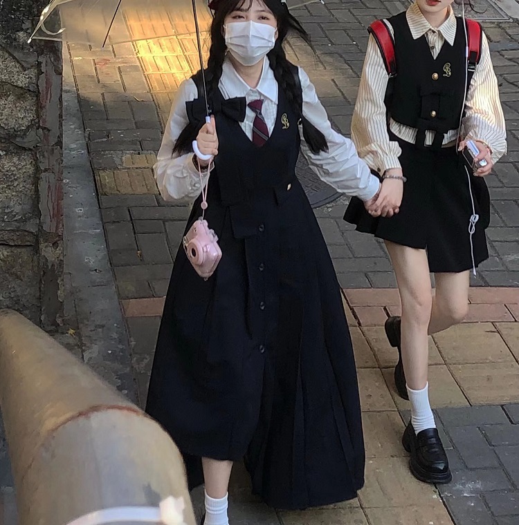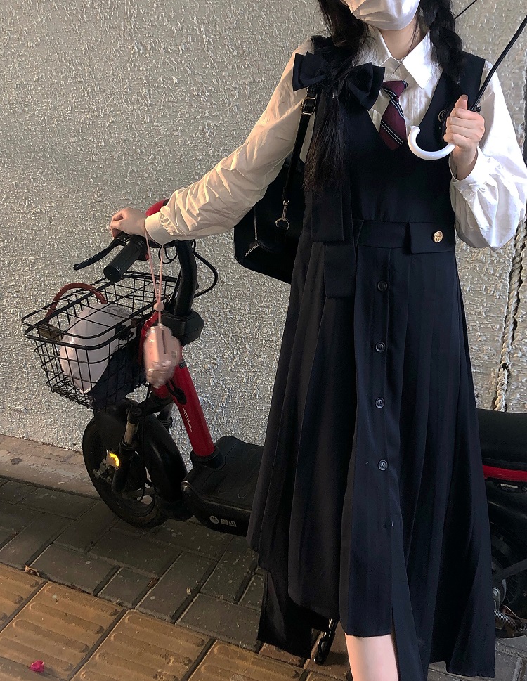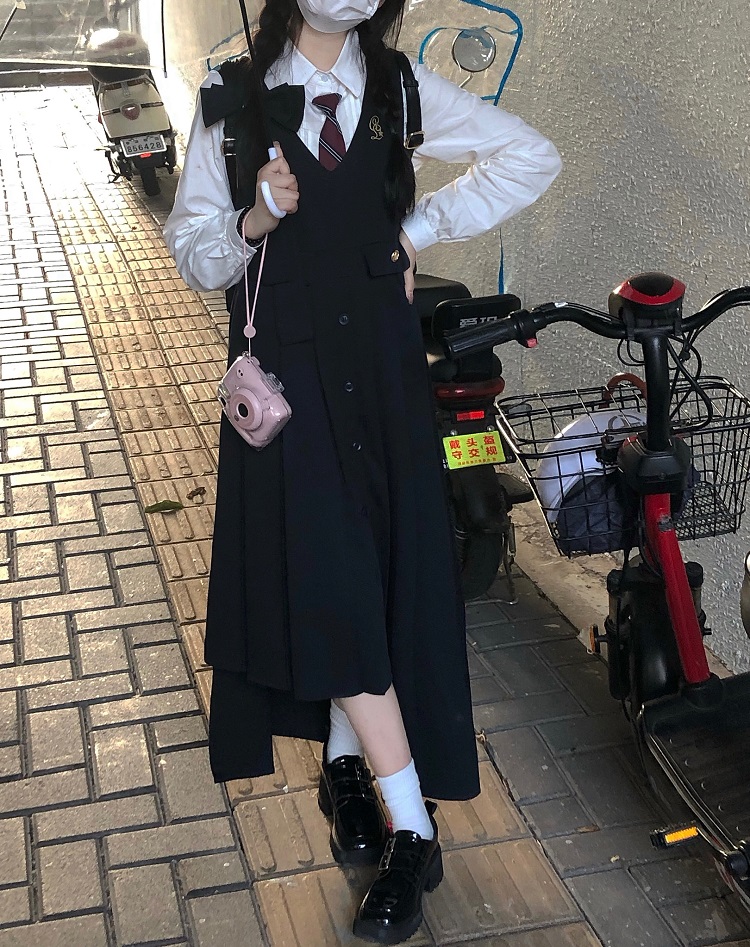 顏色分類 抱嬰袋裙長版+白襯衫送領帶,條紋襯衫+蝴蝶結馬甲+不規則短裙送領帶,單件抱嬰袋裙長版,單件蝴蝶結馬甲,單件不規則短裙,蝴蝶結馬甲+條紋襯衫