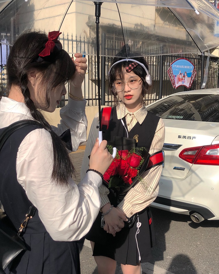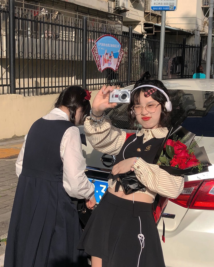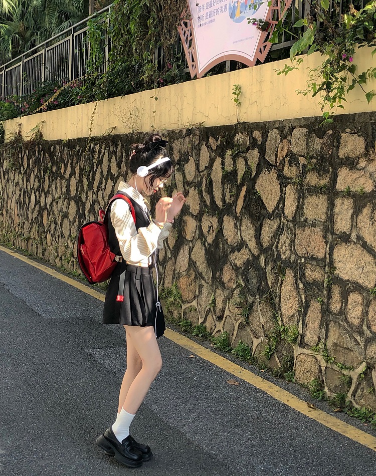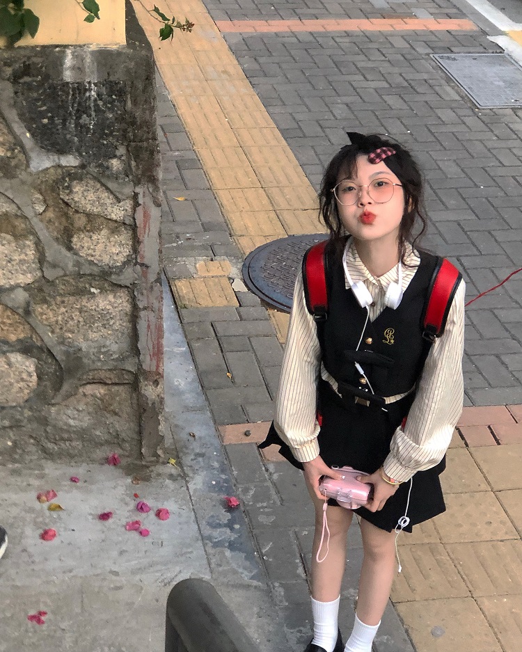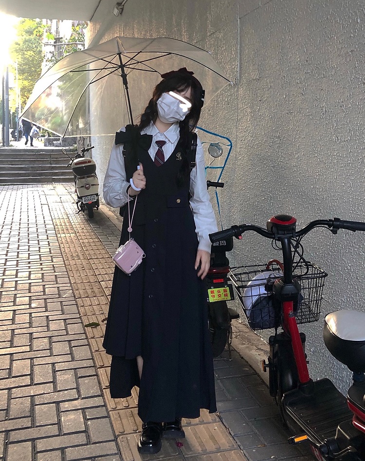 顏色分類 抱嬰袋裙長版+白襯衫送領帶,條紋襯衫+蝴蝶結馬甲+不規則短裙送領帶,單件抱嬰袋裙長版,單件蝴蝶結馬甲,單件不規則短裙,蝴蝶結馬甲+條紋襯衫