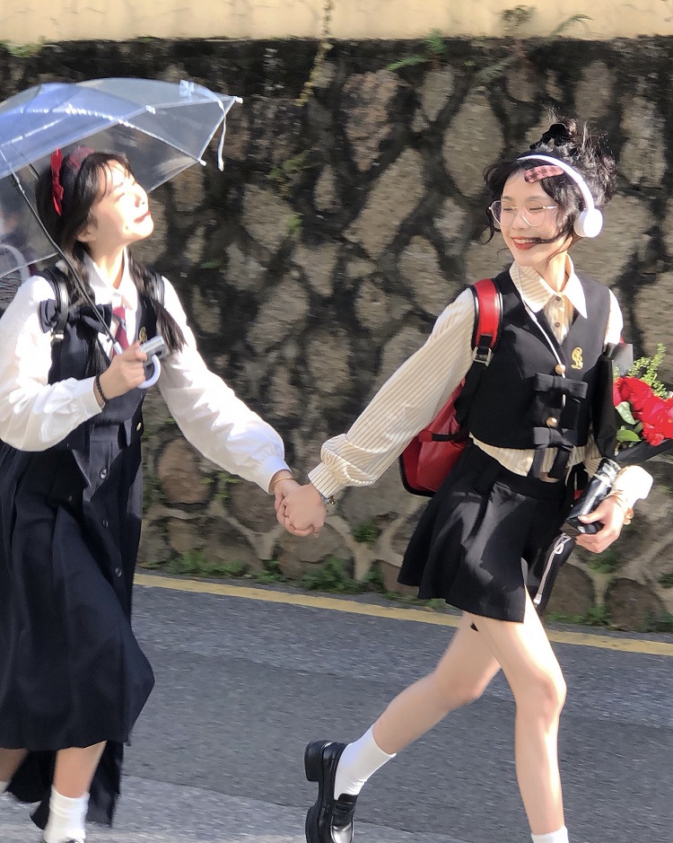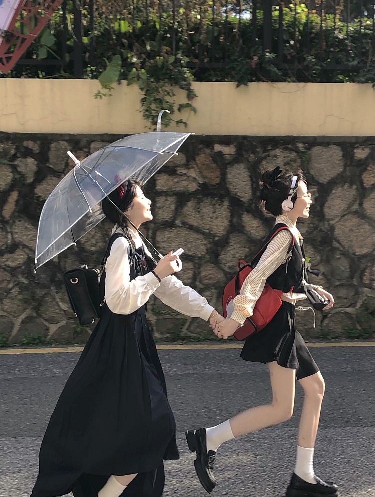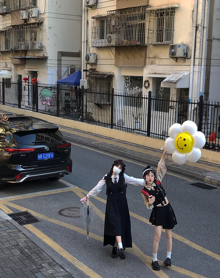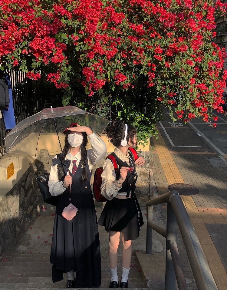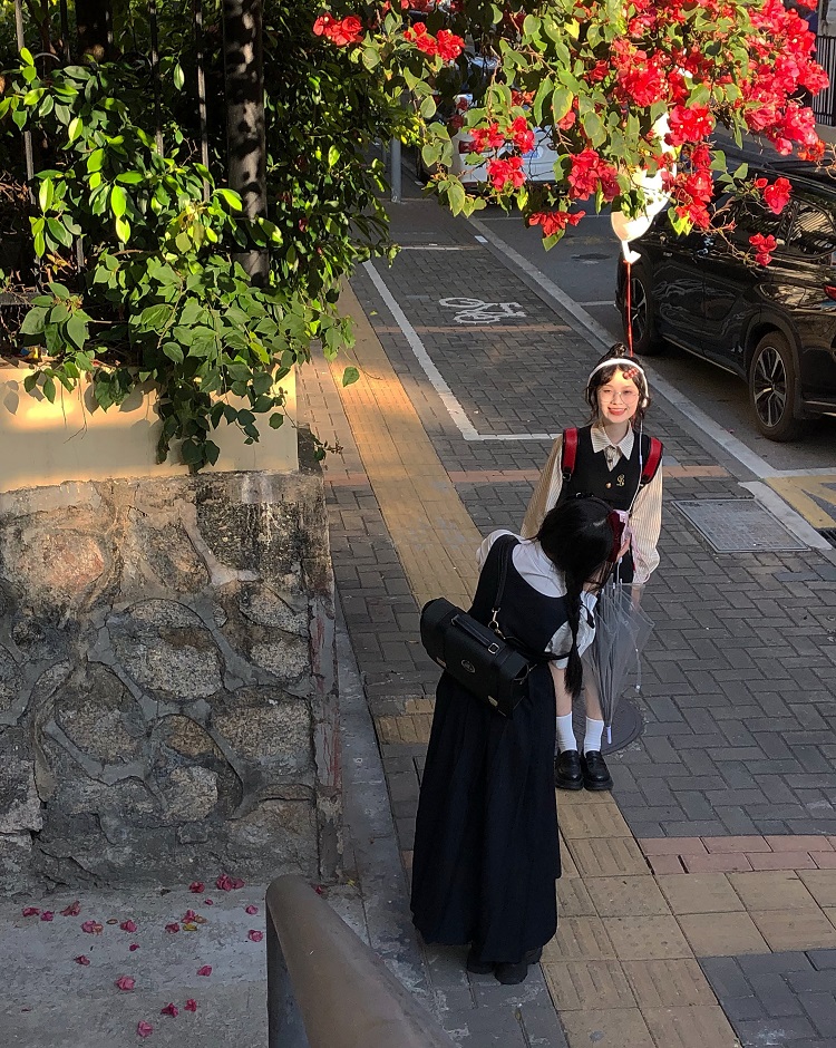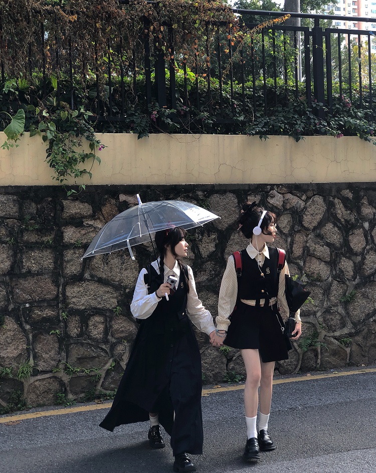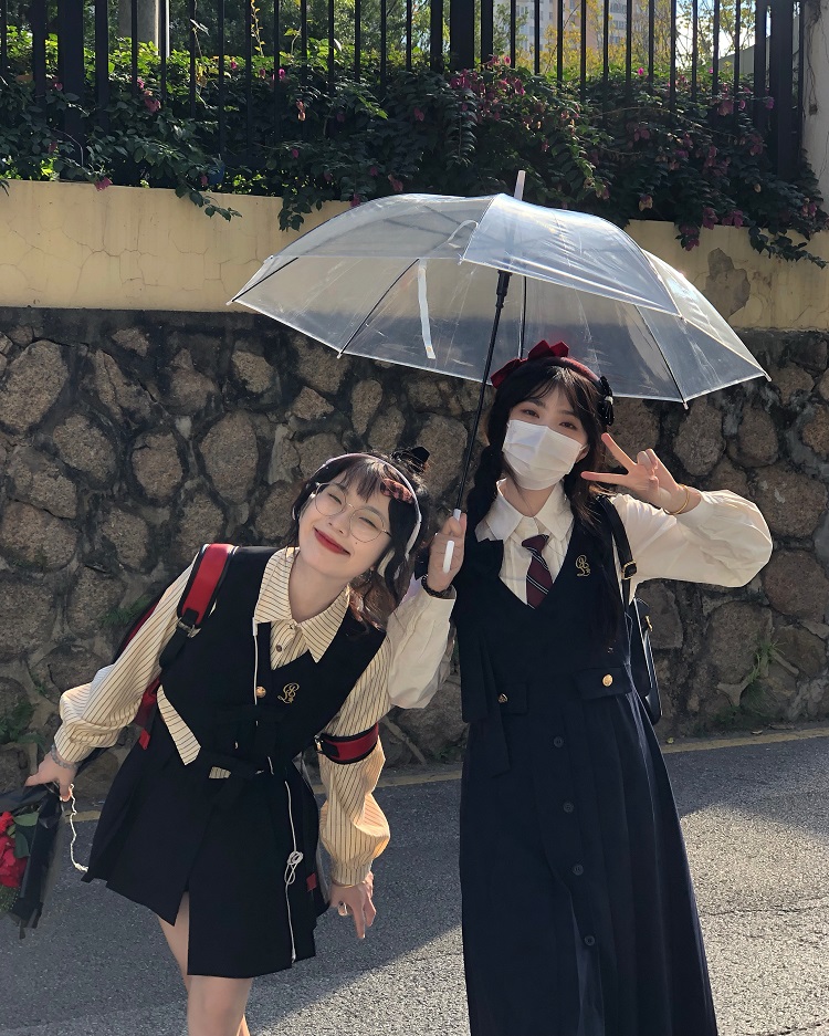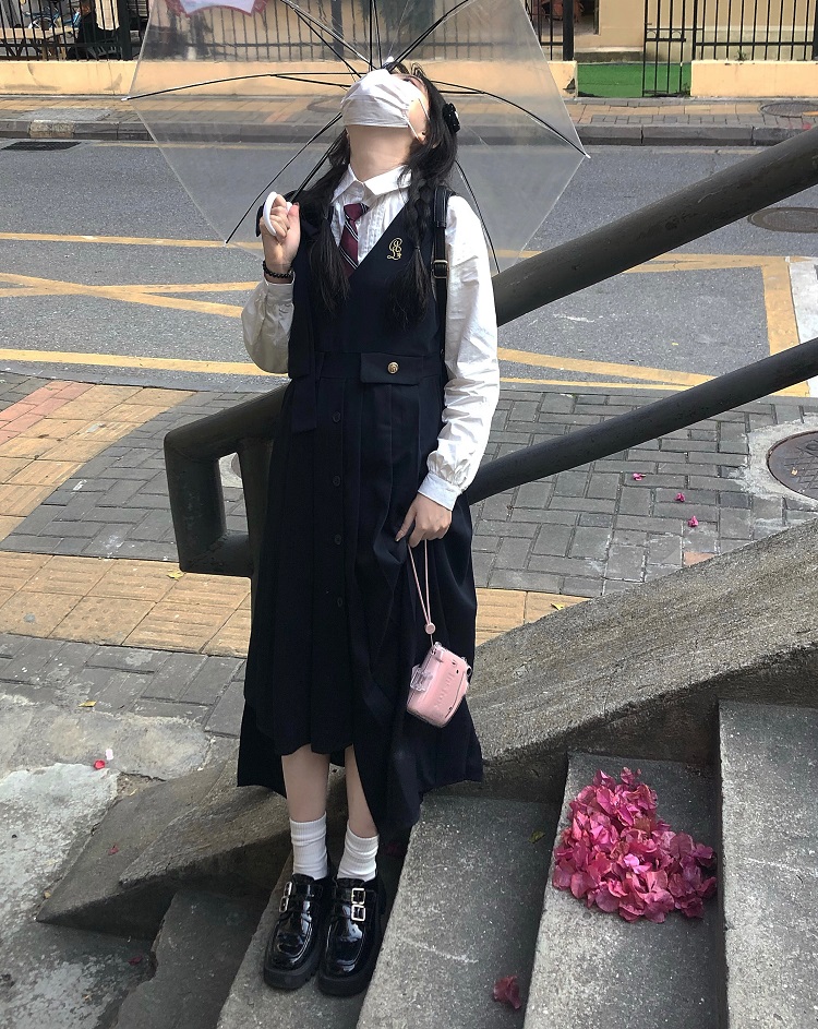 【ALITTLE 亂糟糟】“愛丁堡學院”徽章刺繡不規則抱嬰袋裙+襯衫女