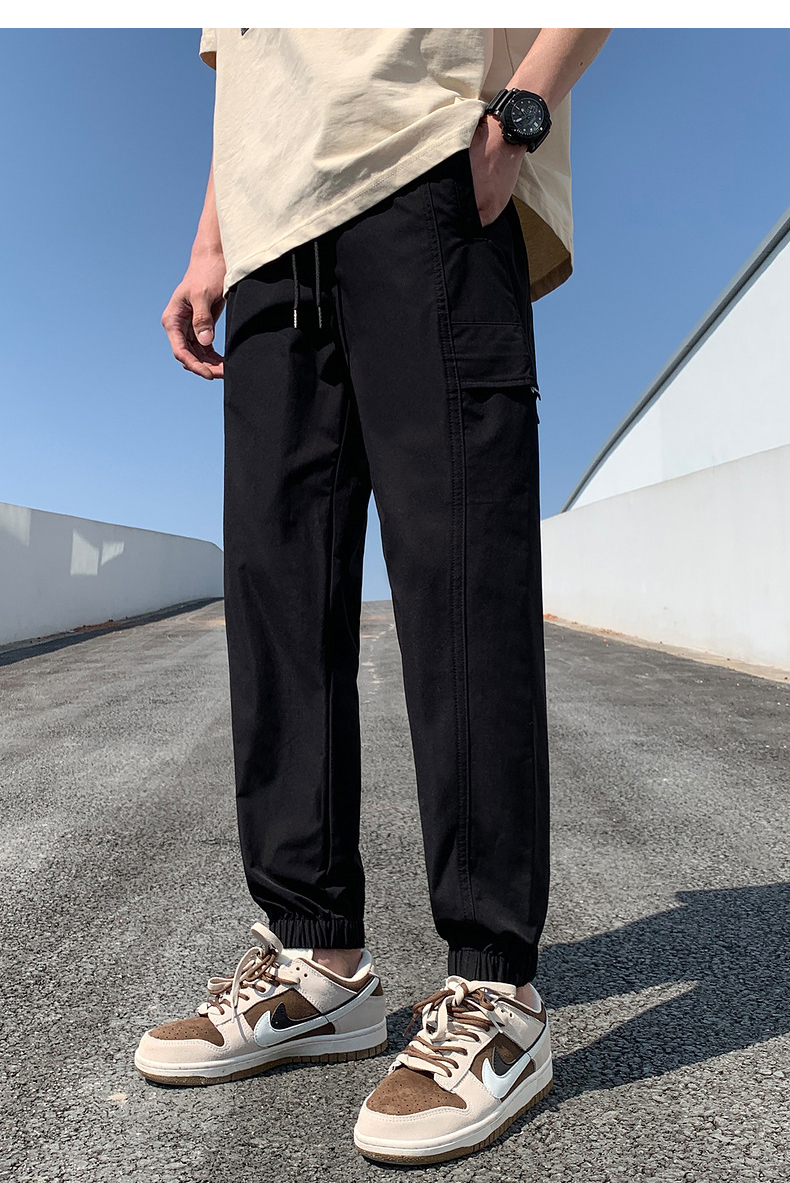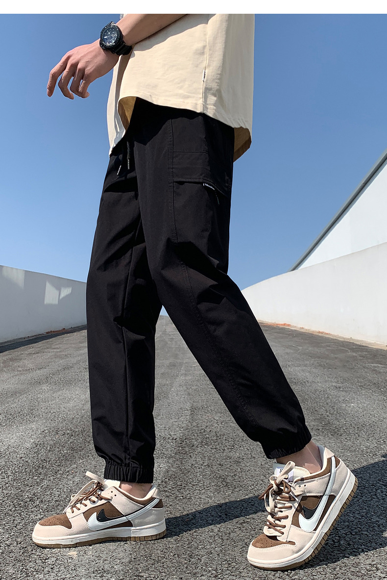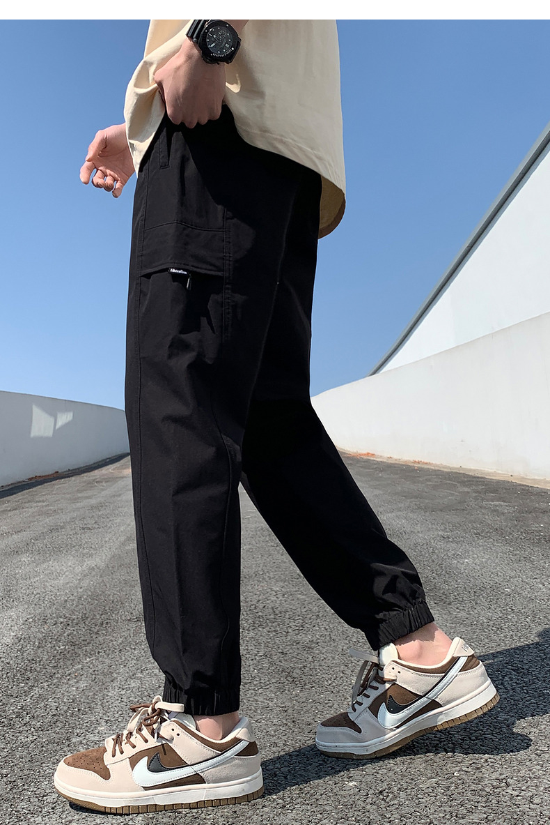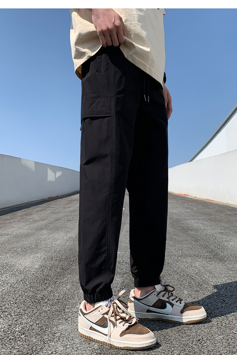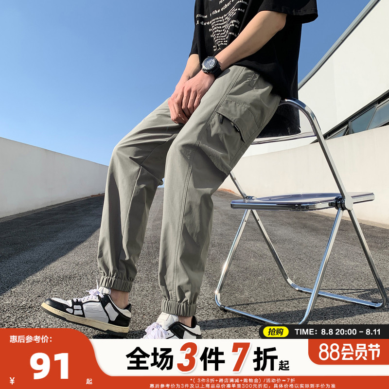 唐獅2023新款男士休閒褲寬鬆束腳運動潮酷百搭純色工裝日系風長褲