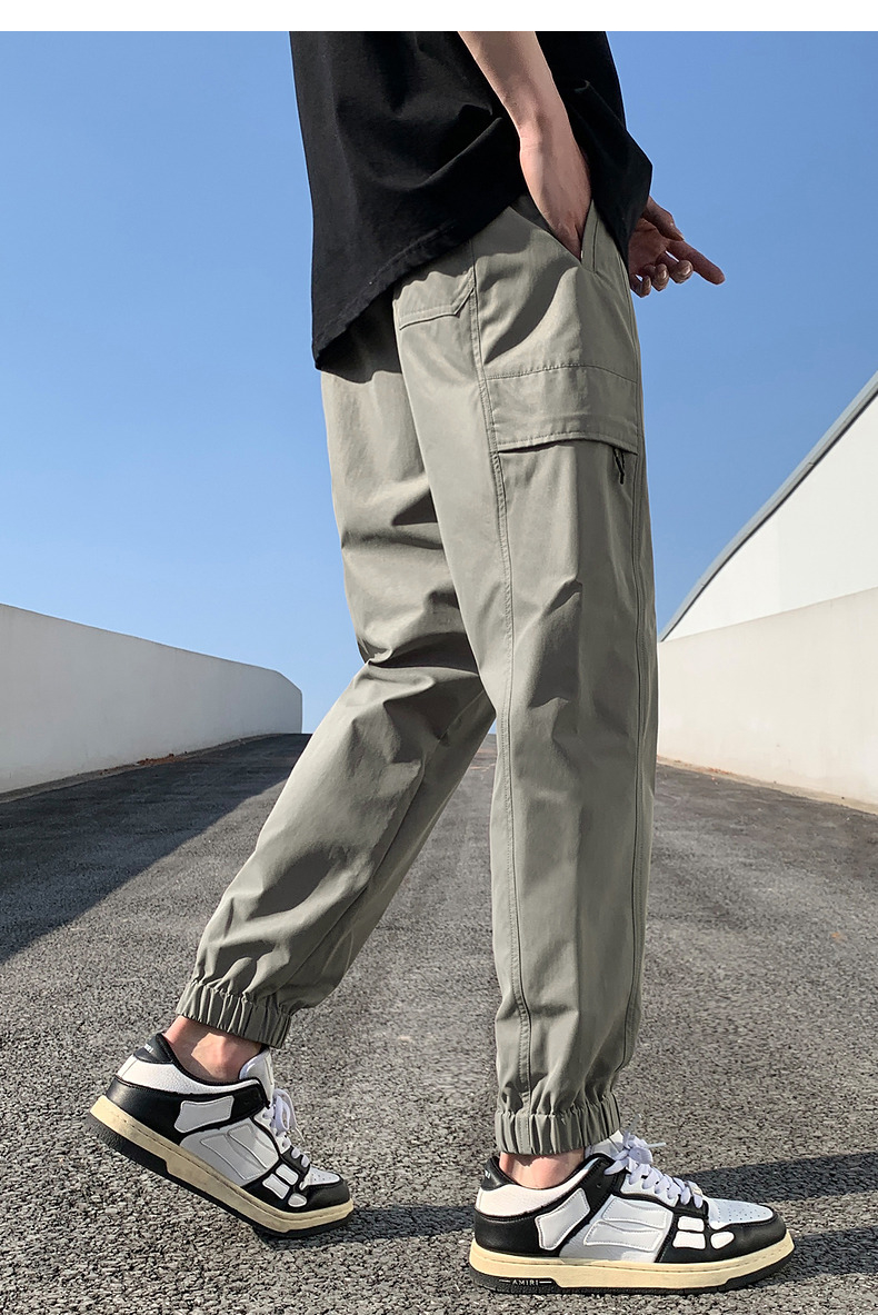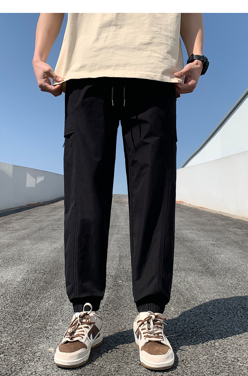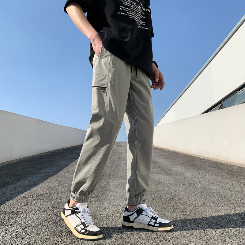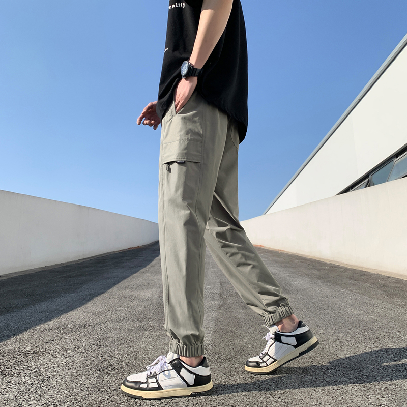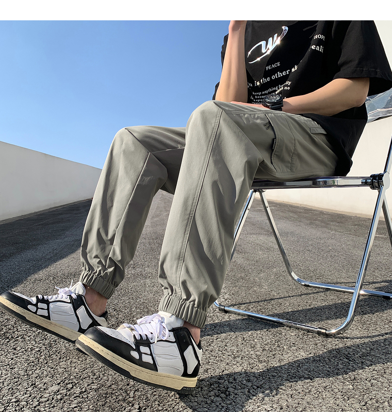 唐獅2023新款男士休閒褲寬鬆束腳運動潮酷百搭純色工裝日系風長褲