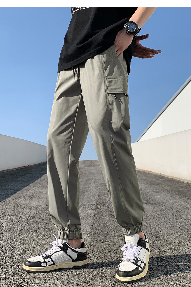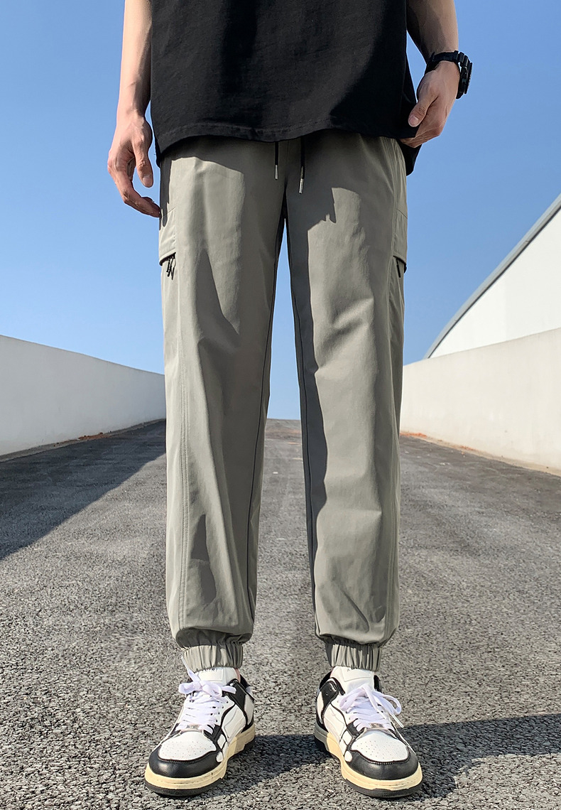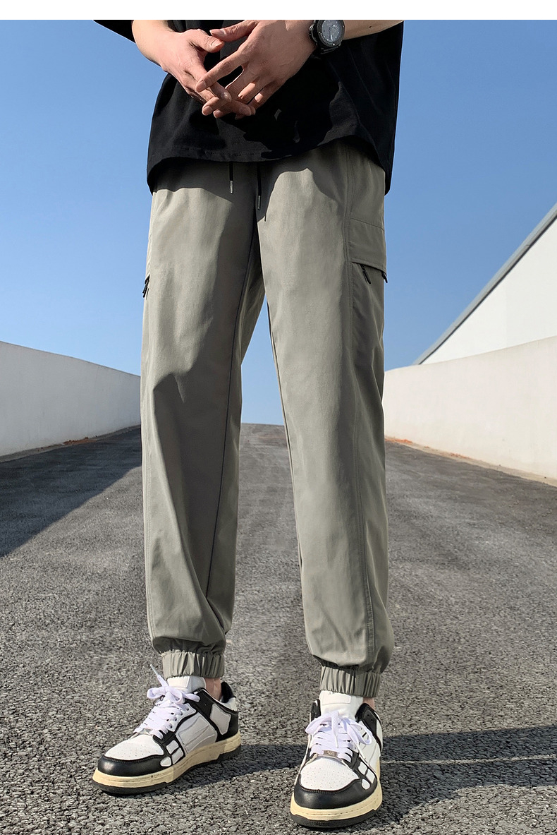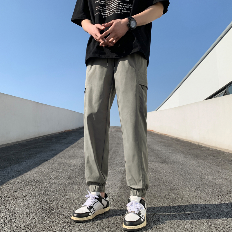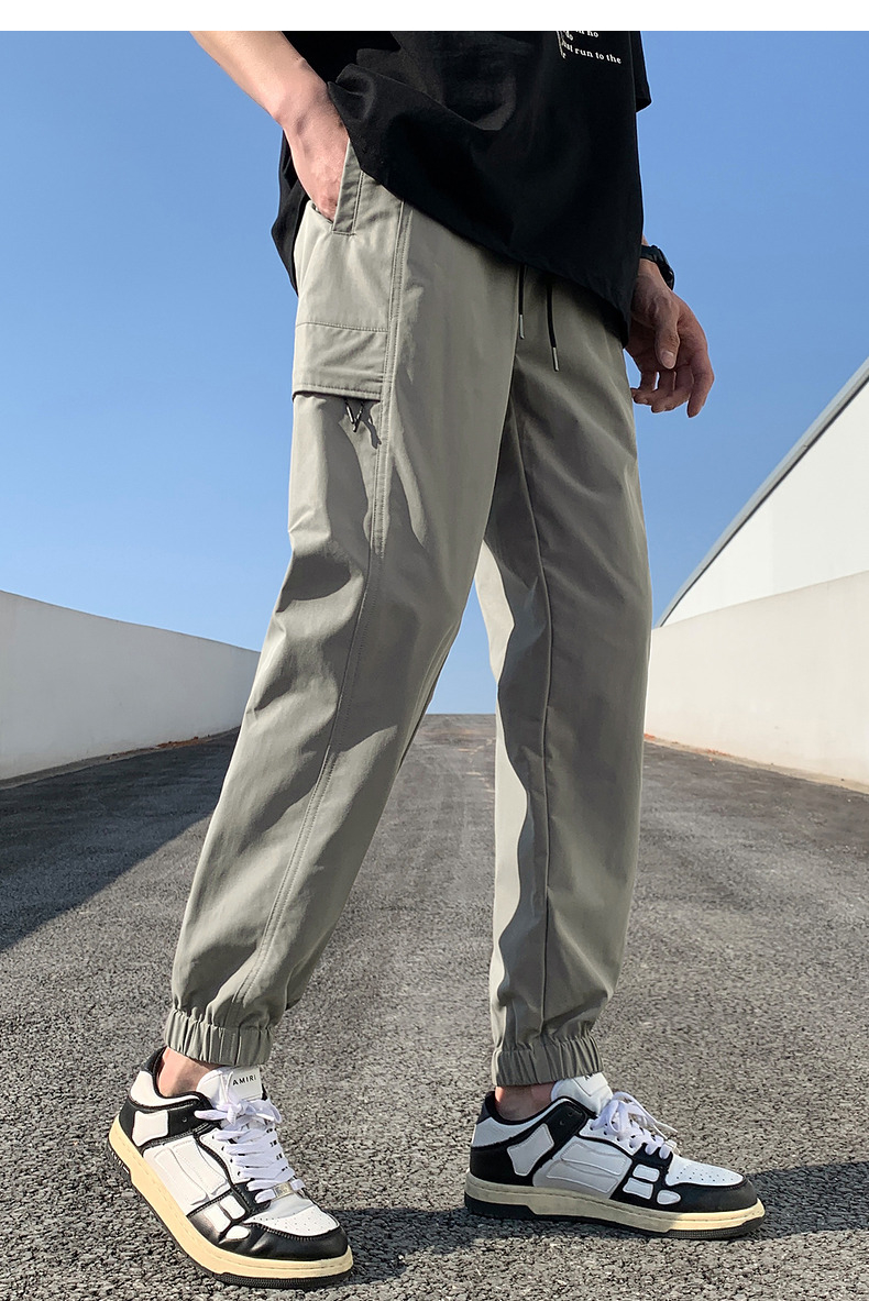 唐獅2023新款男士休閒褲寬鬆束腳運動潮酷百搭純色工裝日系風長褲