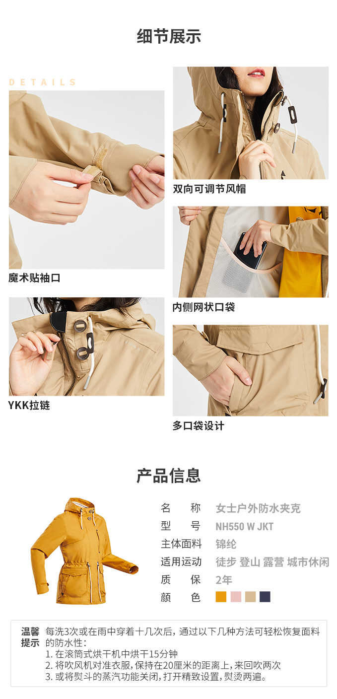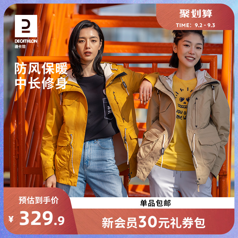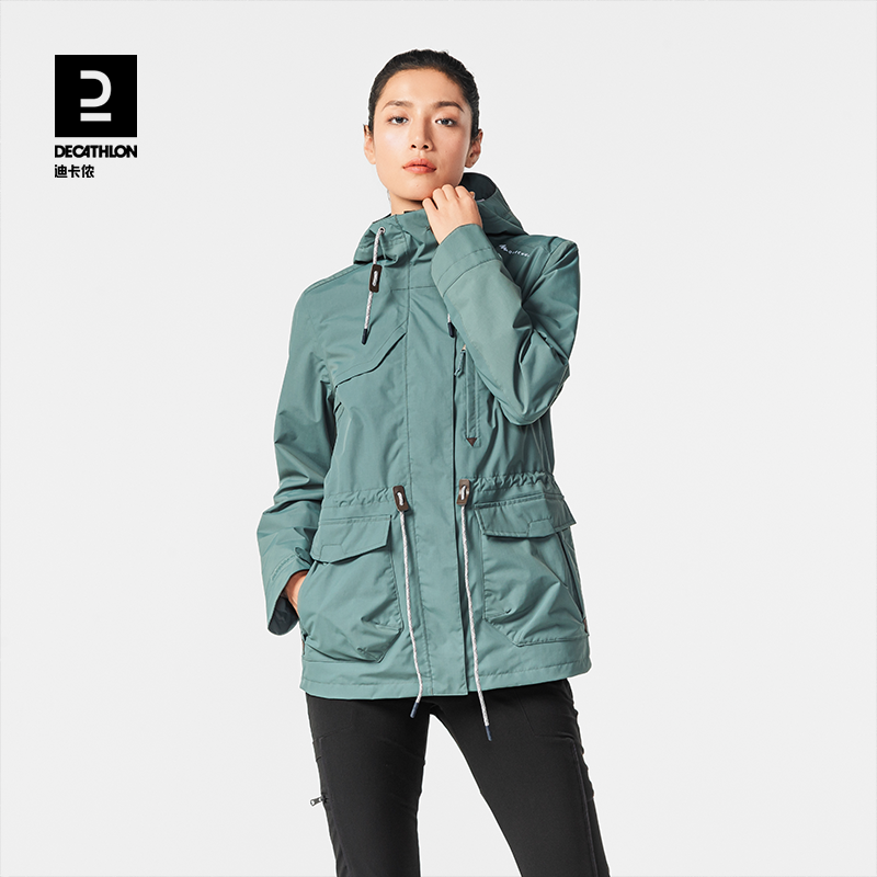 迪卡儂旗艦店衝鋒衣女登山外套單層春秋運動戶外防水防風衣ODT2