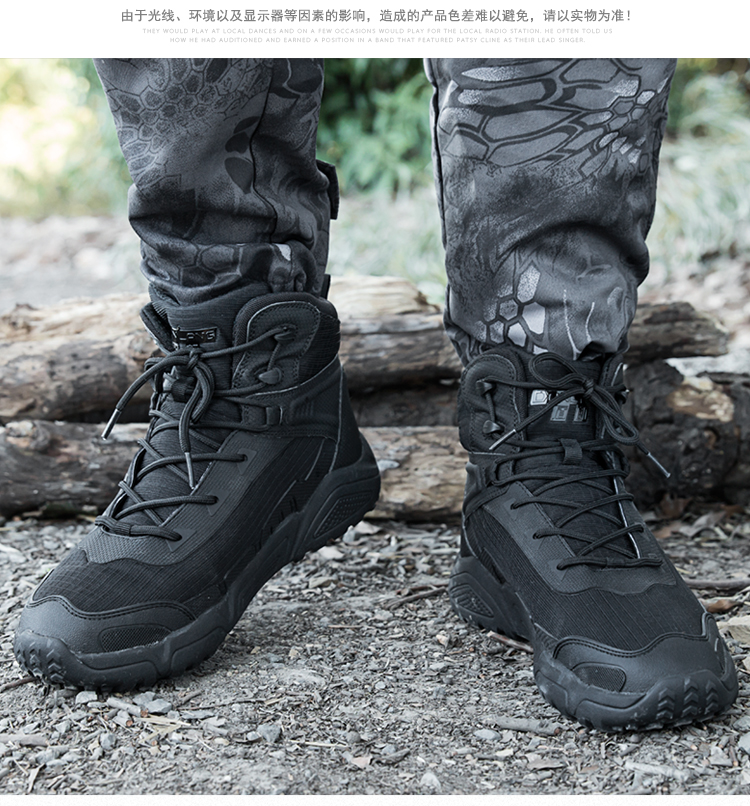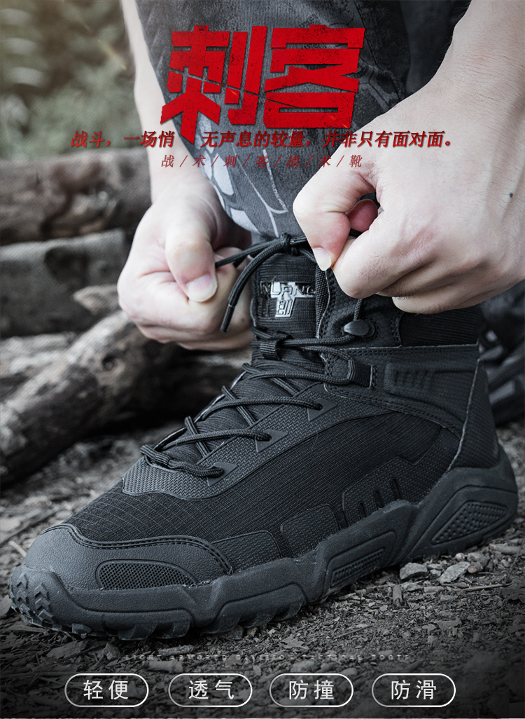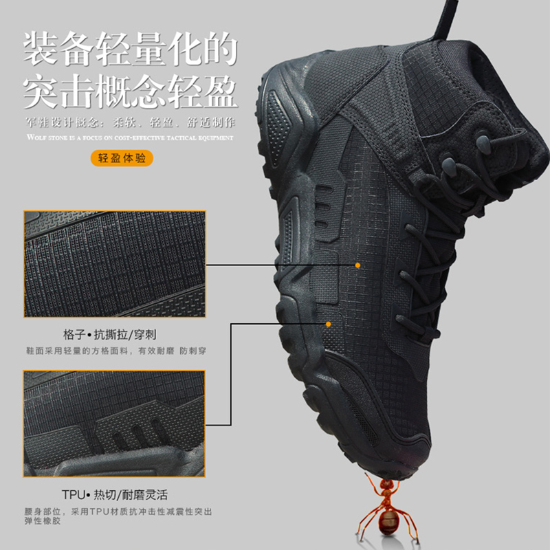 新款作戰靴男超輕春秋中筒沙漠戰術鞋輕便徒步登山防滑黑色訓練鞋