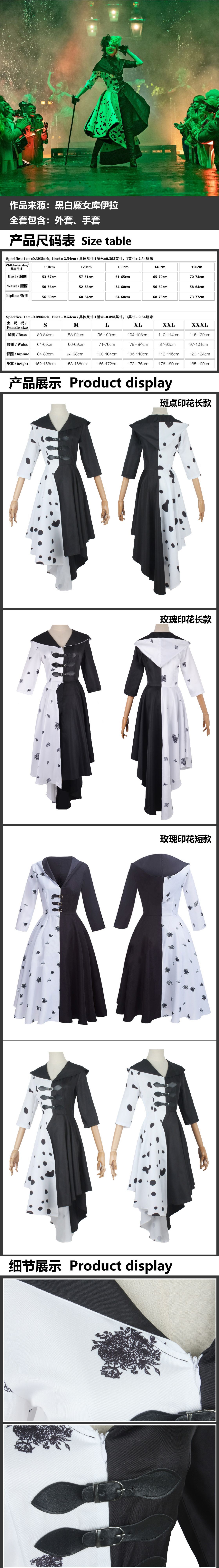 电影101忠狗cos黑白魔女库伊拉 ·德维尔cosplay连衣裙舞台表演服