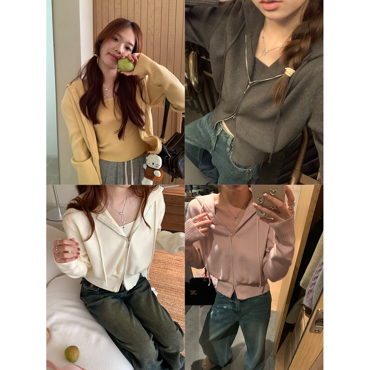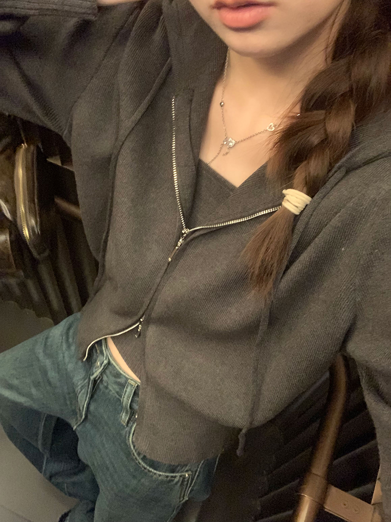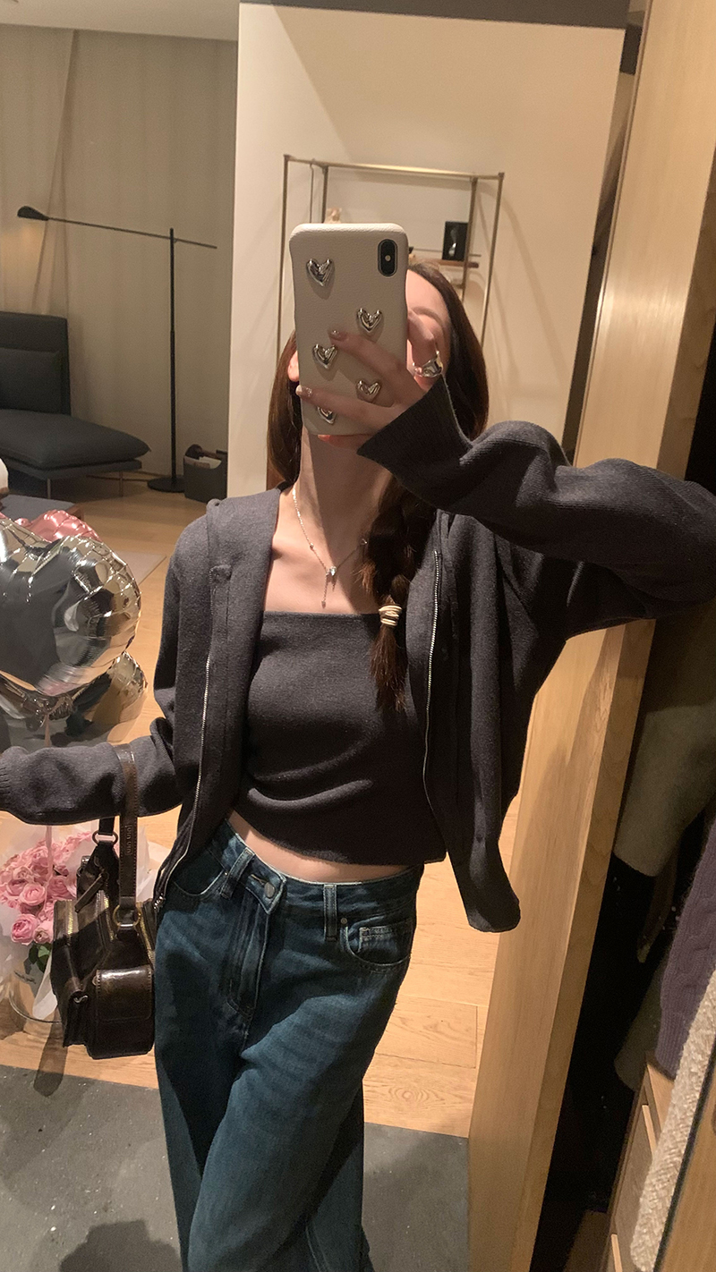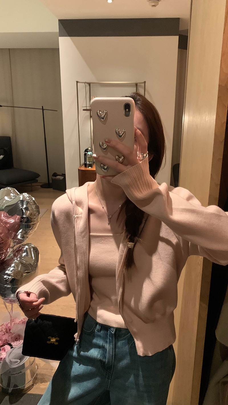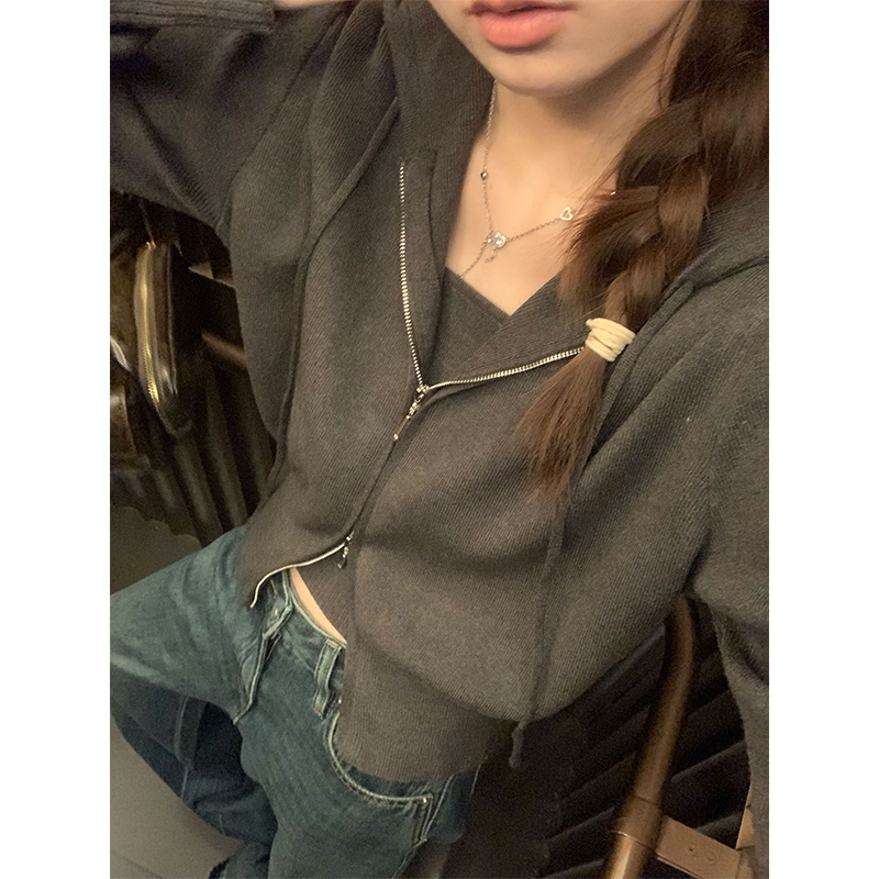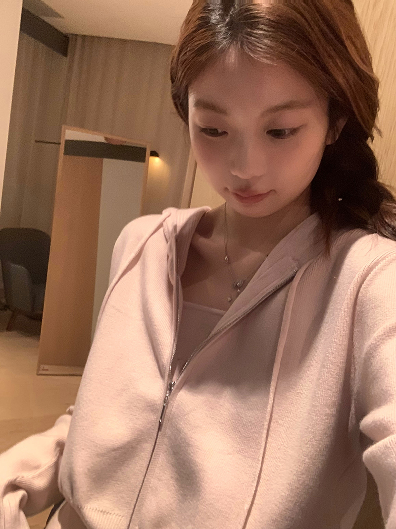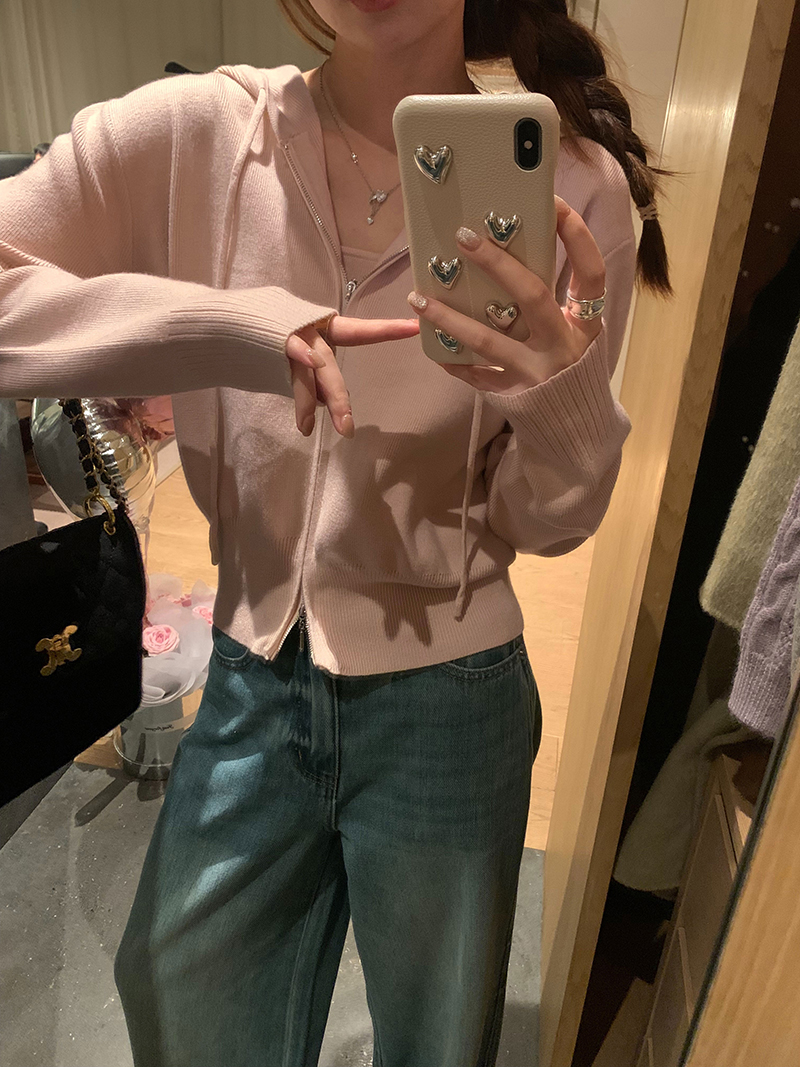 【現貨】im向miu系純帽拉鍊針織毛衣開衫+吊帶兩件套女短款外套