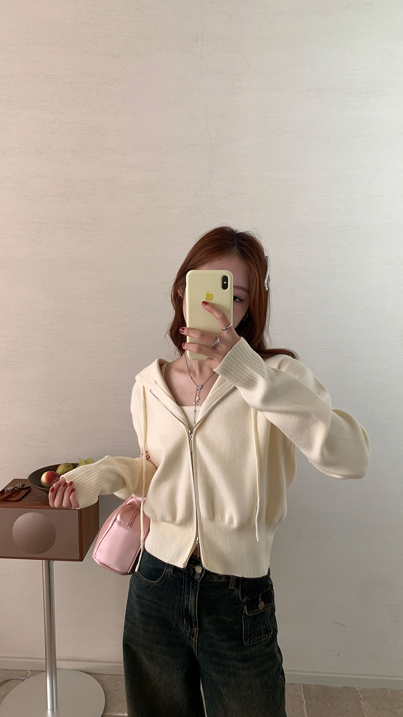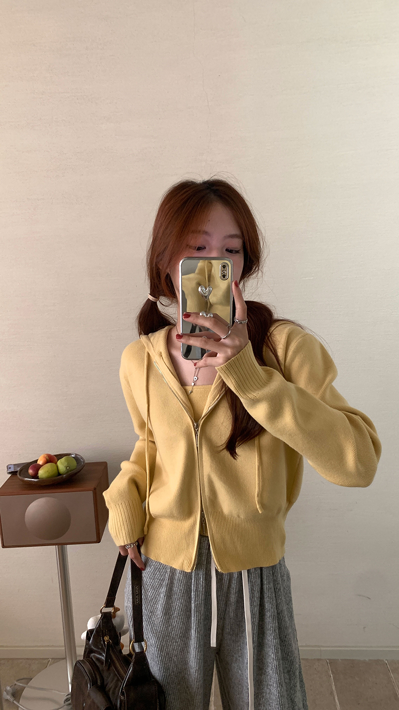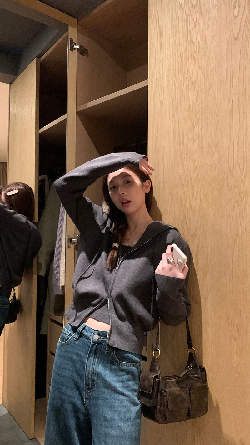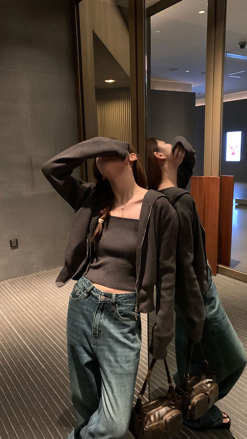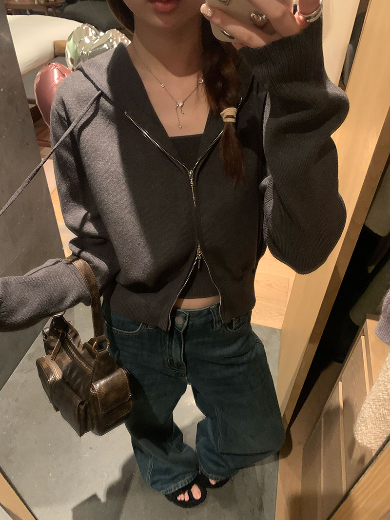【現貨】im向miu系純帽拉鍊針織毛衣開衫+吊帶兩件套女短款外套