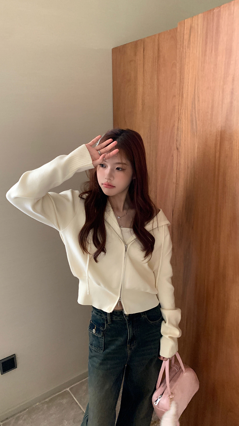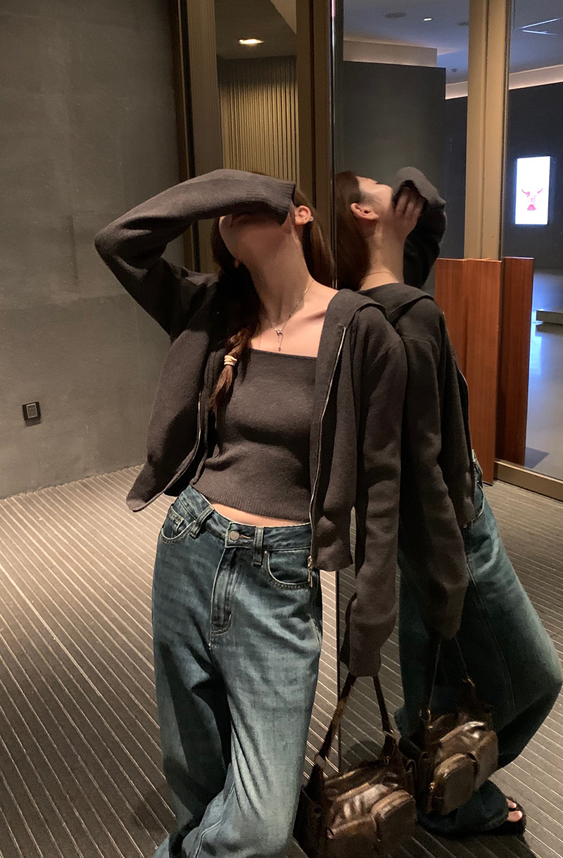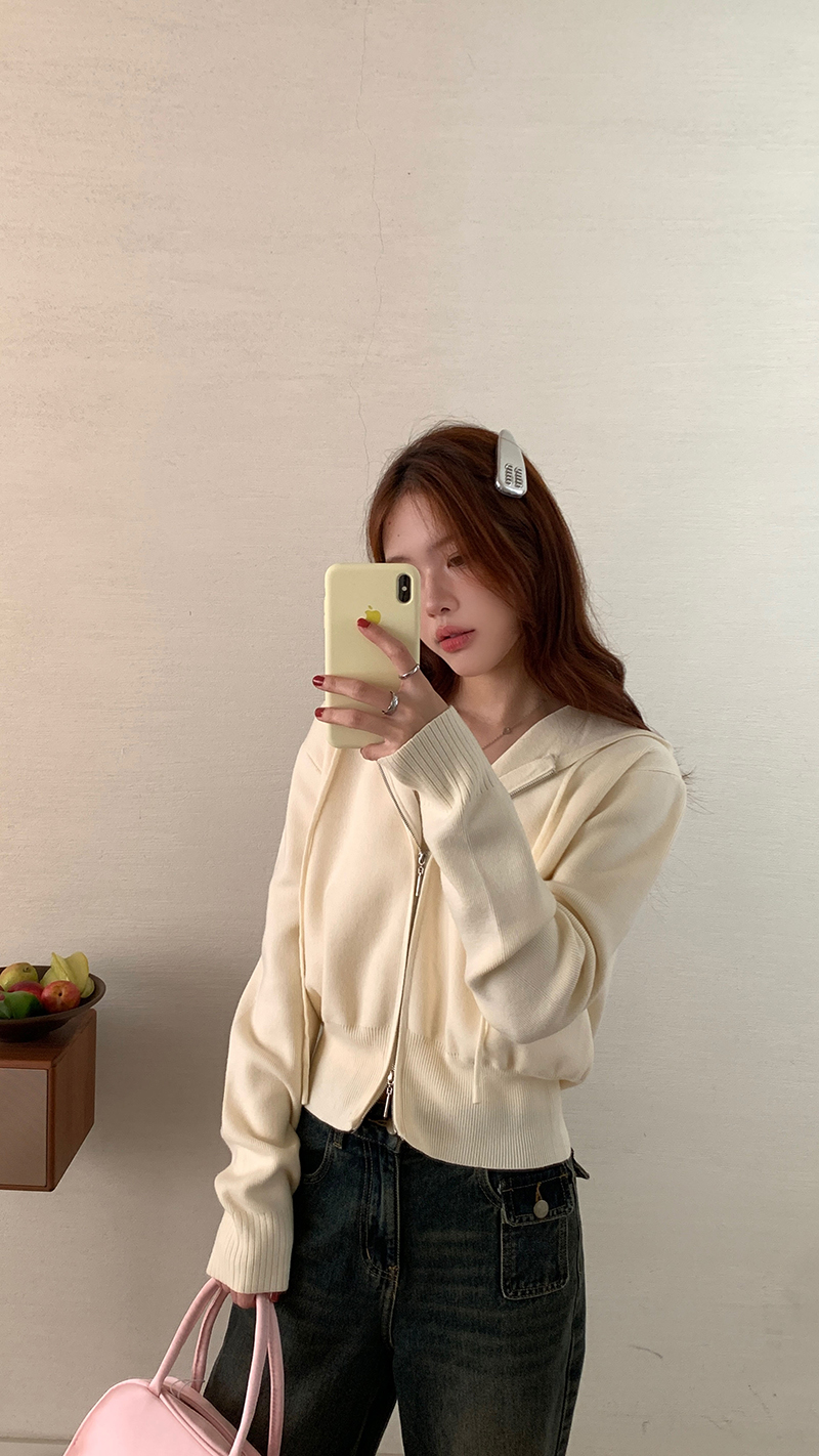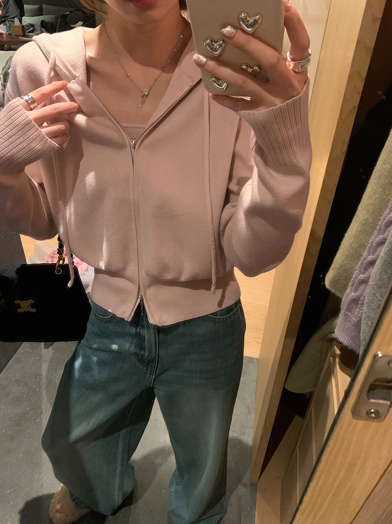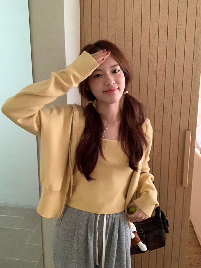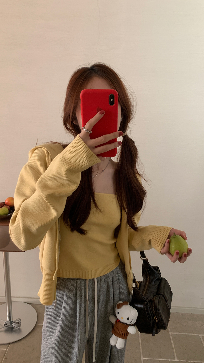 【現貨】im向miu系純帽拉鍊針織毛衣開衫+吊帶兩件套女短款外套