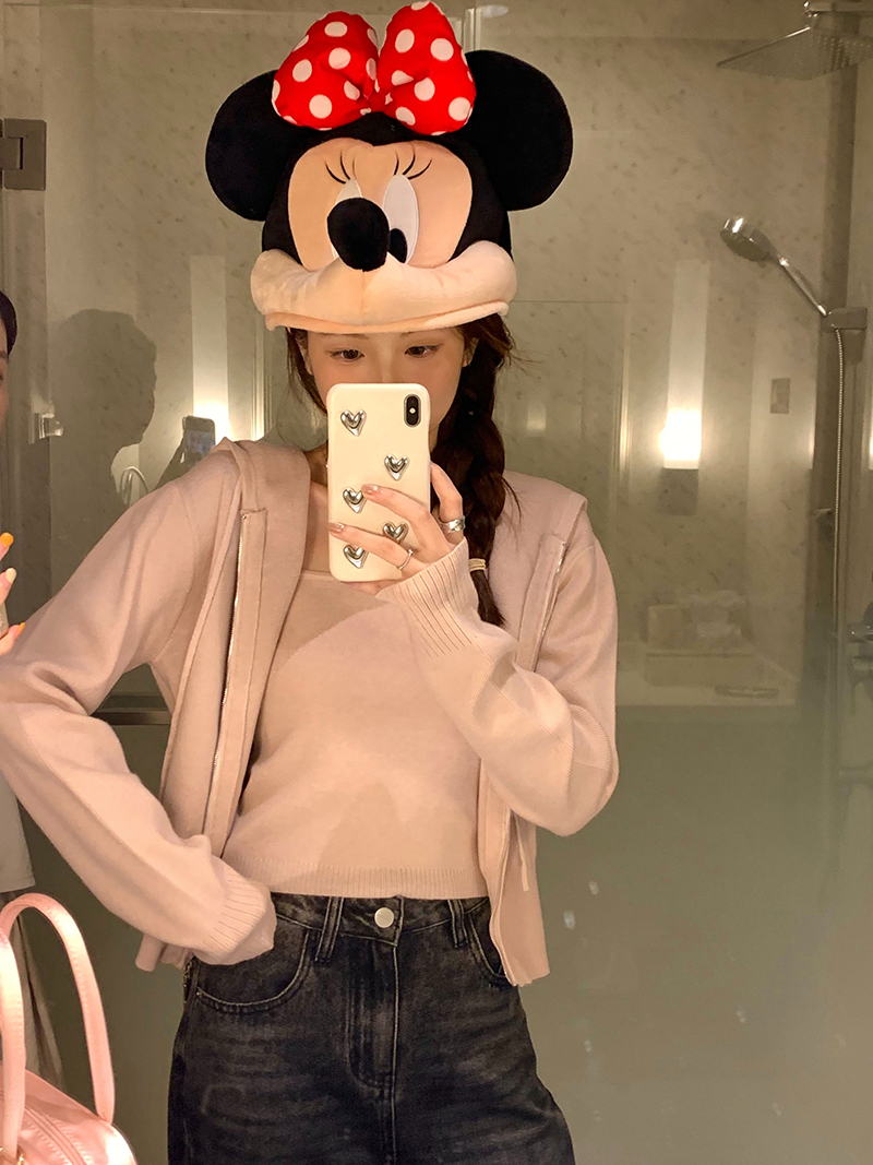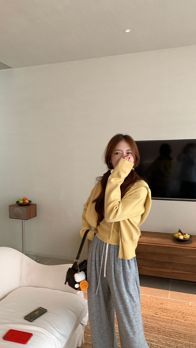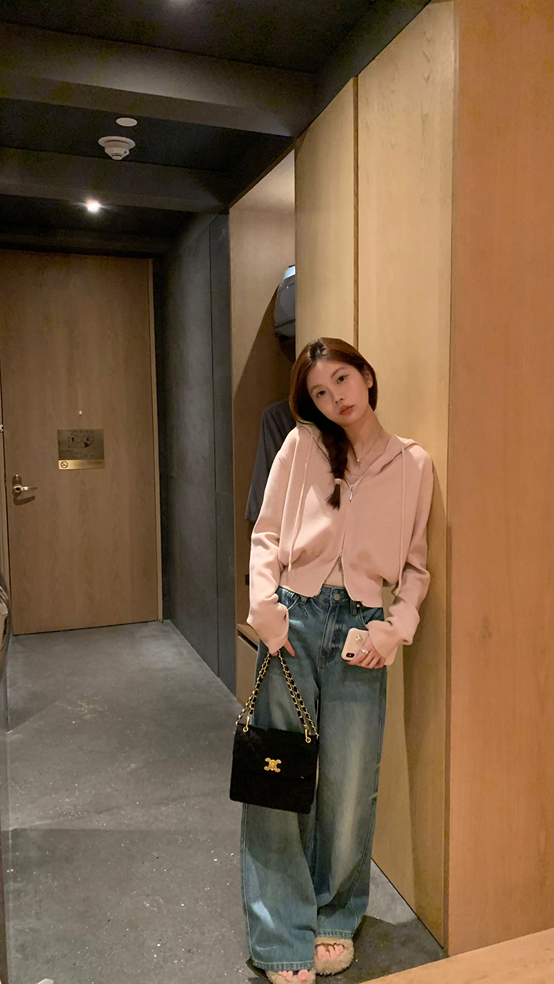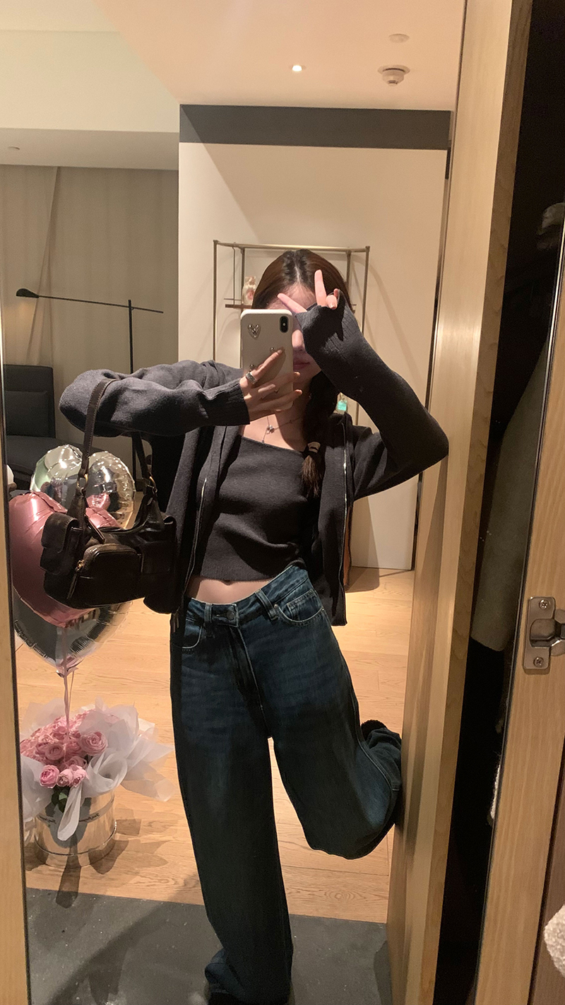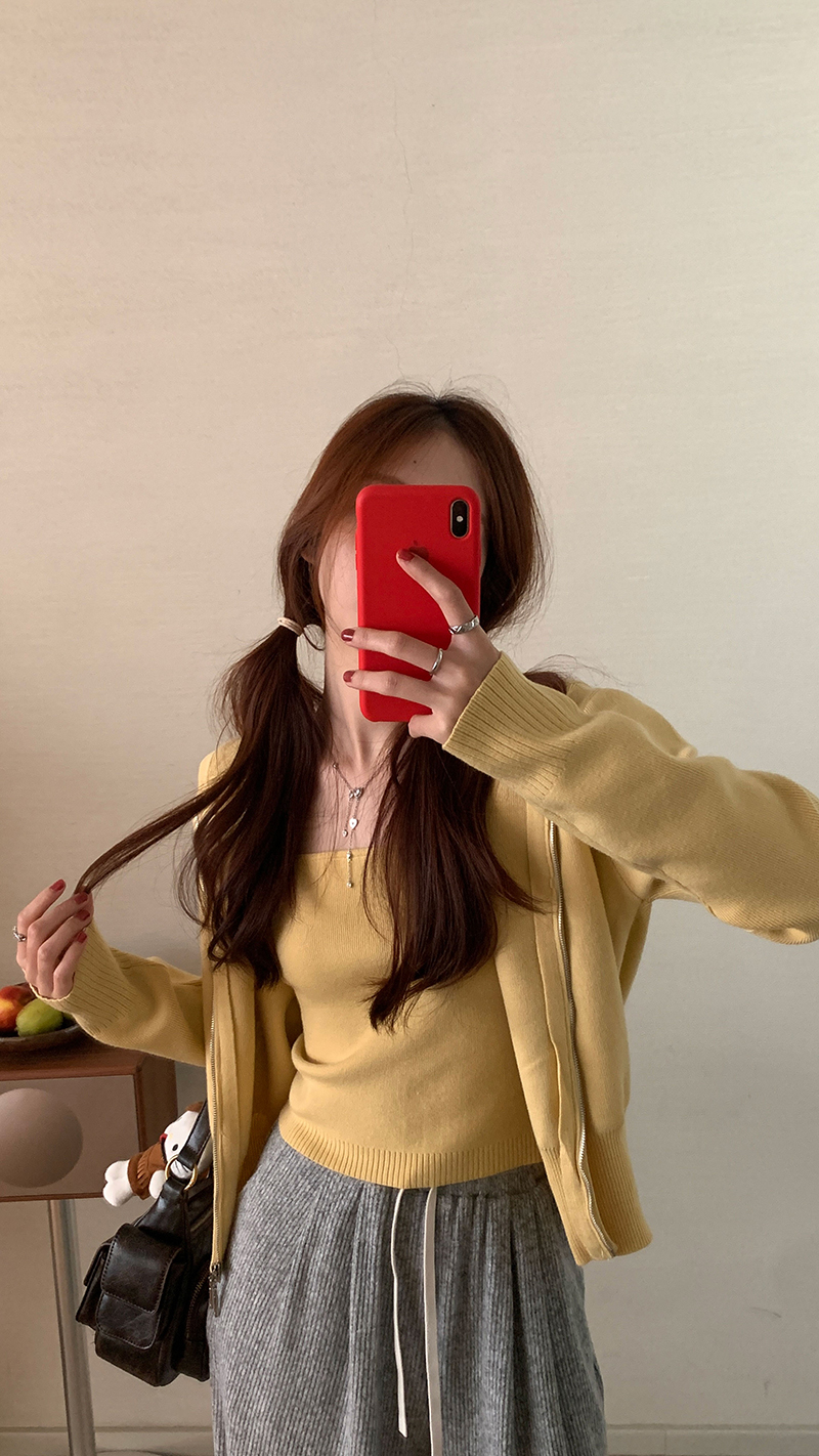 【現貨】im向miu系純帽拉鍊針織毛衣開衫+吊帶兩件套女短款外套