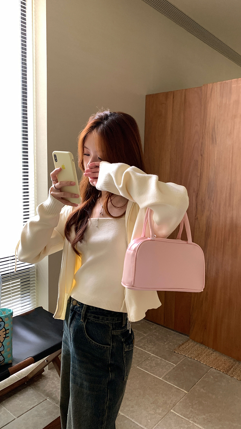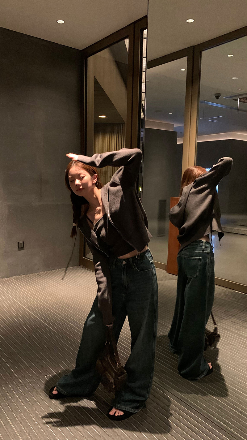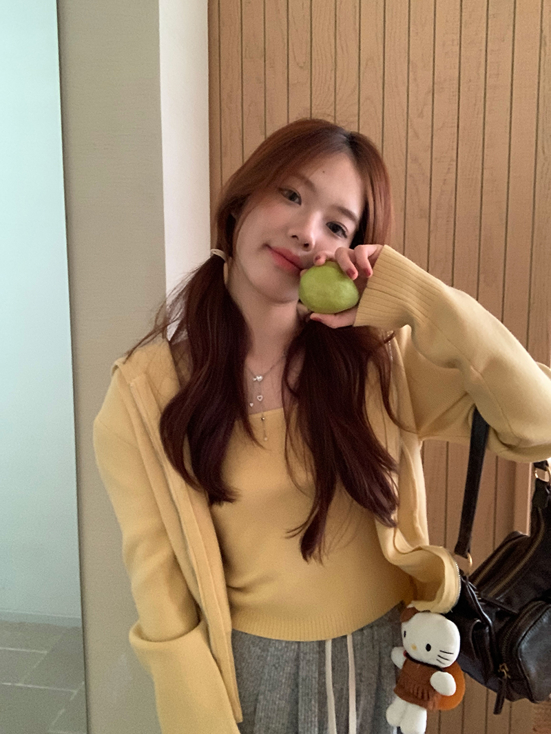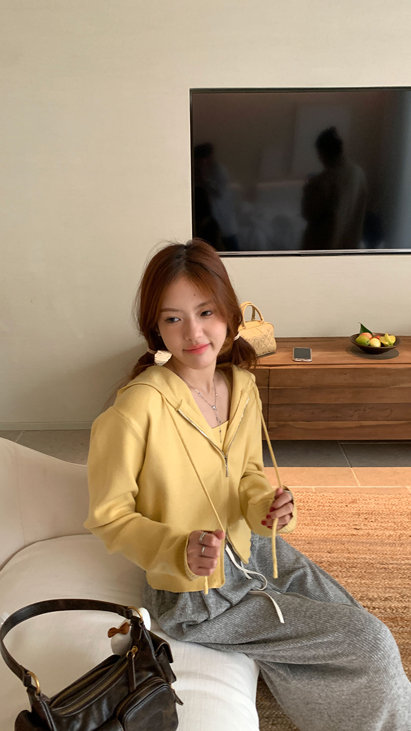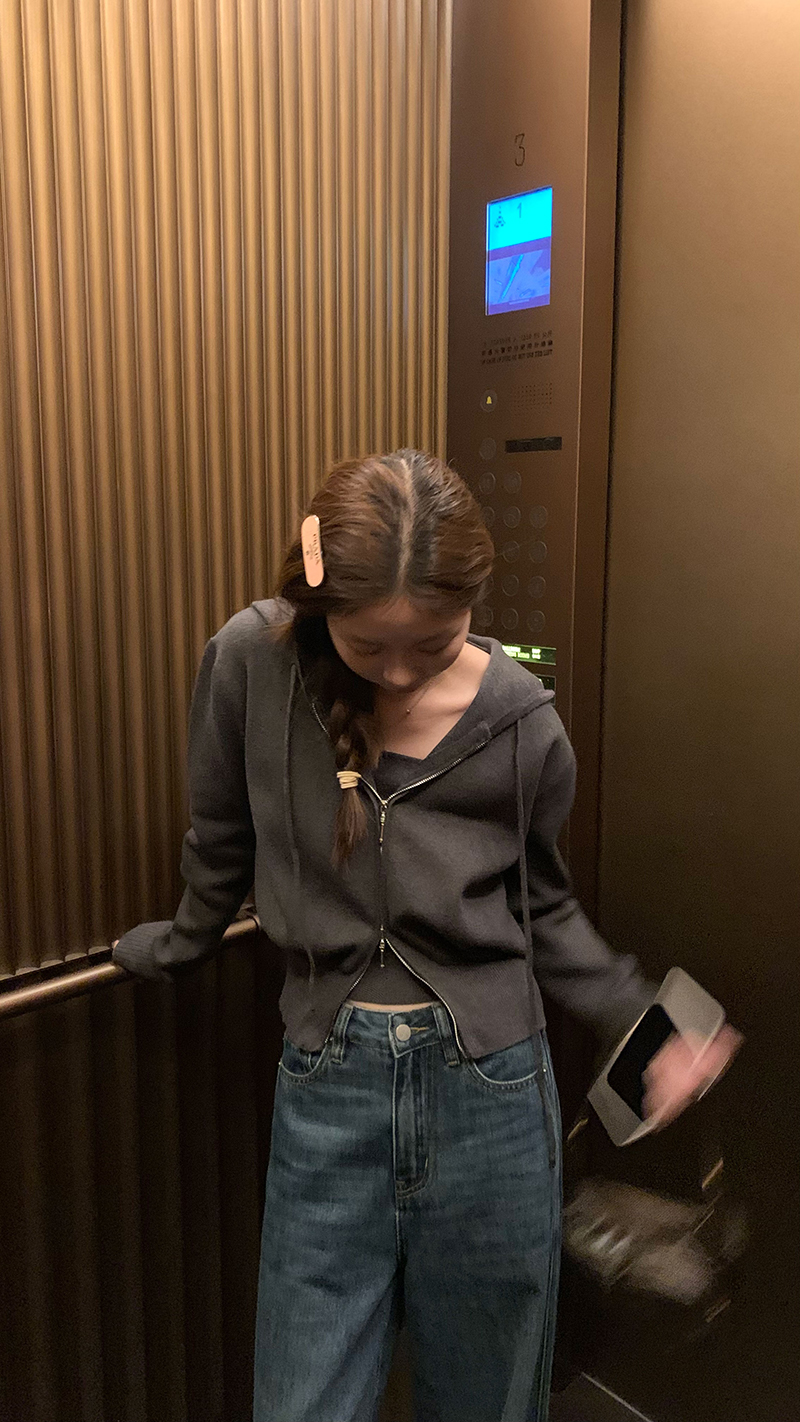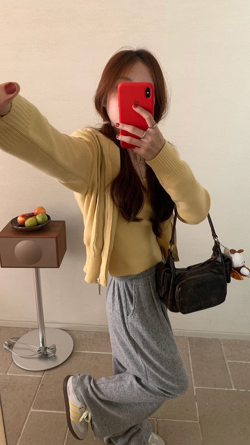 【現貨】im向miu系純帽拉鍊針織毛衣開衫+吊帶兩件套女短款外套