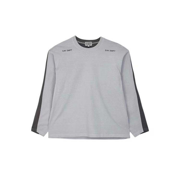 LIFE CAVEMPT圓領長袖內搭衣T恤 日系寬鬆水洗復古拼接薄款CE衛衣